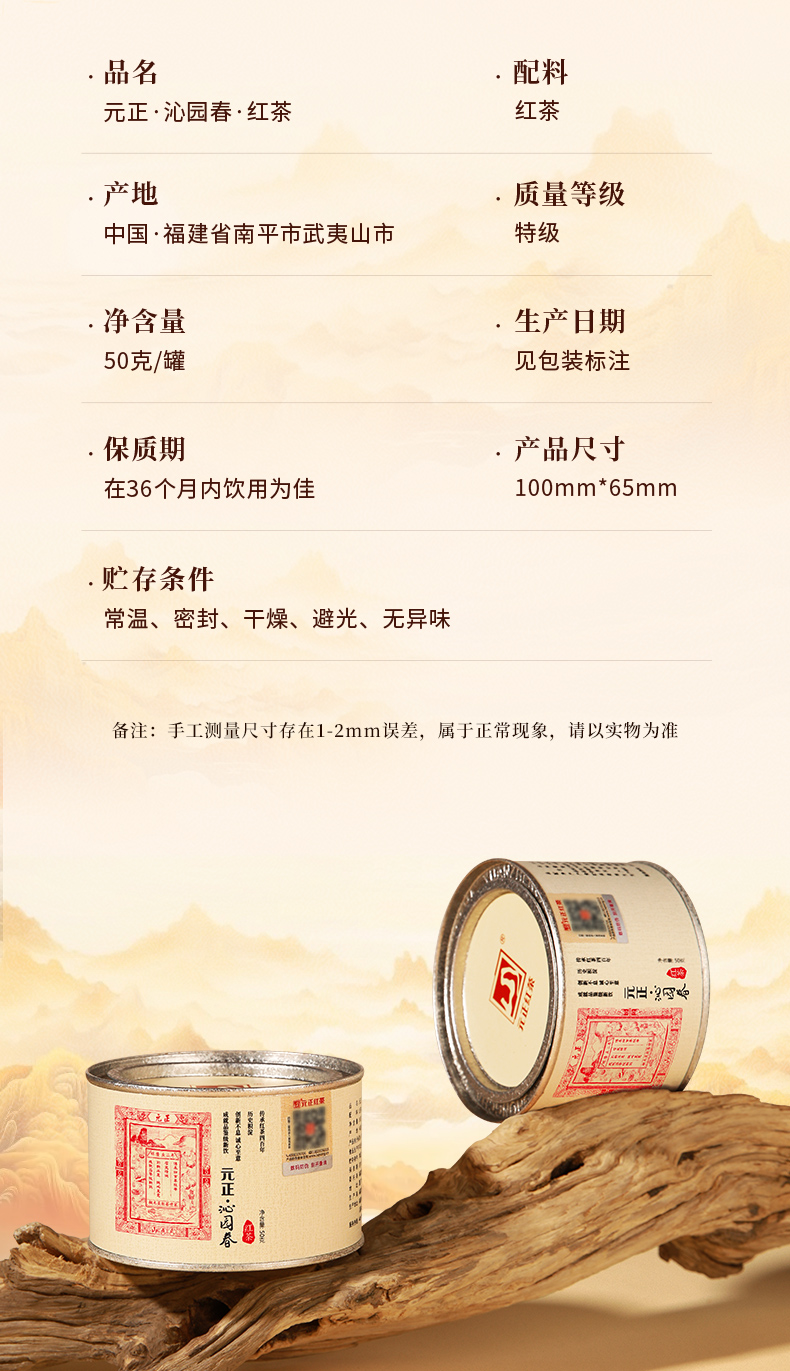 元正 茶票沁园春 特级正宗武夷红茶叶罐装50g/150g/300g