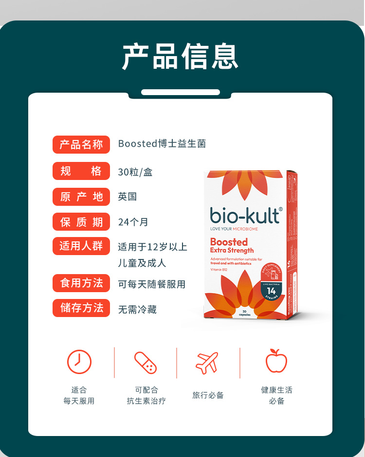 【博士菌】英国bio-kult百康百德肠道强护益生菌IBS肠应激30粒多规格