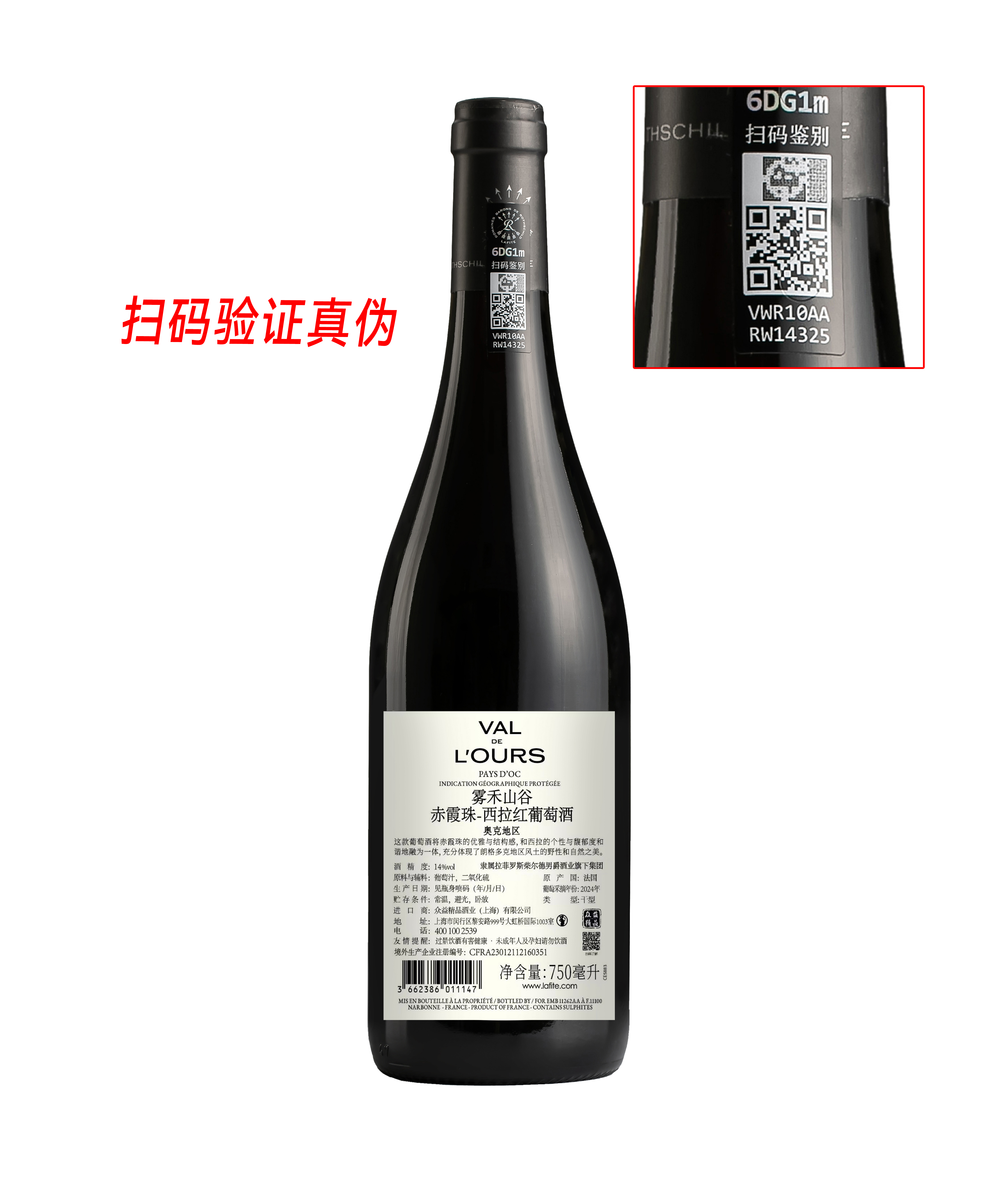 拉菲罗斯柴尔德 雾禾山谷 赤霞珠西拉 红葡萄酒750ml*2瓶