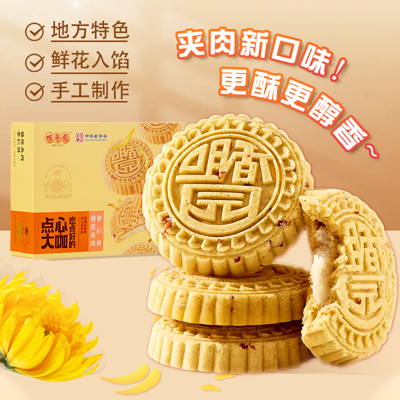 【咀香园老字号糕点】菊花夹肉杏仁饼100g+休闲装曲奇饼105g+芒果雪花酥105g