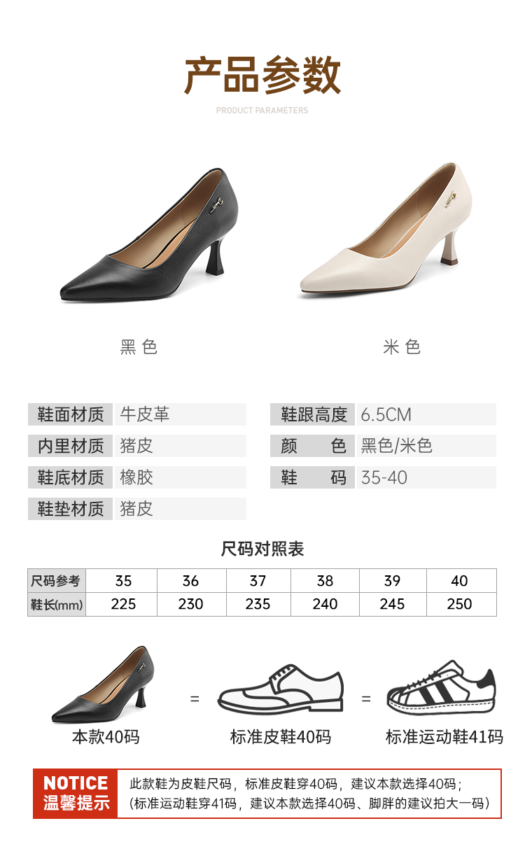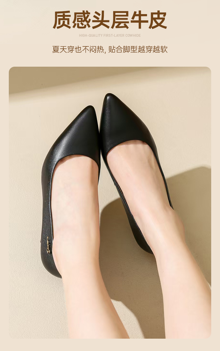 【6.5cm细跟工装鞋】职业通勤牛皮女鞋商务休闲女士单鞋