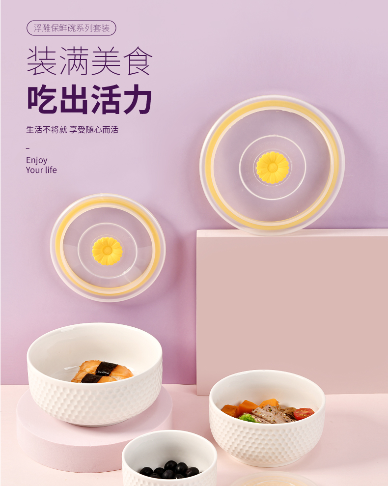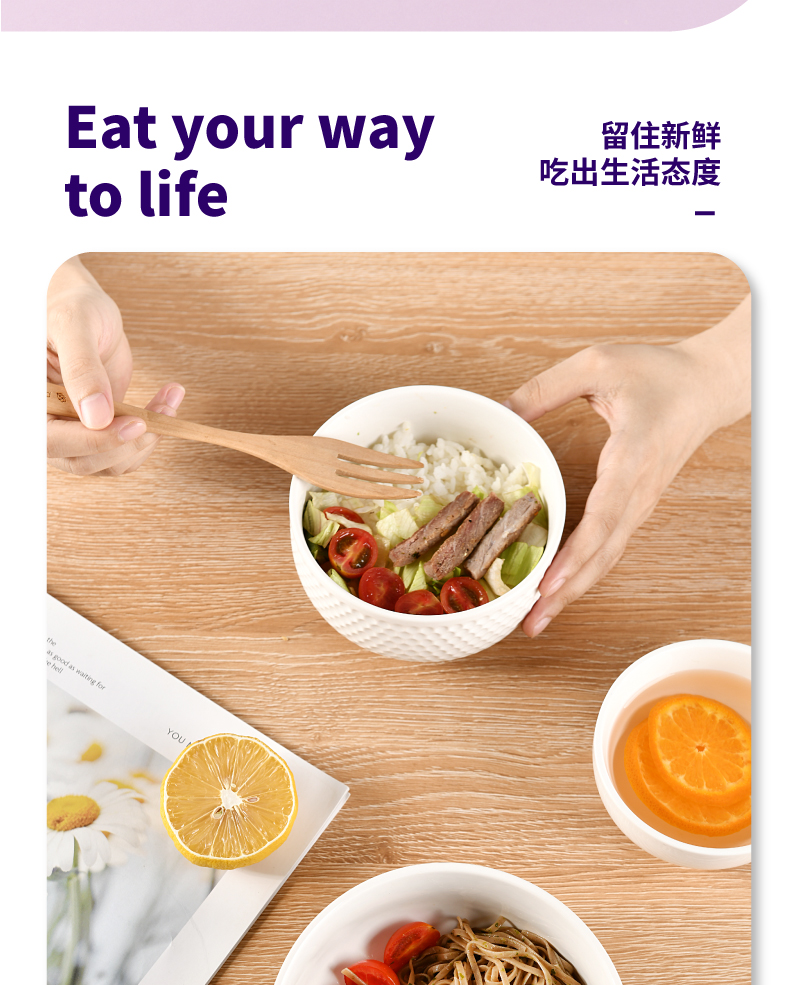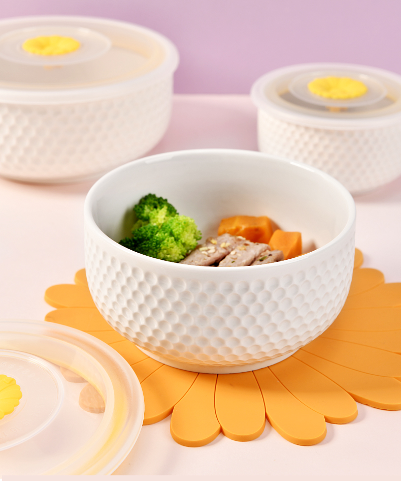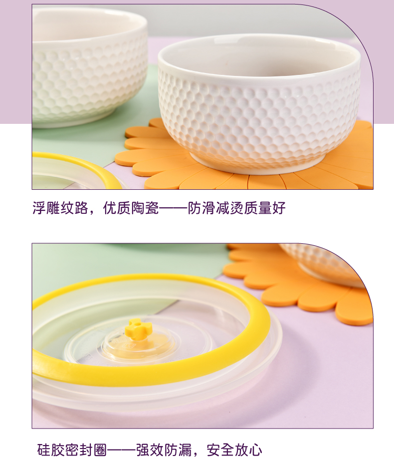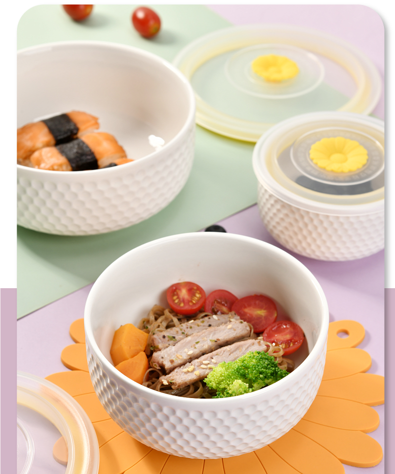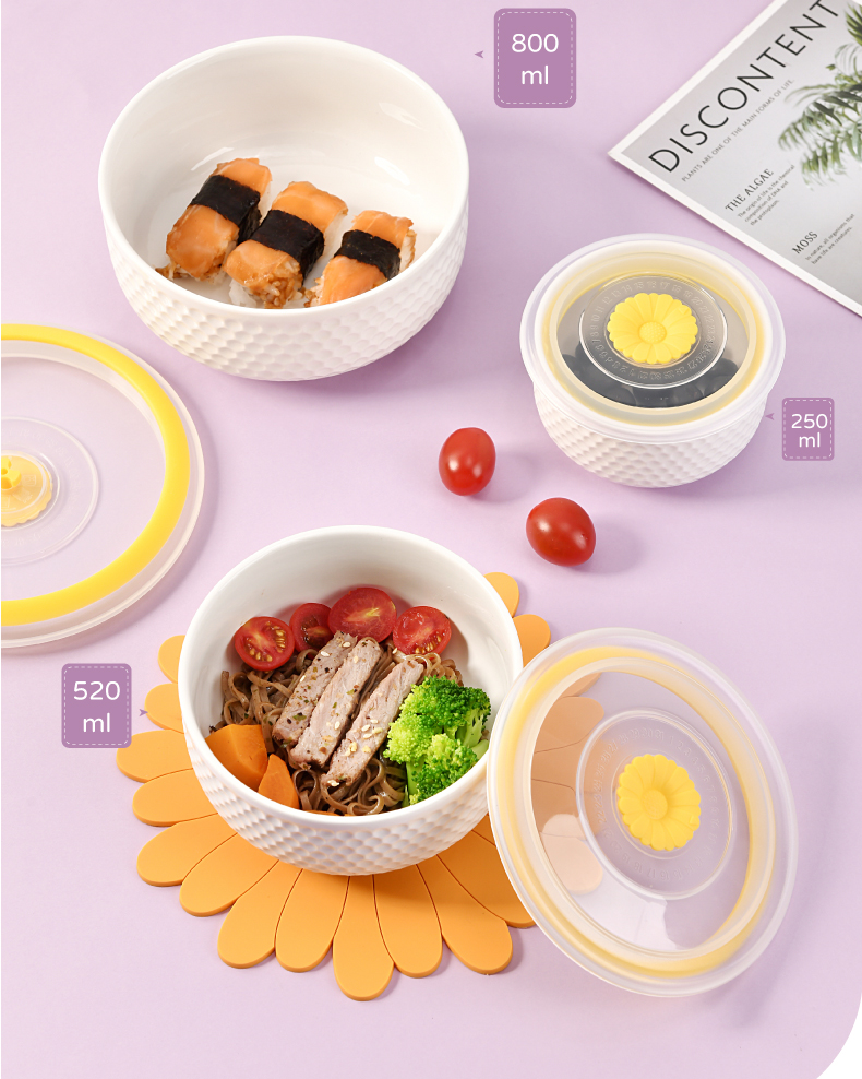 山重山保鲜碗耐热陶瓷饭盒微波炉加热带盖便当盒密封碗上班族学生带饭新中式餐盒三件套大容量 (圆通)保鲜碗800ml大号单个
