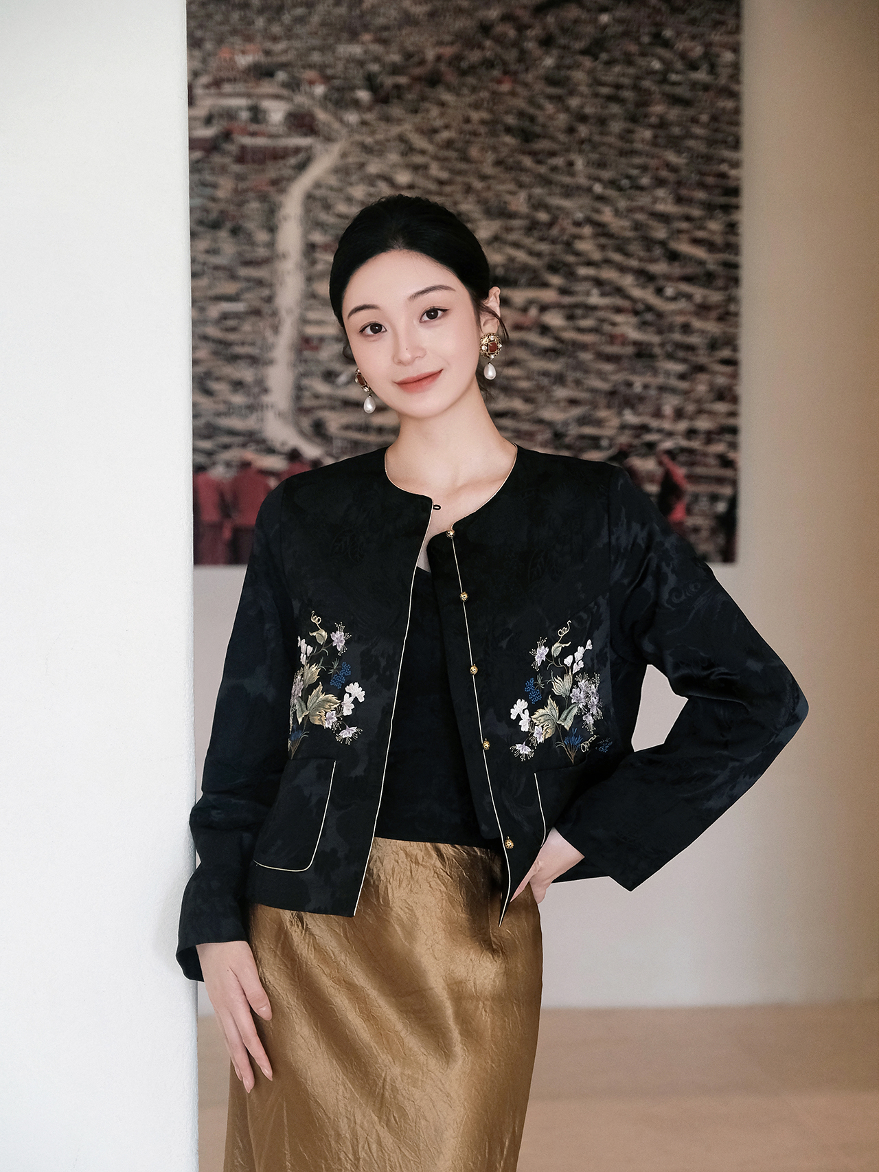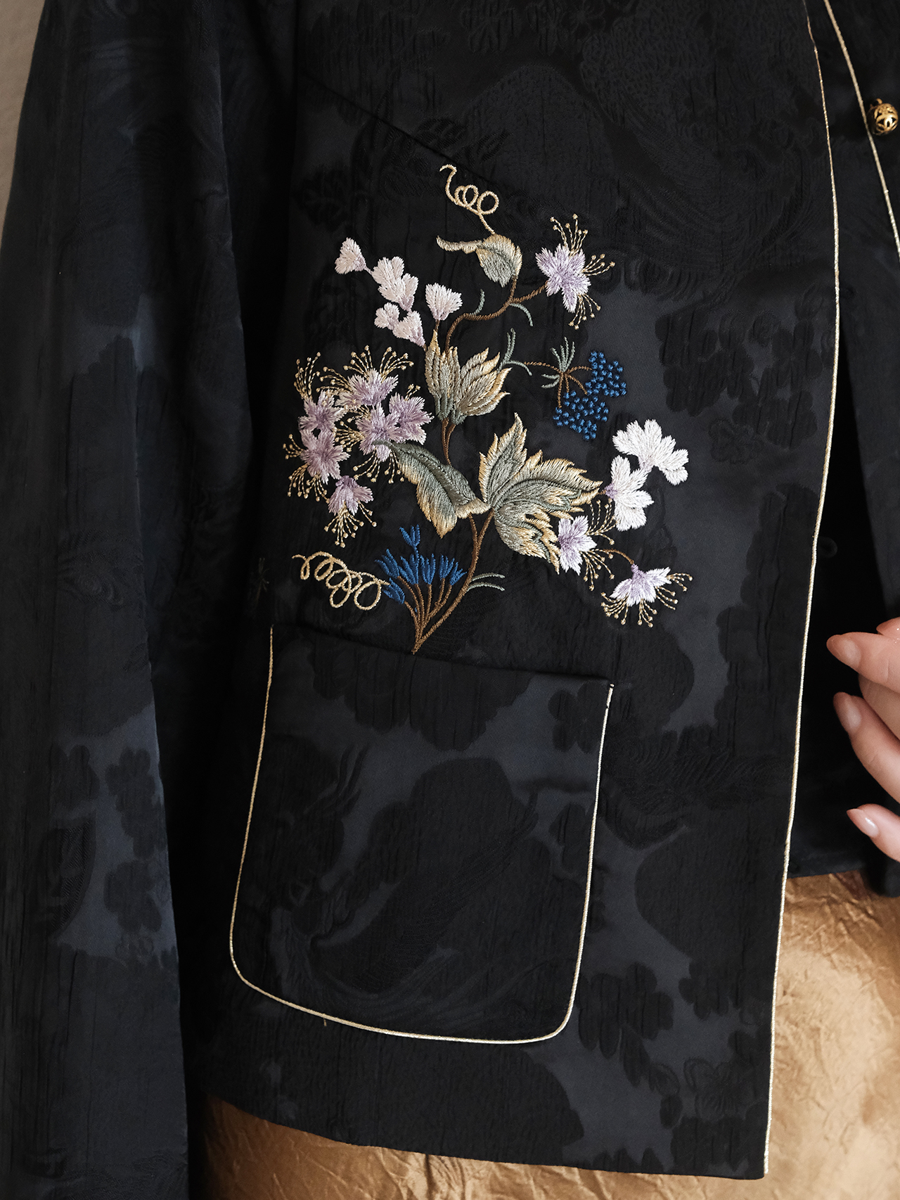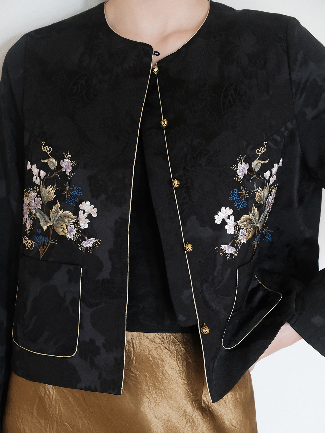 东方境X郭培| 新中式轻奢重工花卉刺绣对襟外套-黑色