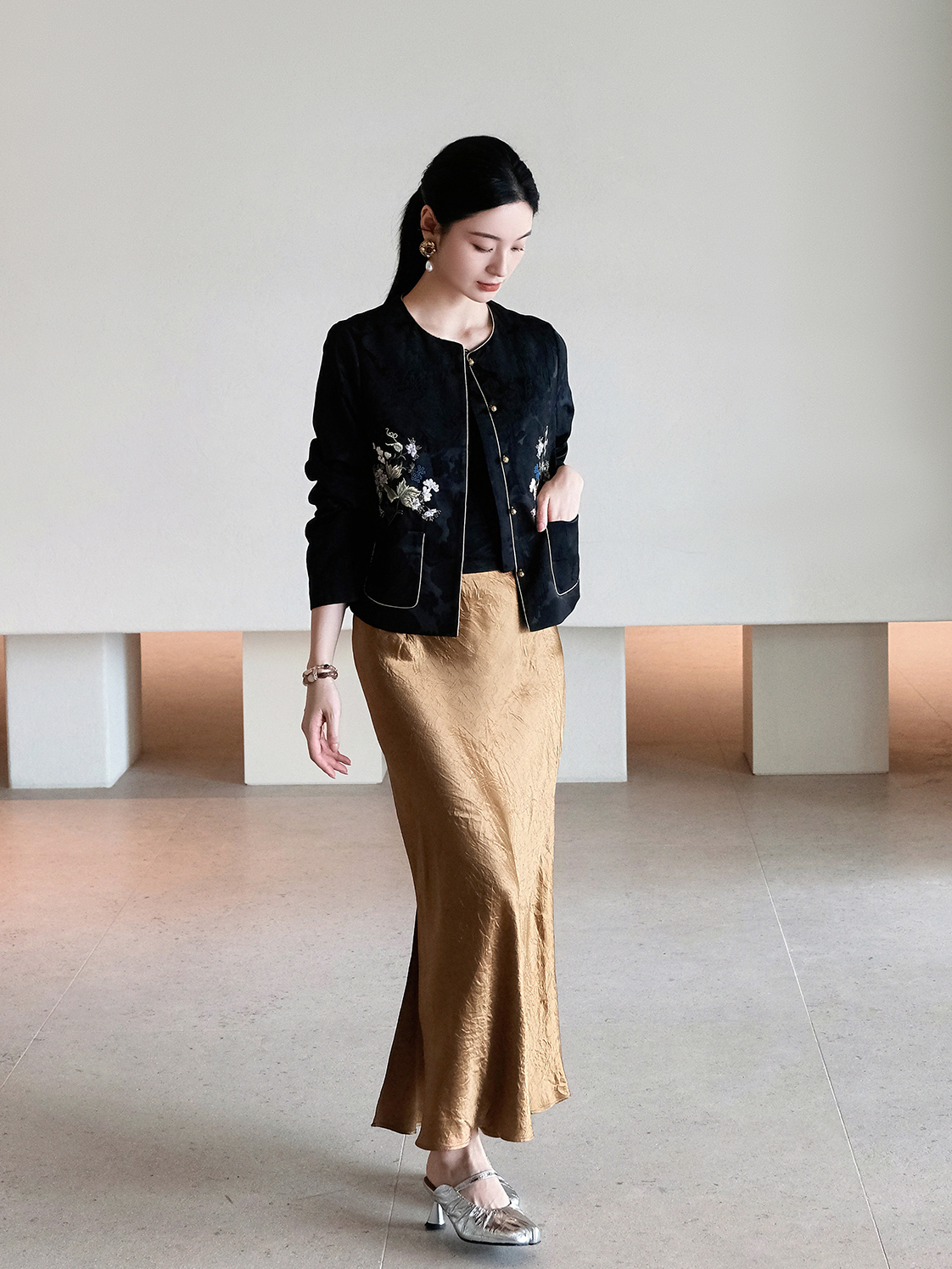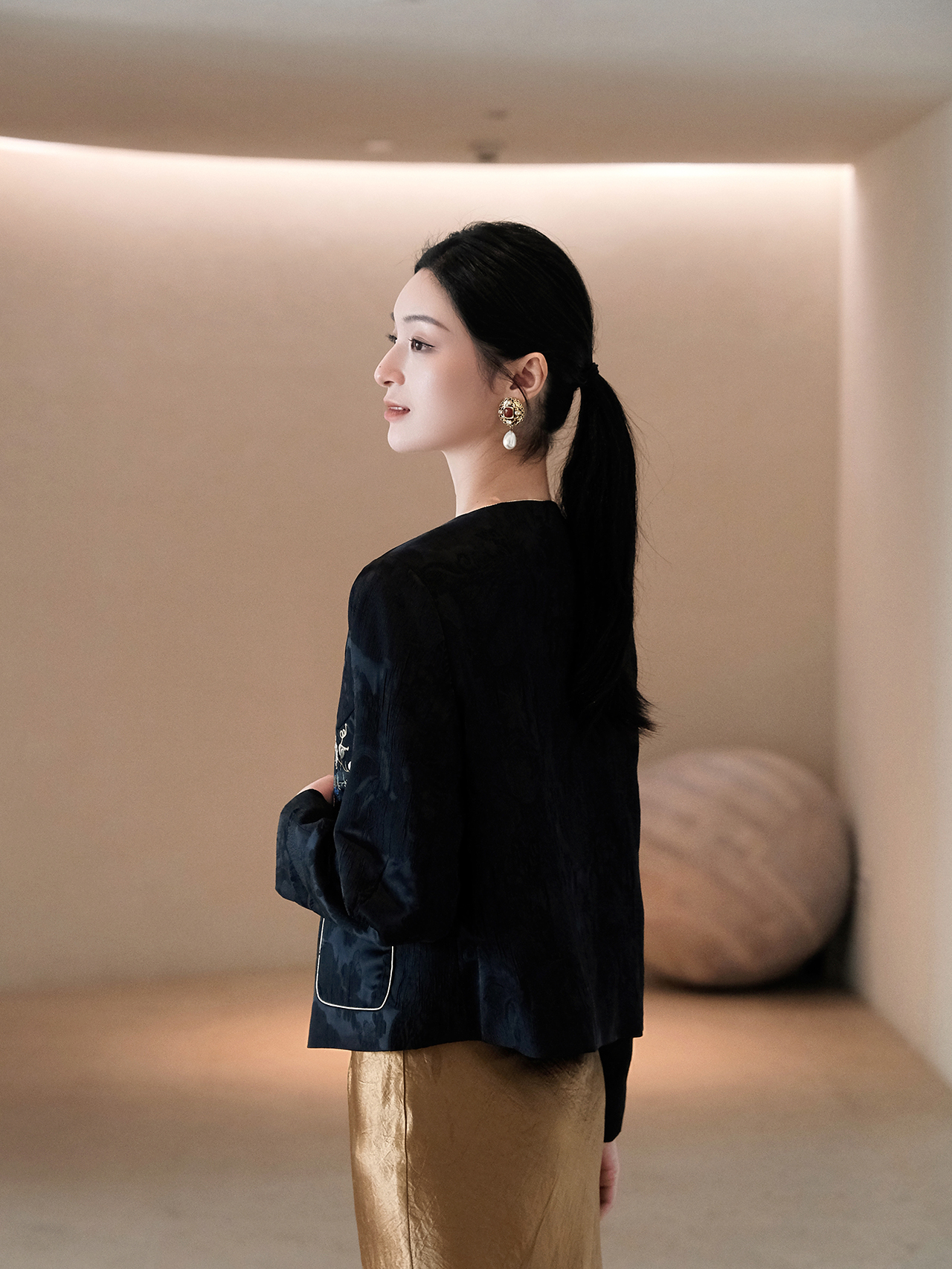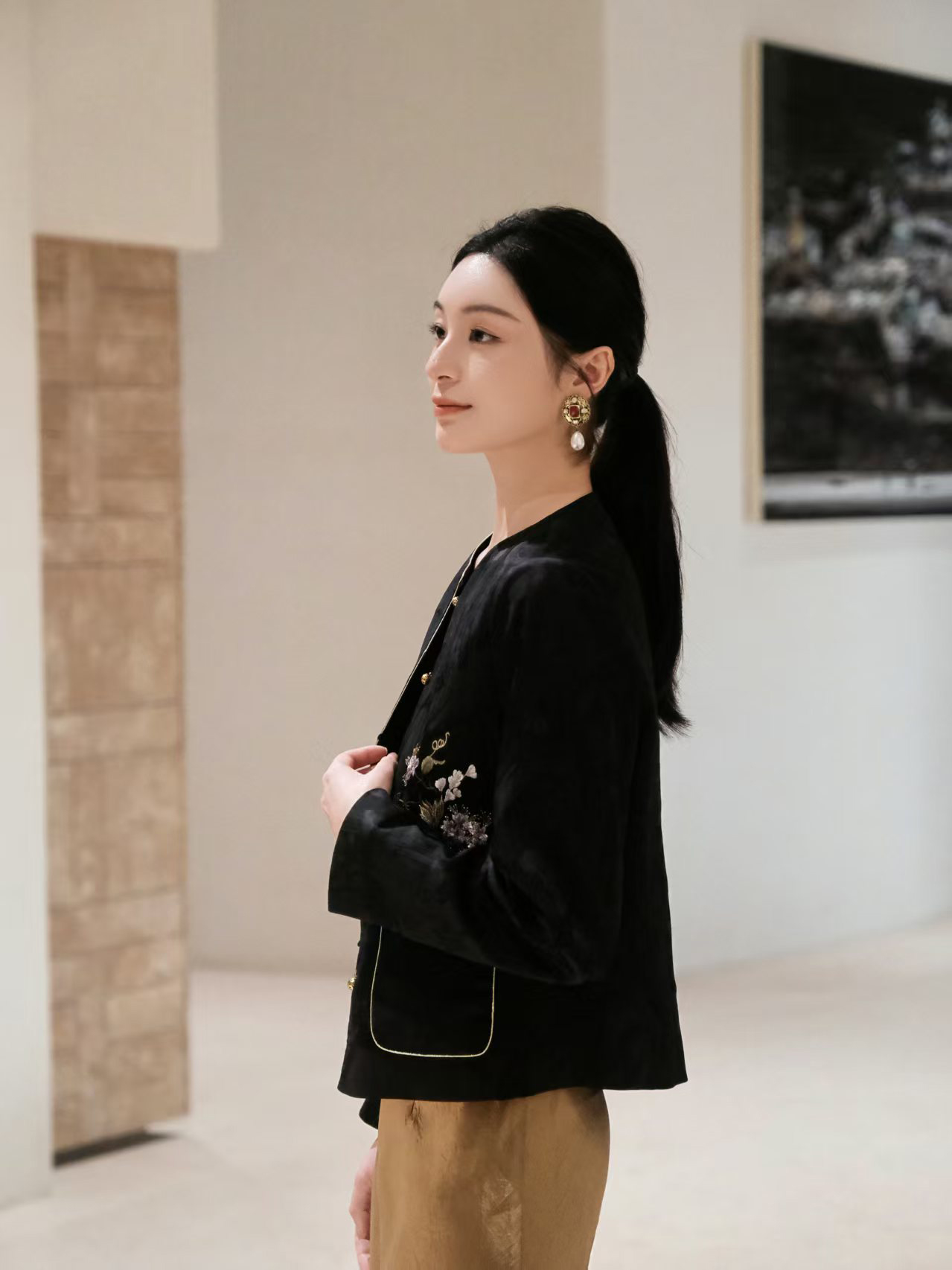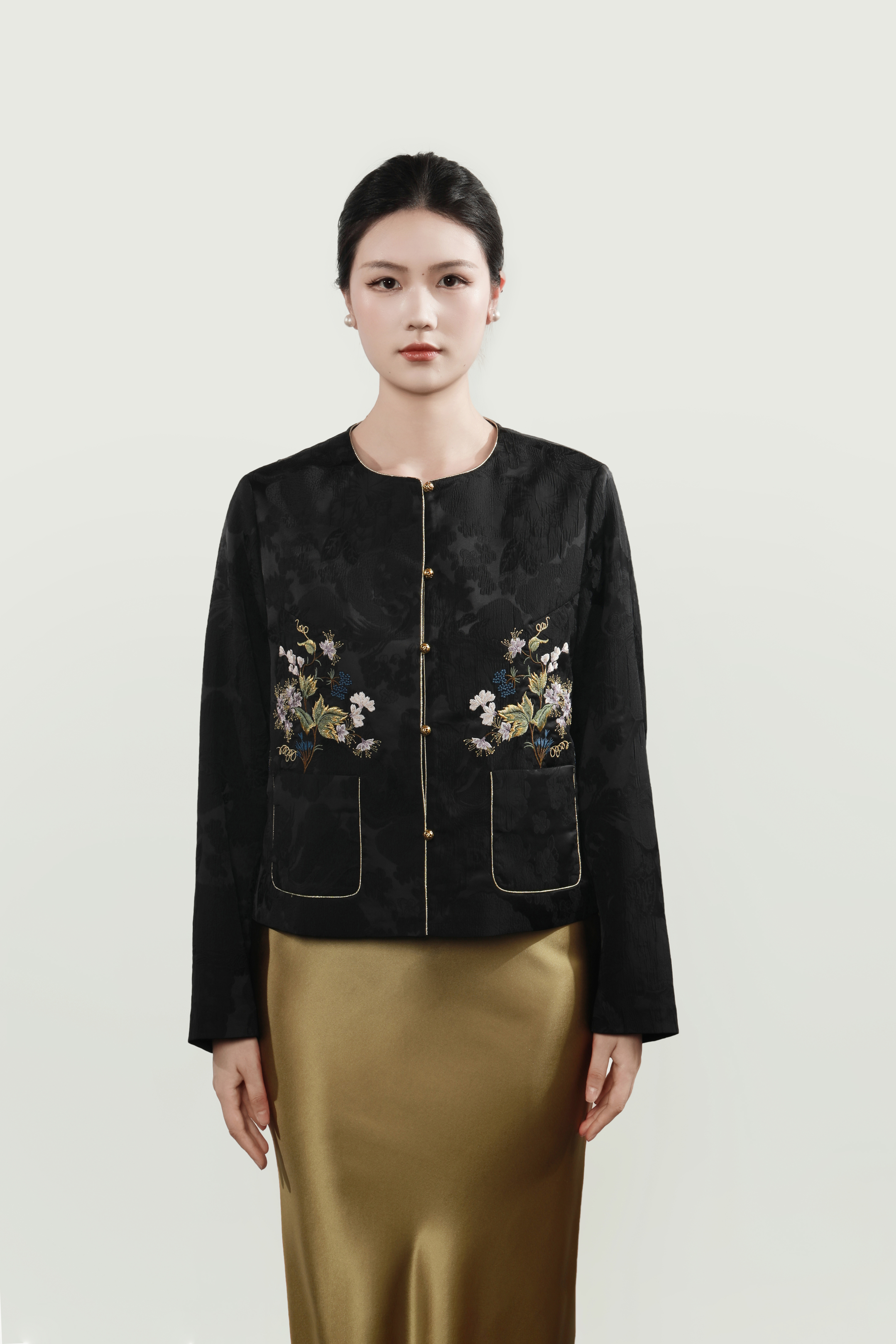 东方境X郭培| 新中式轻奢重工花卉刺绣对襟外套-黑色