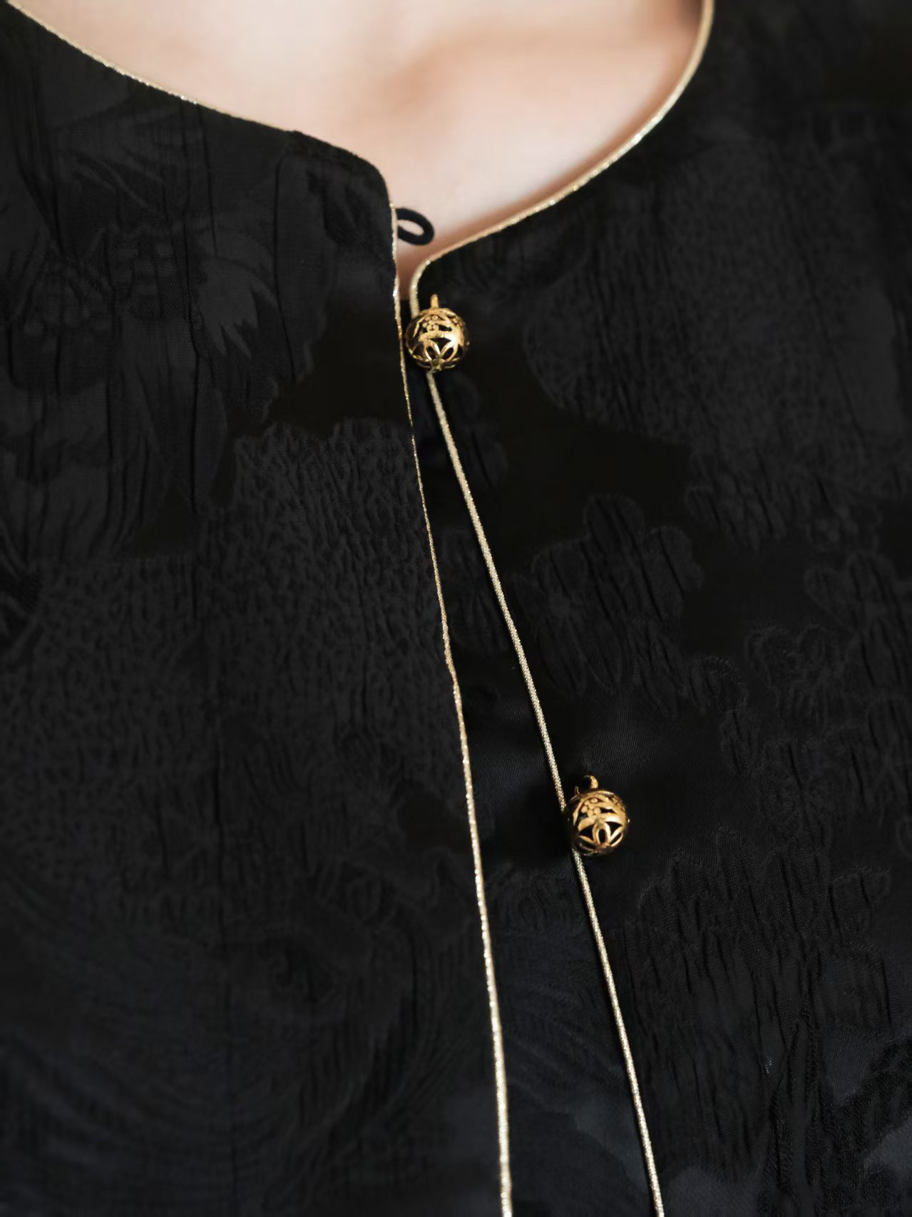 盛唐牡丹 |真丝提花梅兰竹菊偏襟上衣