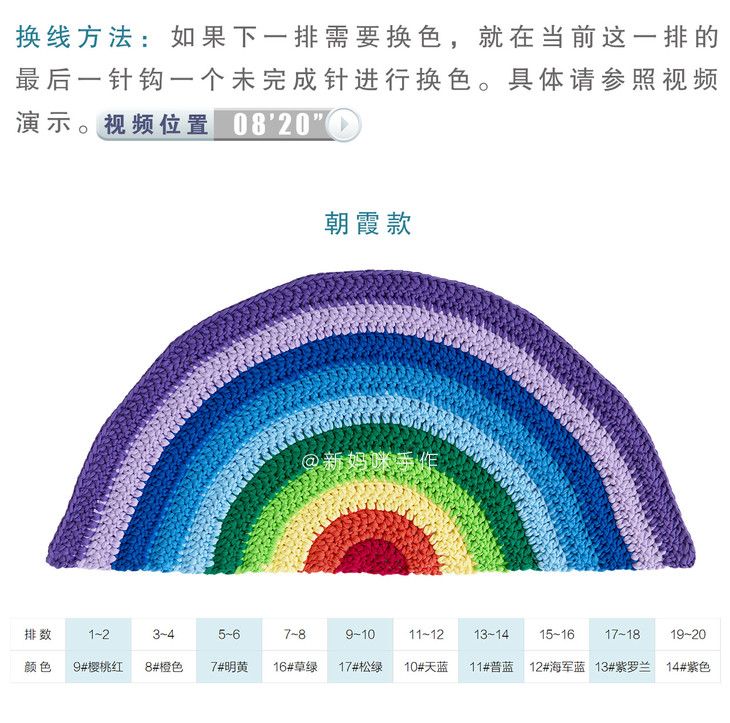 【B002】新妈咪手作_钩针半圆彩虹地垫教程