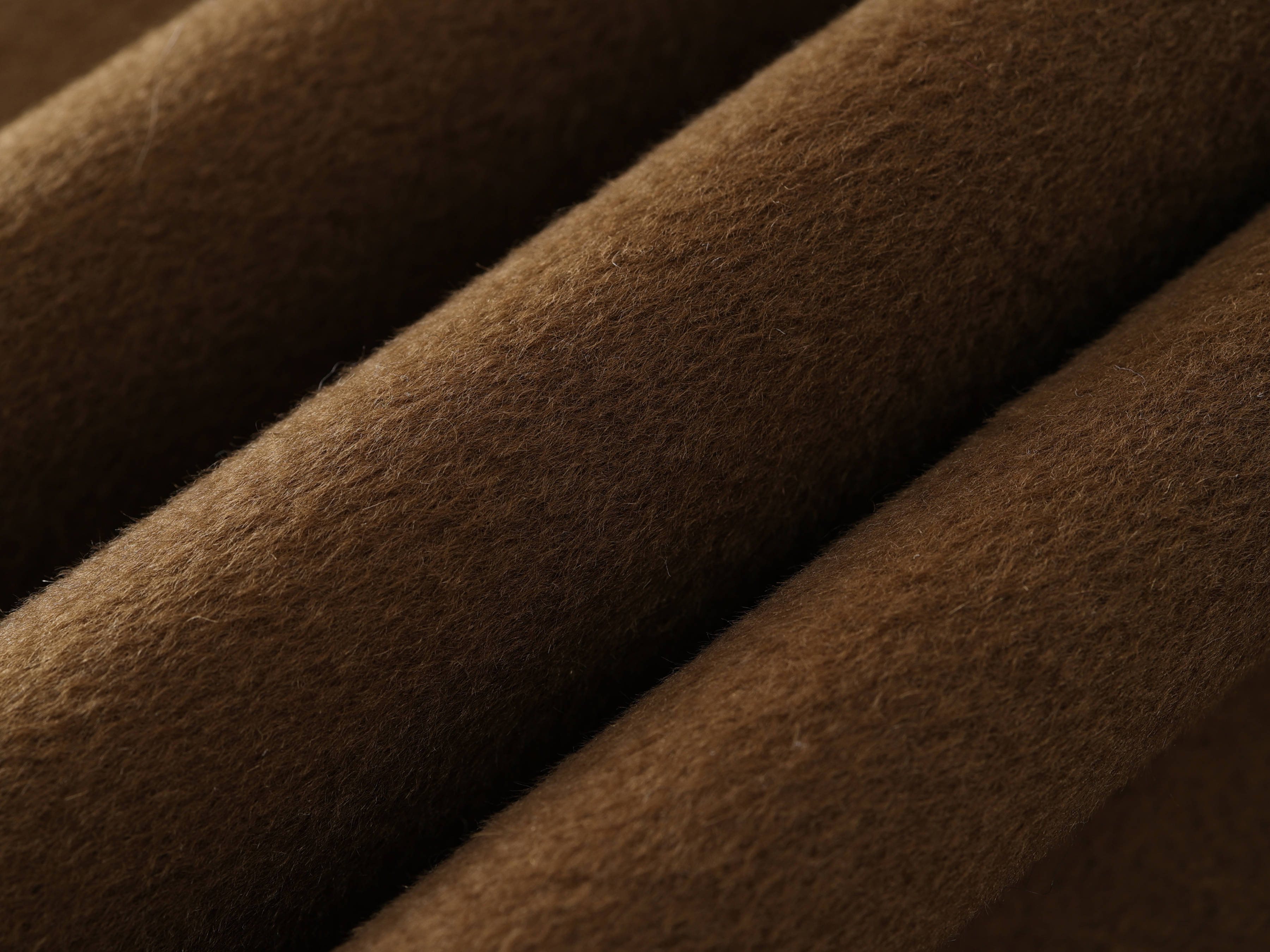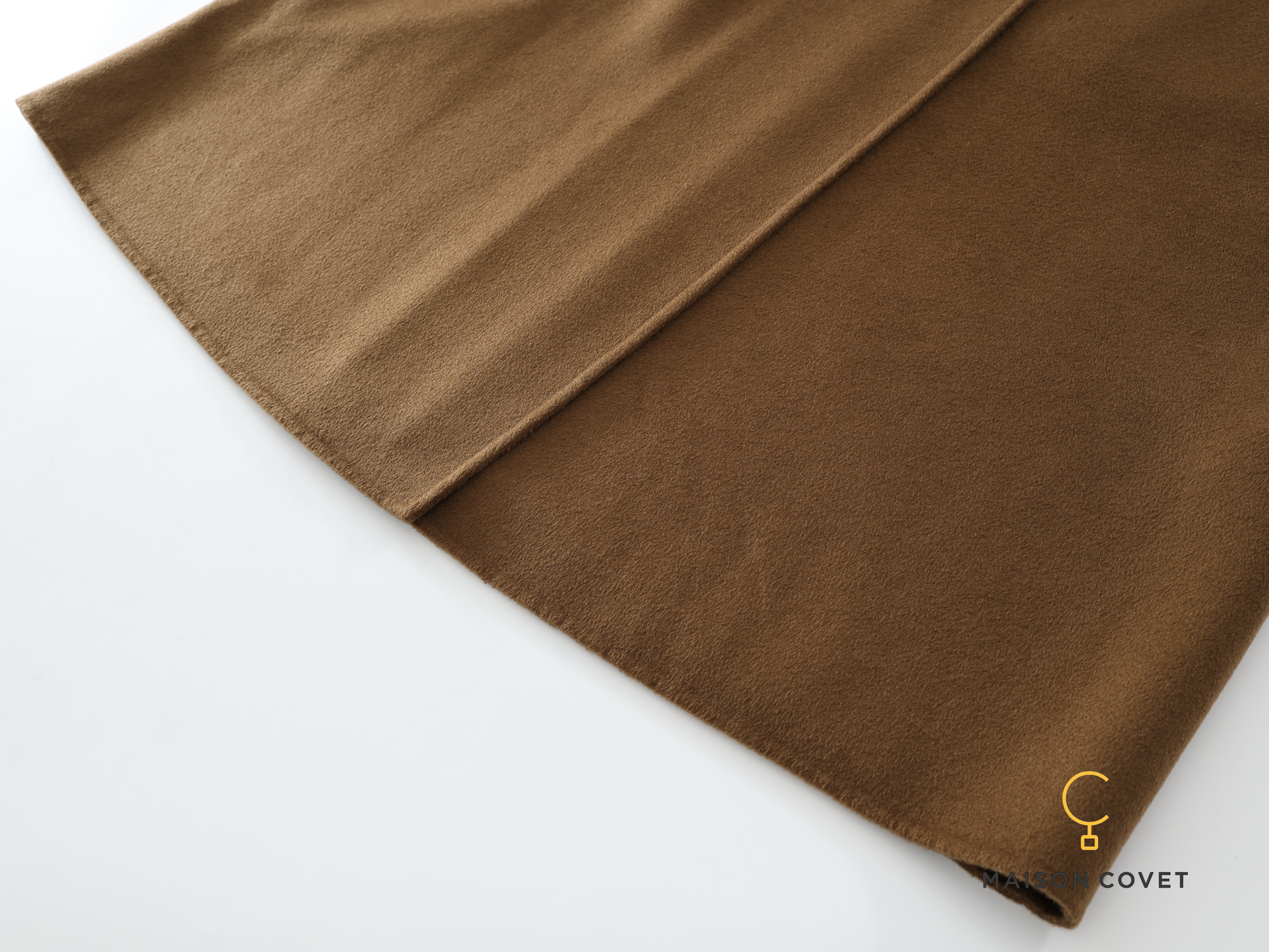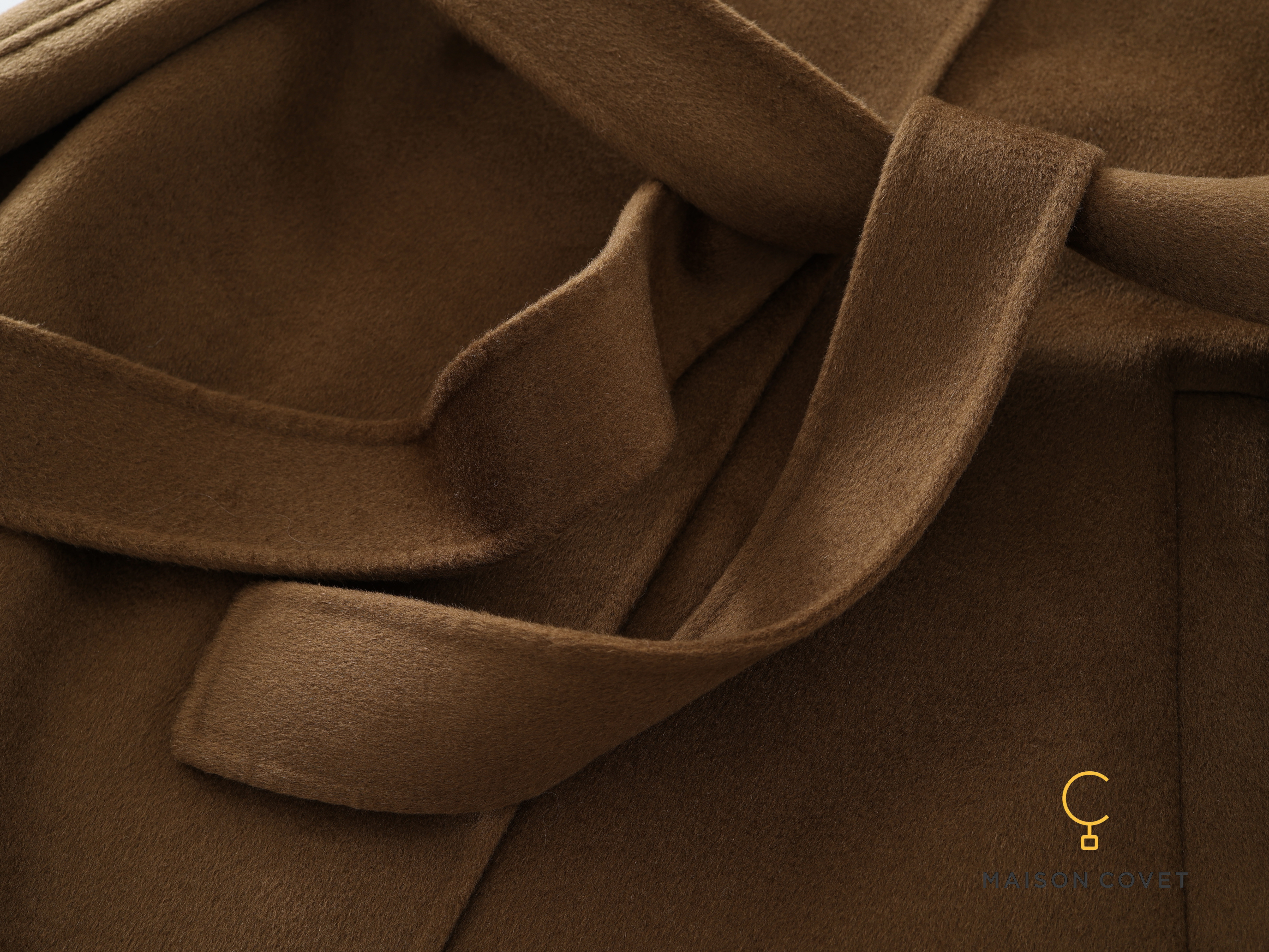 此款大衣采用手工缝双面纯山羊绒面料制成