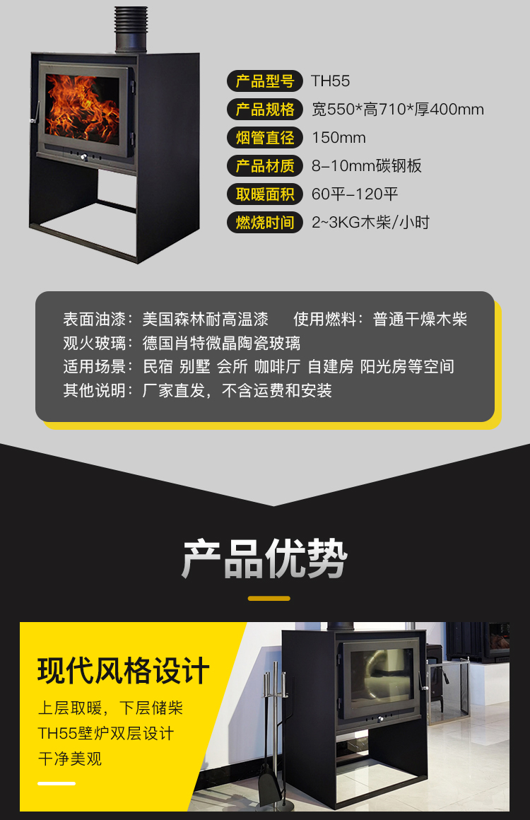 园长之家壁炉真火燃木取暖美式铸铁式农村别墅民宿烧柴小型火炉