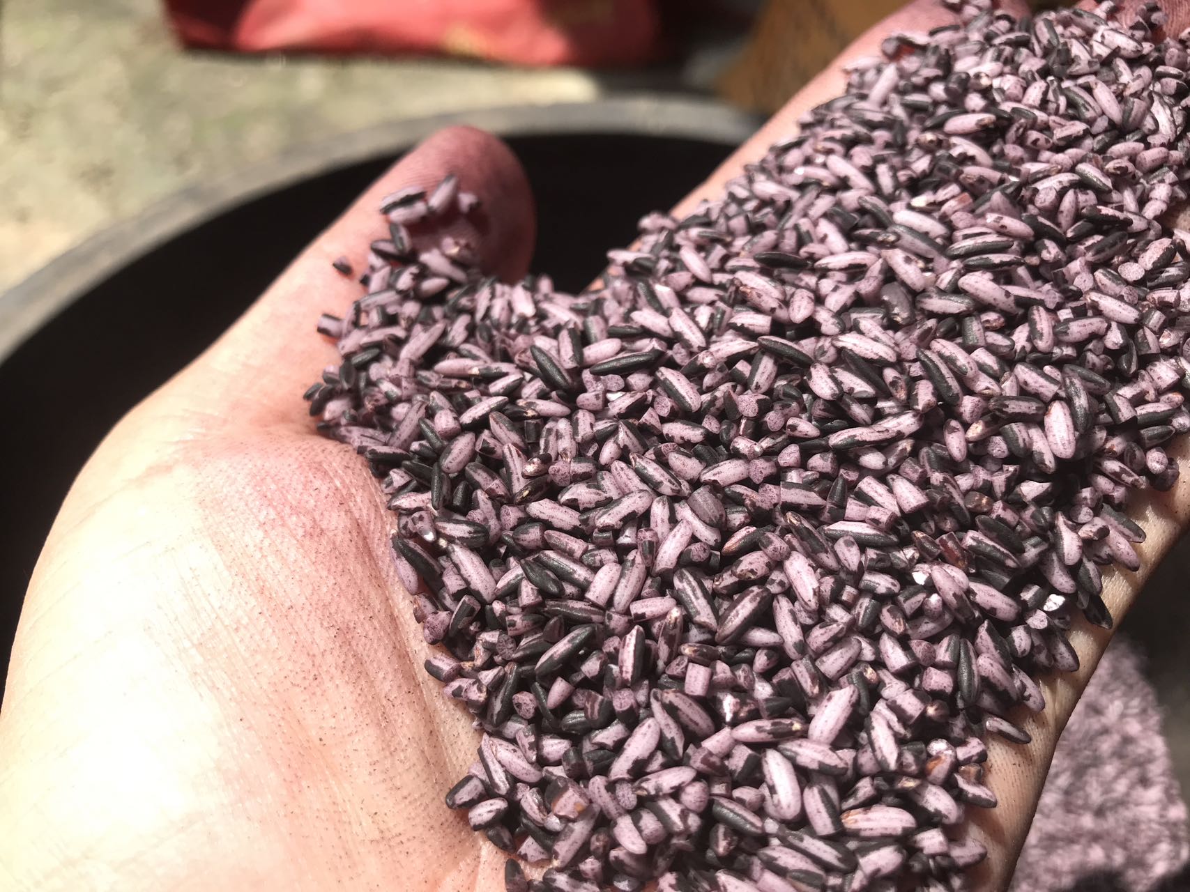 为了保证老品种紫米的纯度,种植种子的筛选是由负责种植的村民从所有的老品种紫米中一粒一粒挑选出来品质最好的种子,留作明年种植所用。