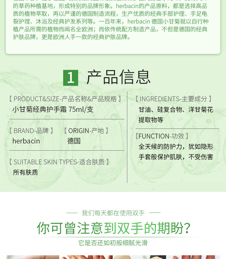 现货▲德国 贺本清小甘菊男女深层滋润 保湿补水防裂护手霜 75ml