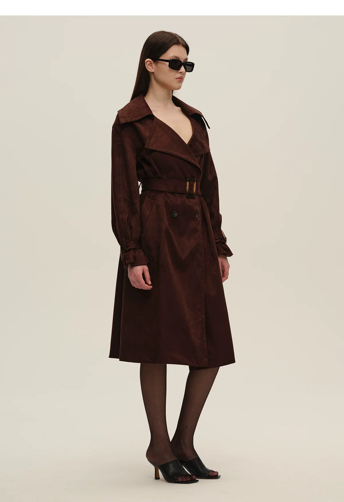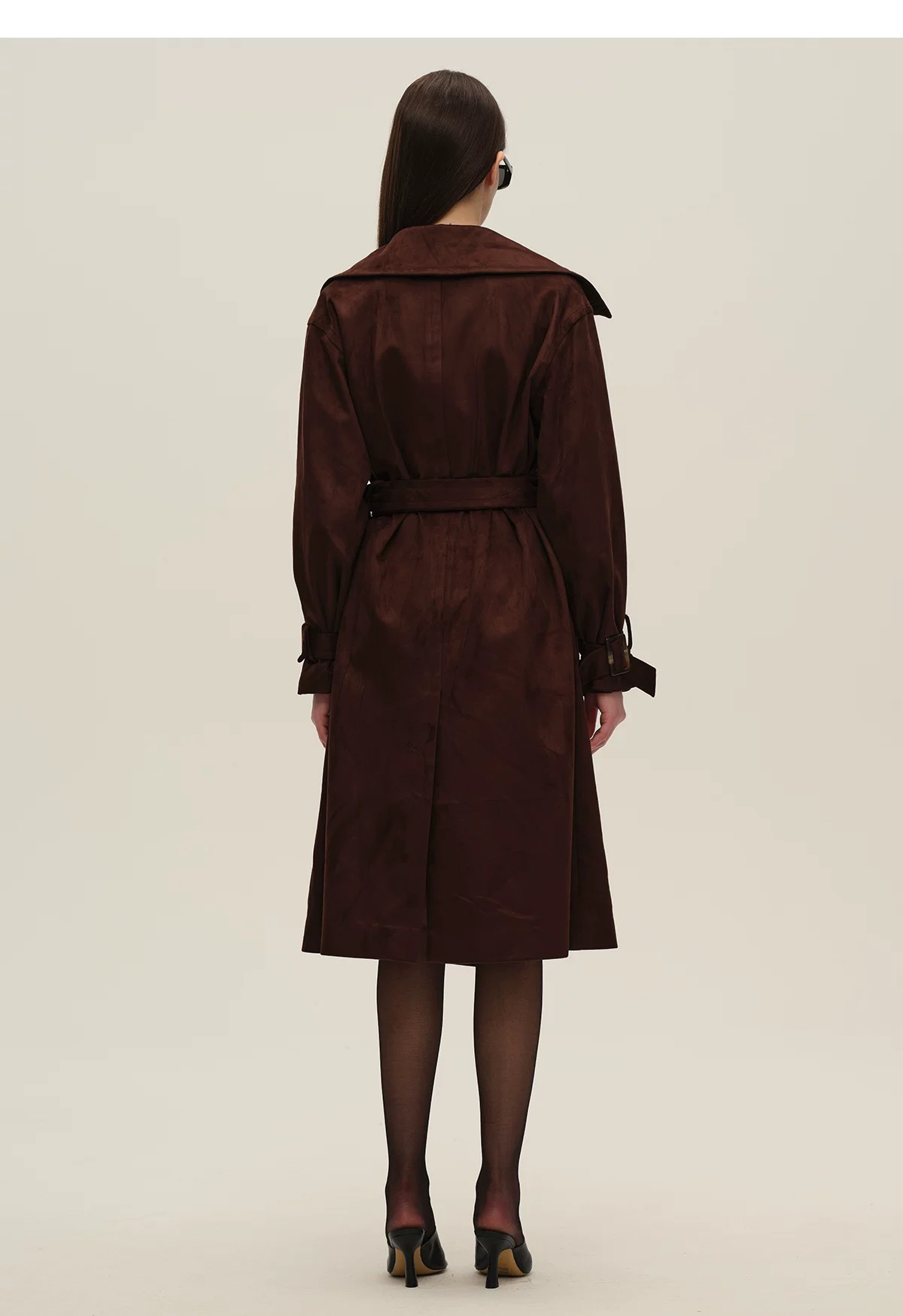 SIJIA|AW2507 酒红麂皮长款皮风衣