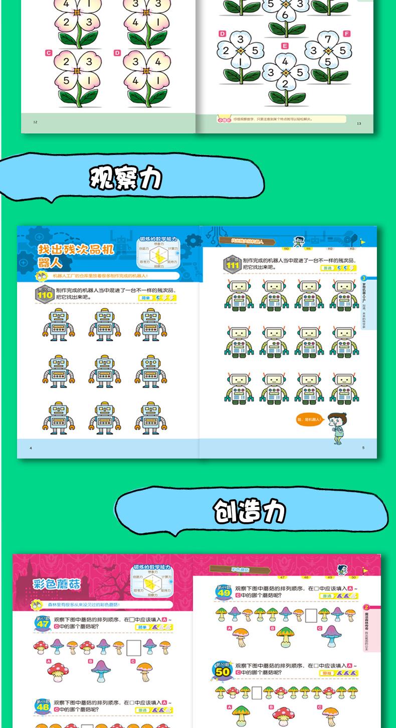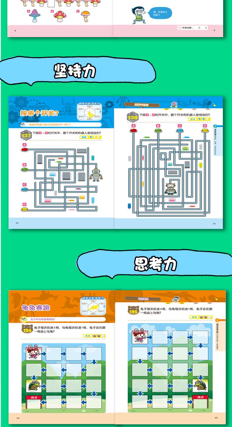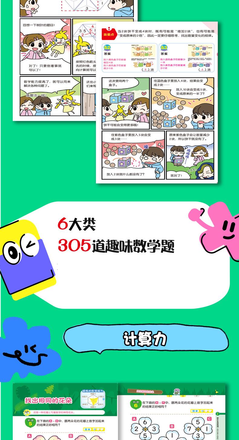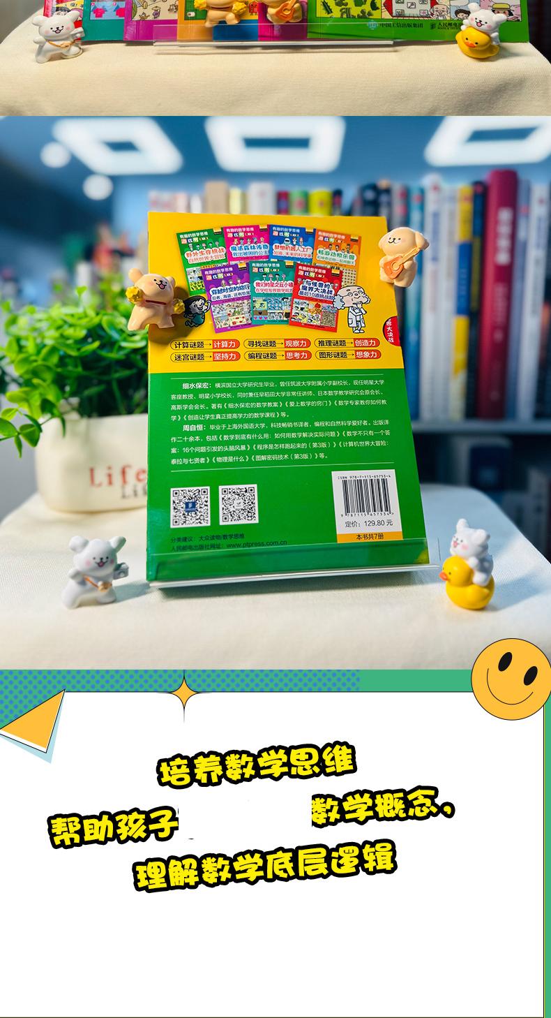 《有趣的数学思维游戏书》是一套关于儿童数学思维启蒙的漫画故事书。全套书共7 册,以激发孩子学数学的兴趣、启发孩子的数学思维为出发点,设计了7 个充满趣味的漫画探险故事,例如:野外生存大挑战,在魔法森林中拯救被困公主,参观机器人工厂,畅游动物乐园,穿越到恐龙世界,与魔界大反派决战,等等。在每个冒险故事中,小主人公们只有解开一个又一个的数学谜题,才能顺利通关。本套书引导孩子用数学的视角感知世界,培养孩子的数学思维,让数学学习变得更有趣。本套书适合3*9岁孩子阅读。