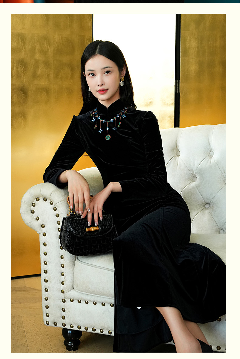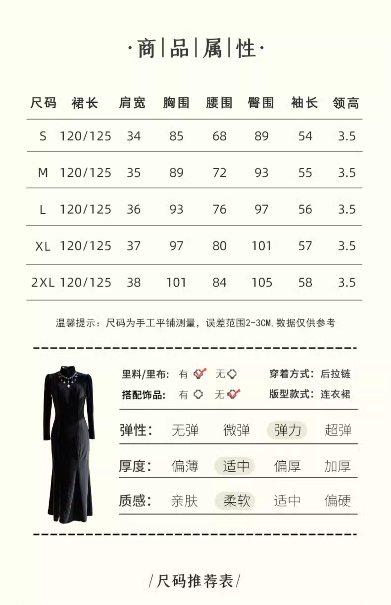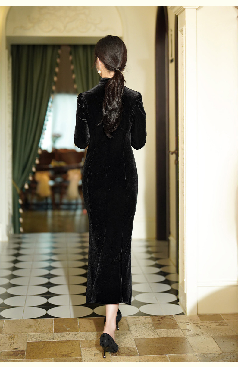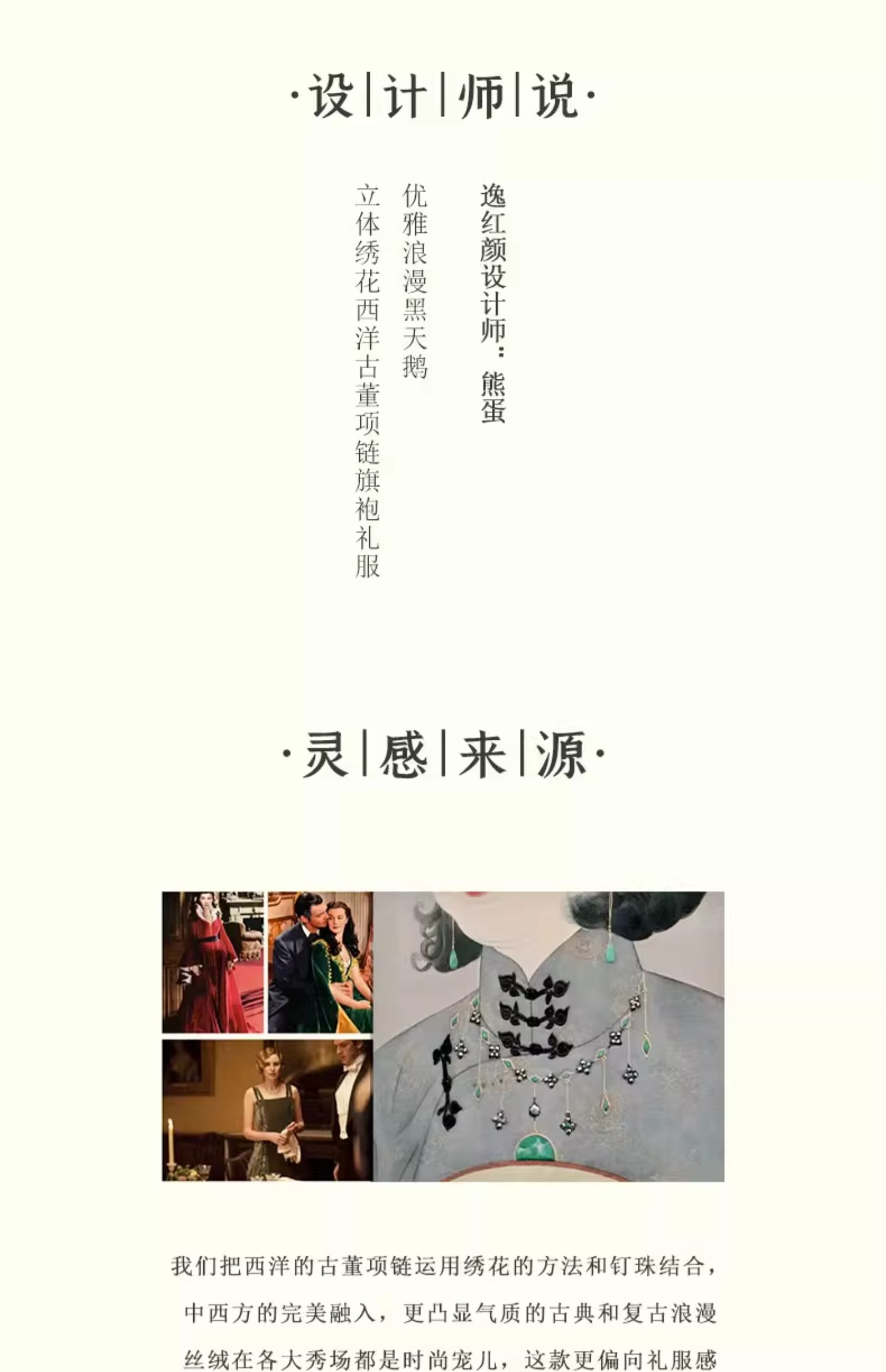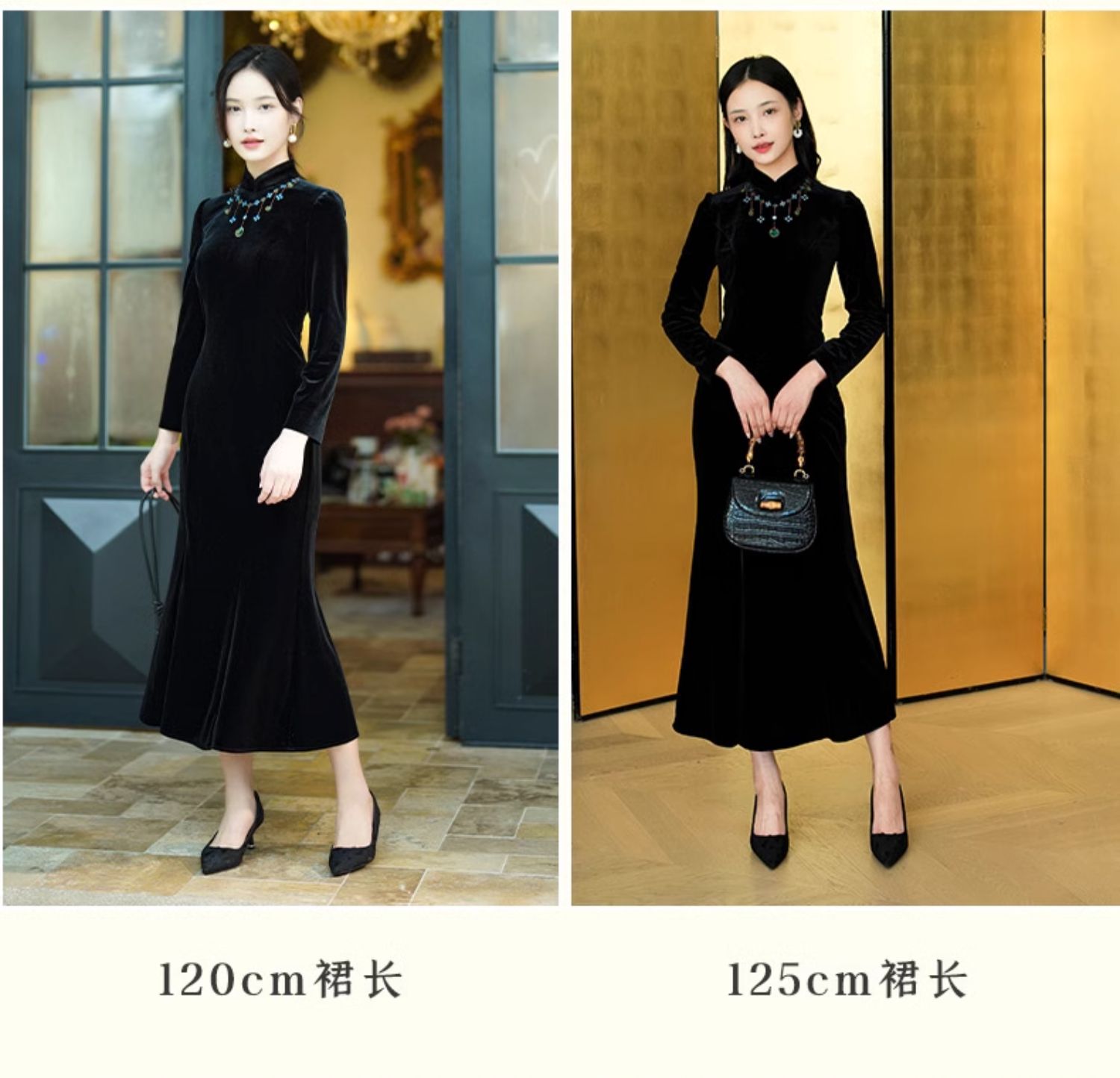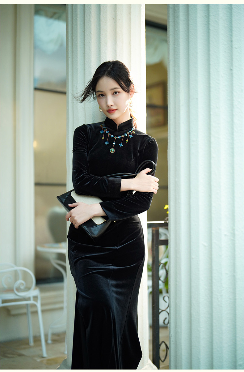 上海逸红颜梳影2025年秋冬新款丝绒新中式刺绣项链开衩鱼尾连衣裙