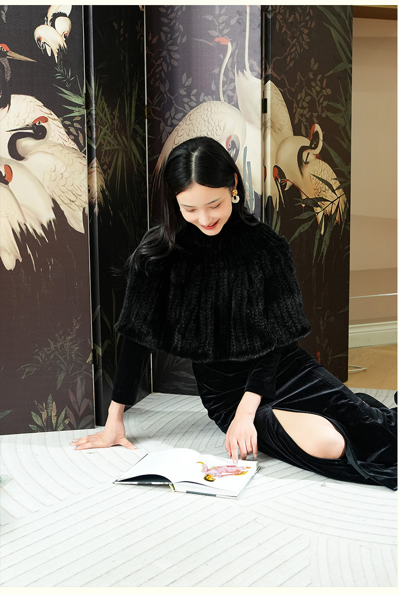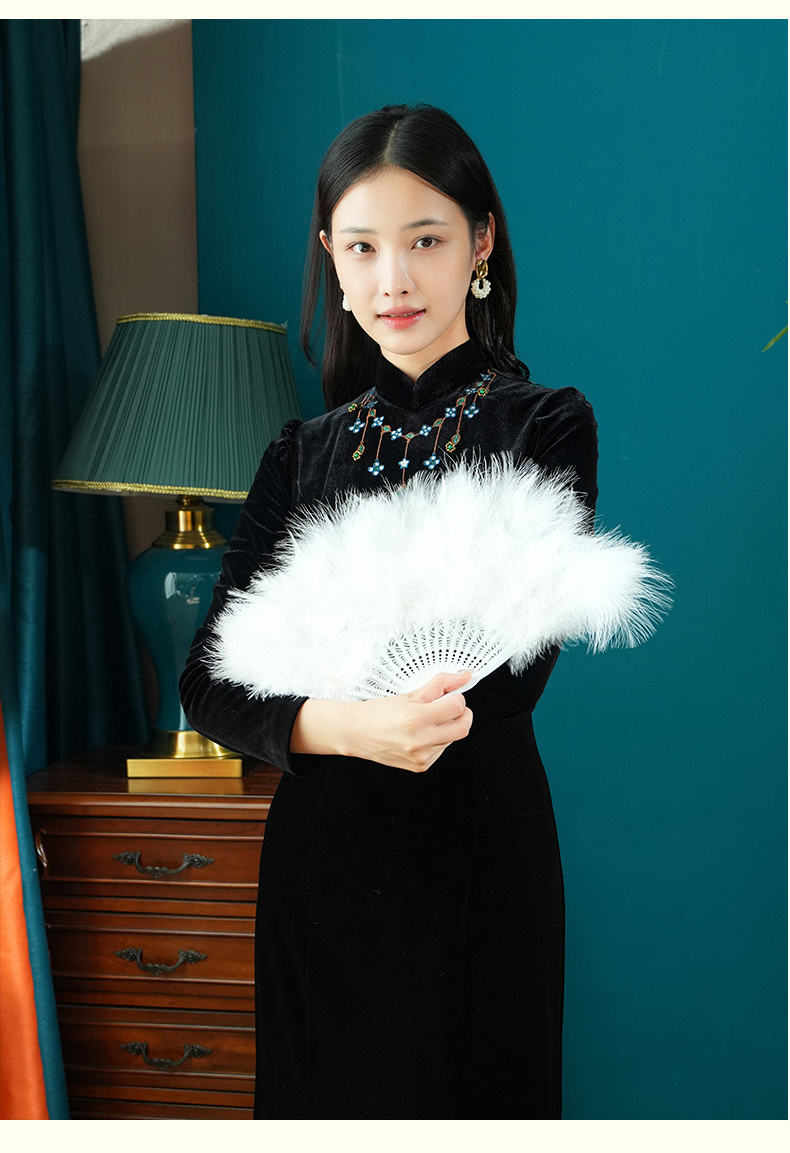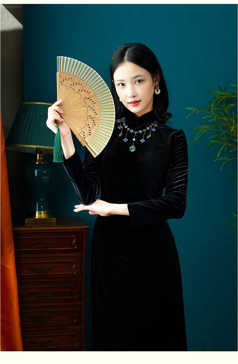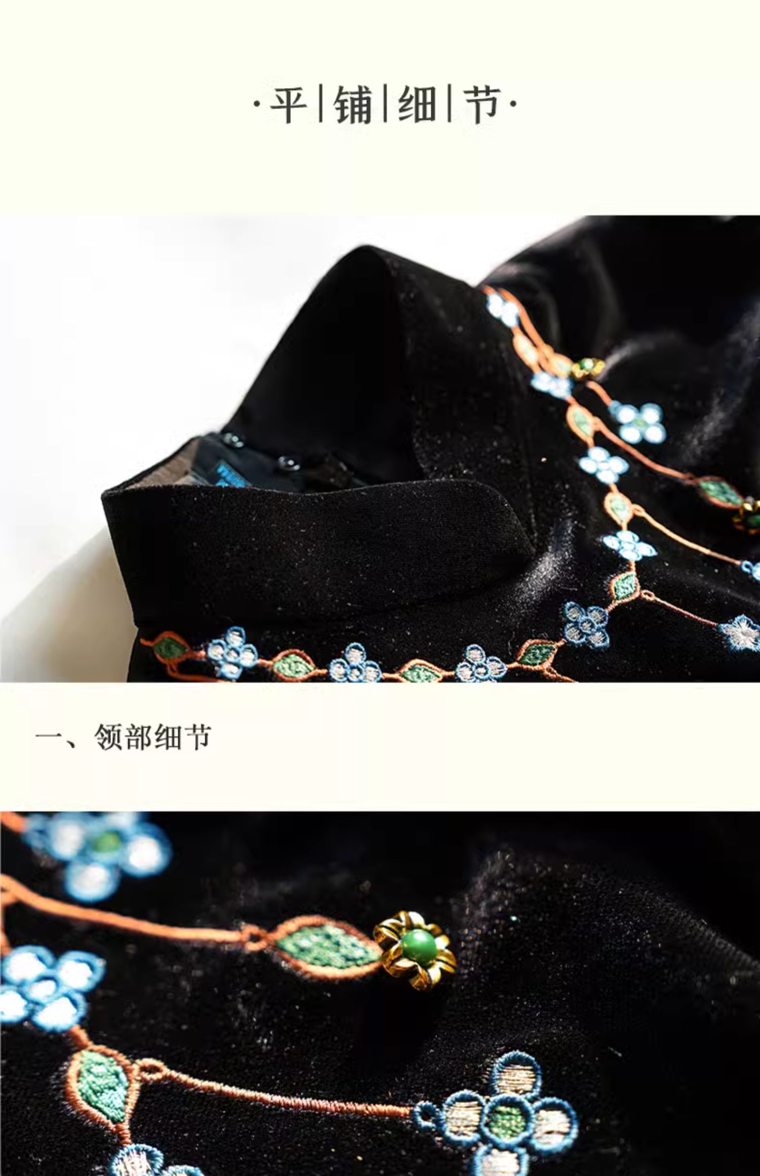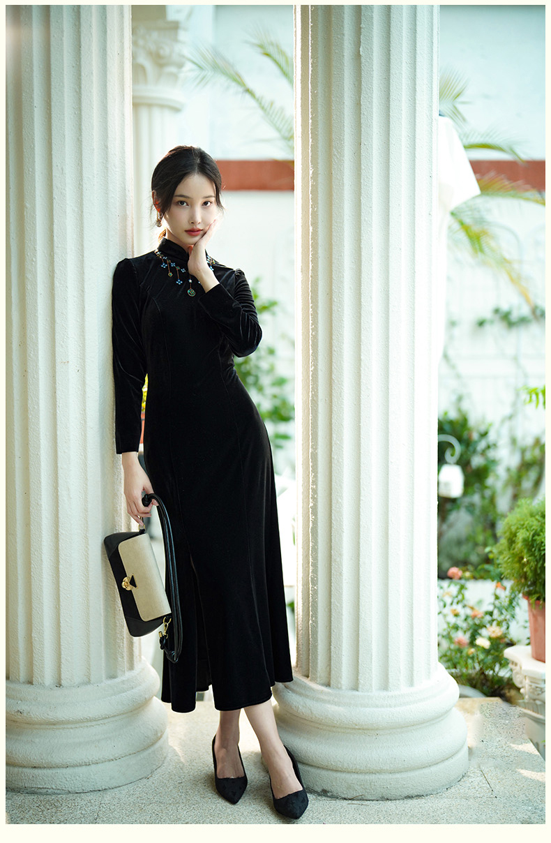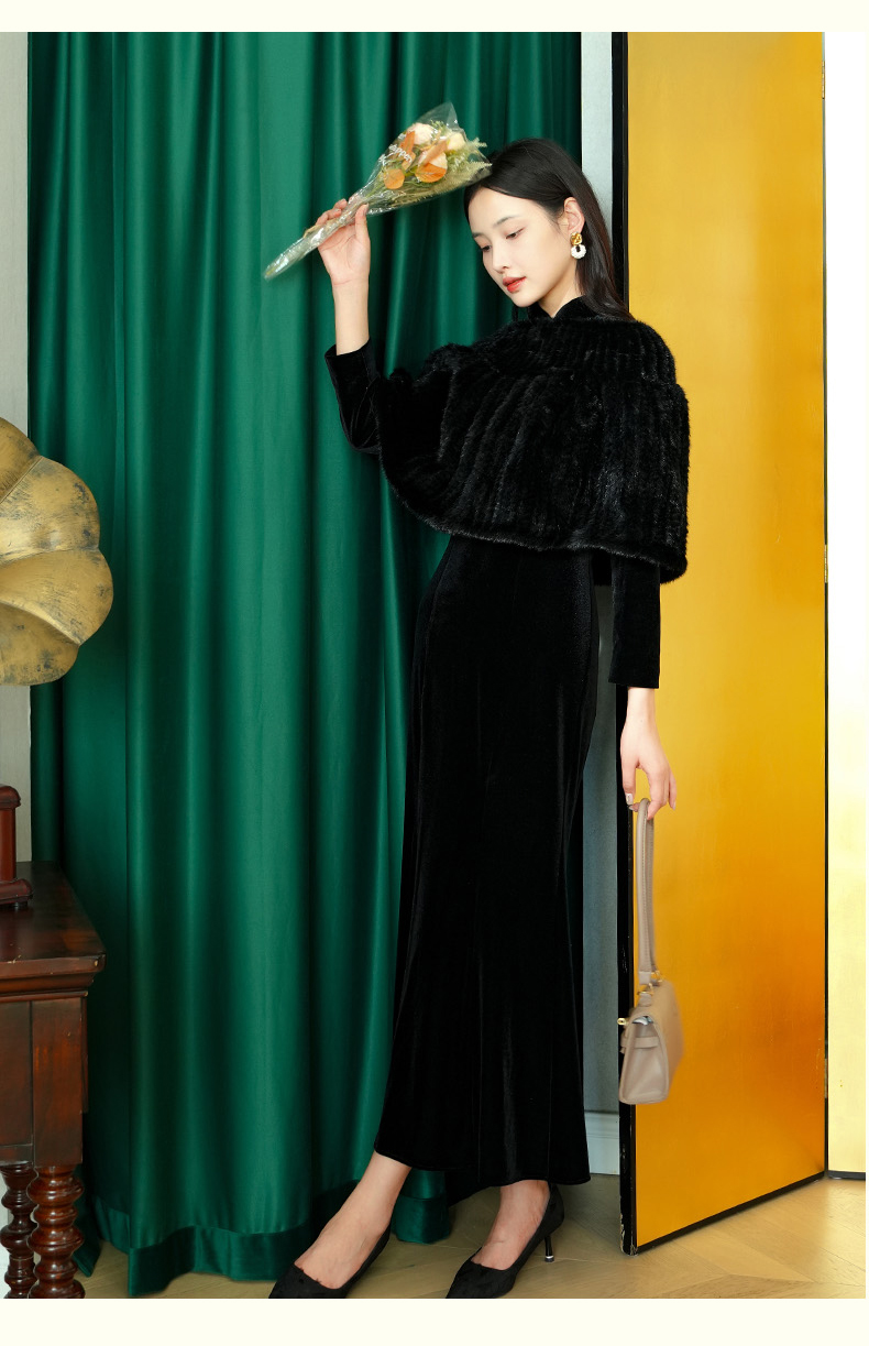 上海逸红颜梳影2025年秋冬新款丝绒新中式刺绣项链开衩鱼尾连衣裙