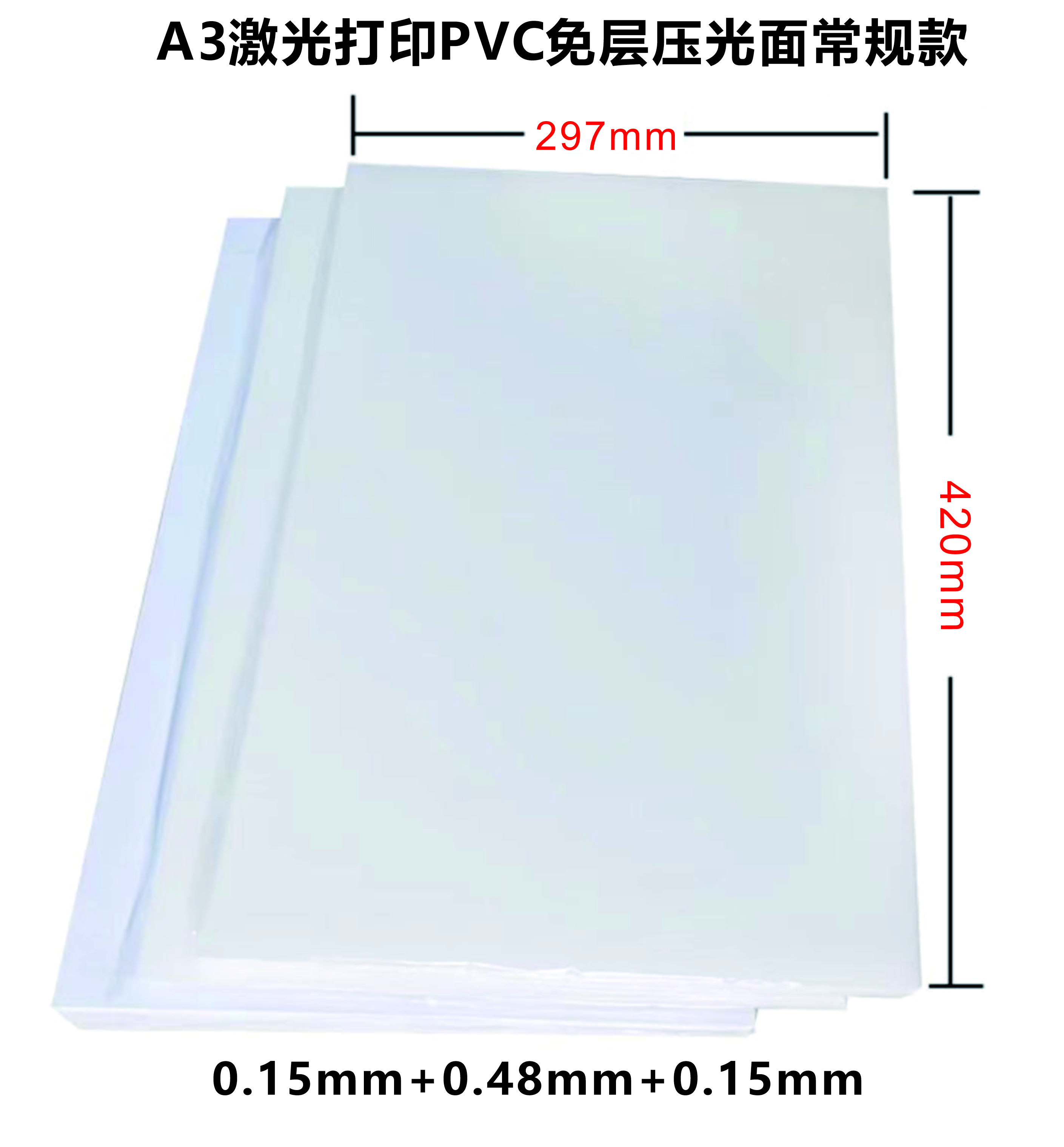激光打印A3 (0.15+0.48+0.15) 免层压双面PVC/会员证件卡片 297*420mm 散装