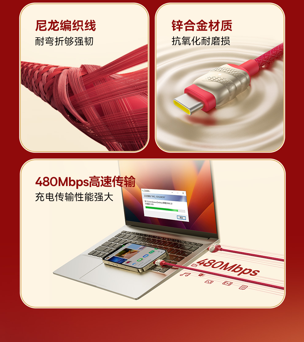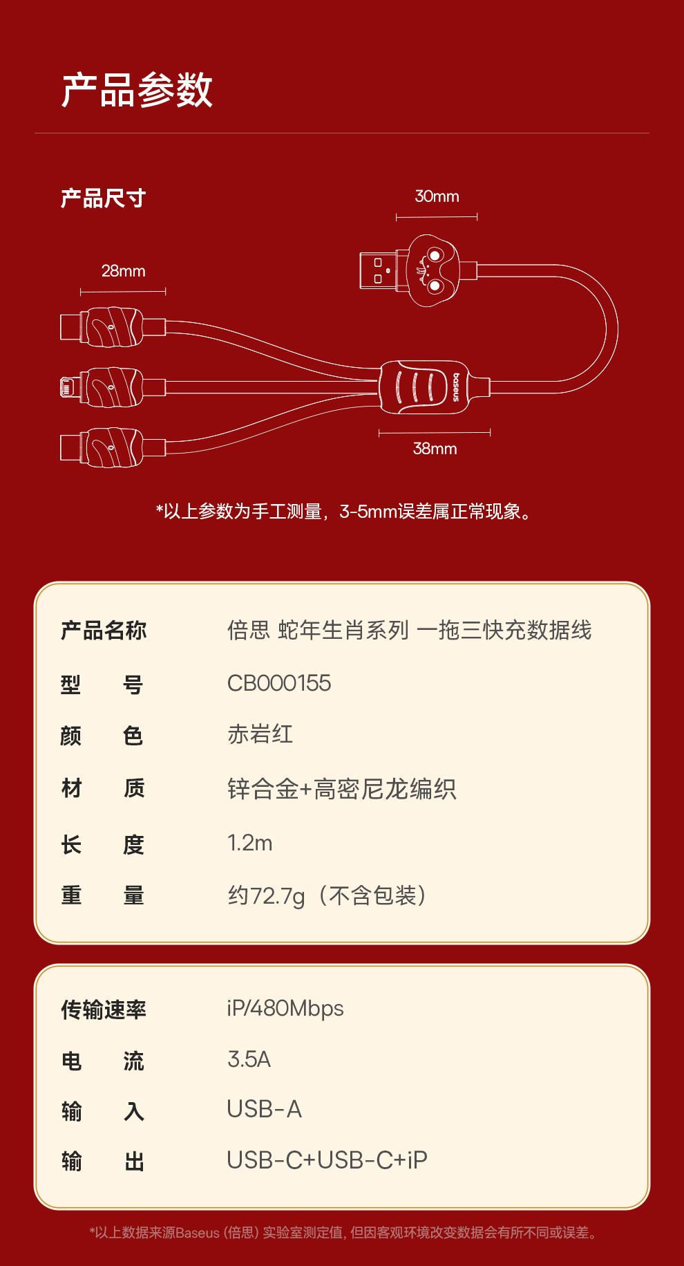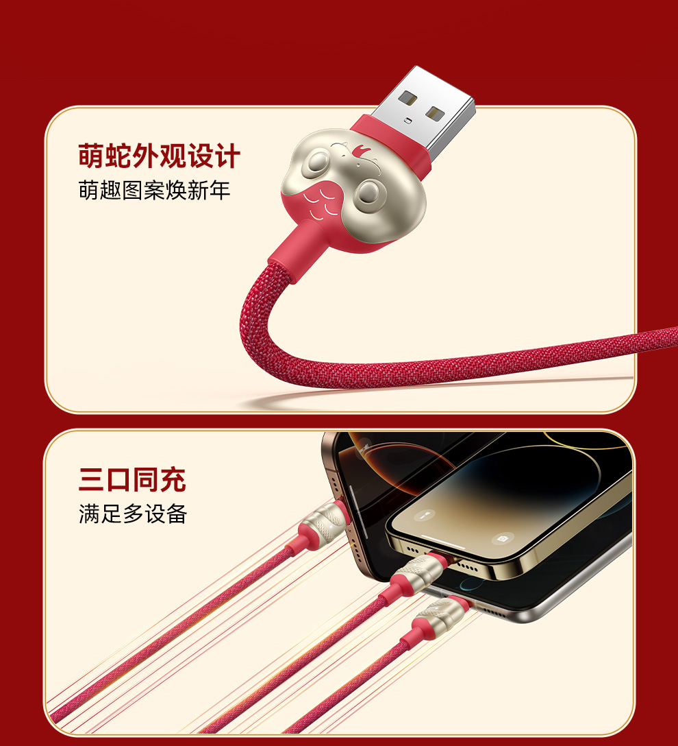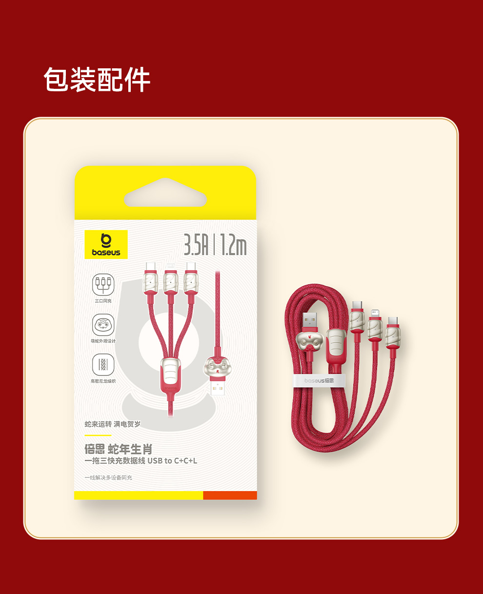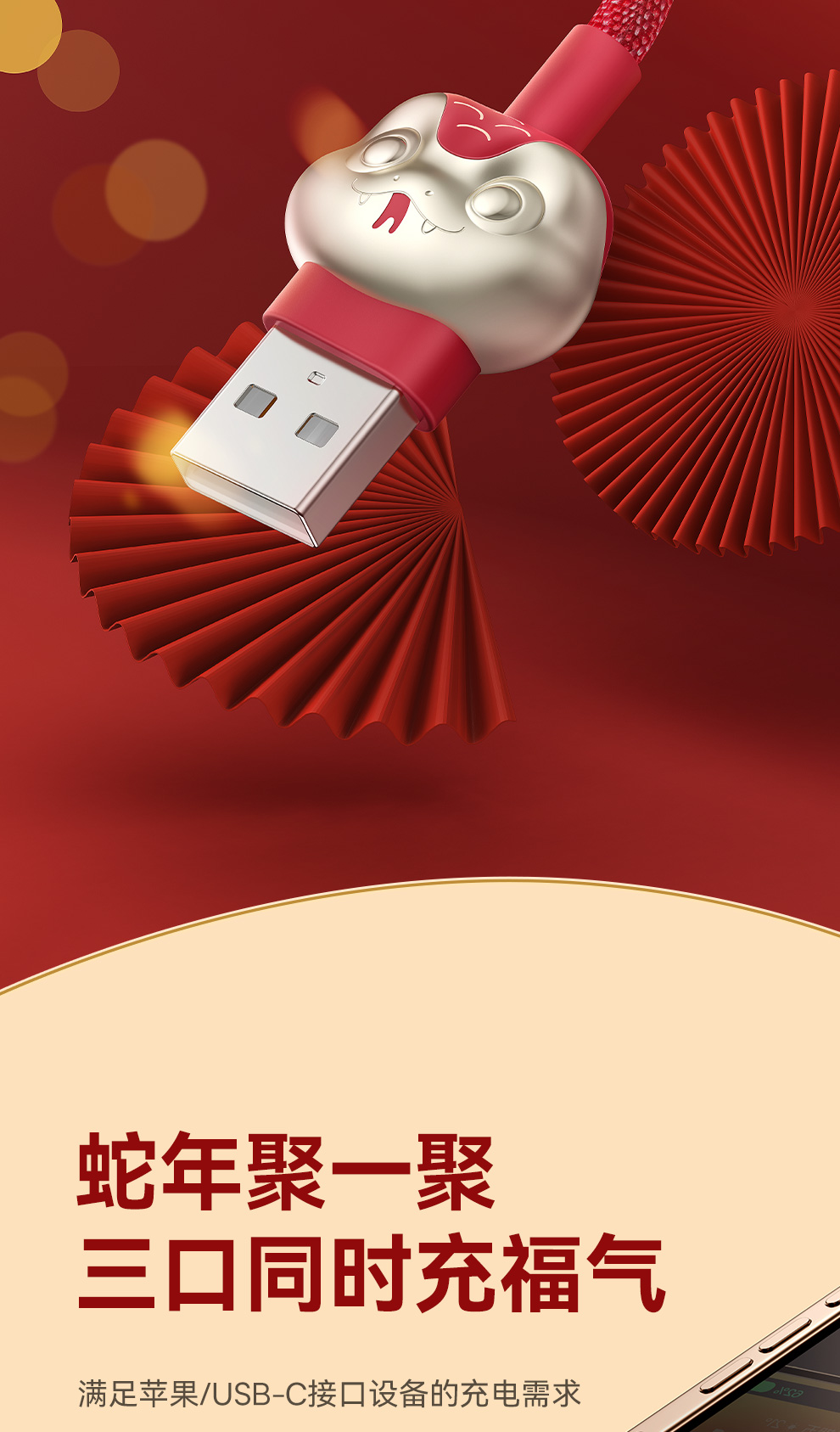 【69元3件】蛇年生肖系列 快充充电线 USB to C+C+L 3.5A