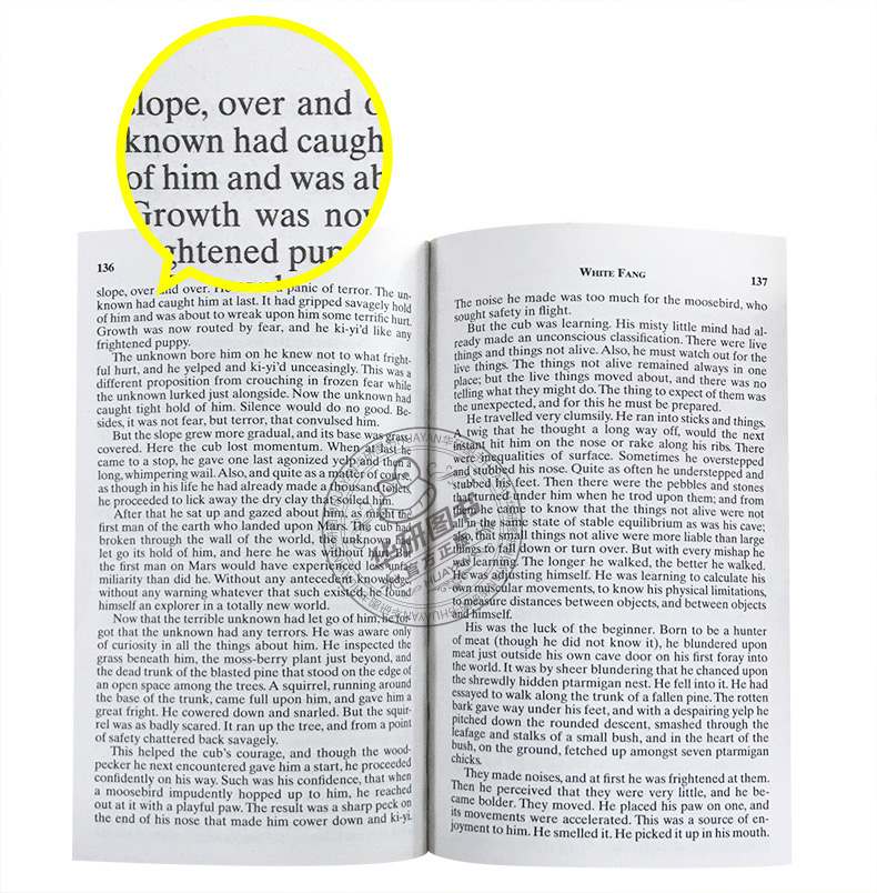 The Call of the Wild and White Fang《野性的呼唤与白牙》收录了Jack London(杰克•伦敦)的两部经典自然主义小说。从自然的角度,展现人性的特点,发人深思,以为深远,值得一读。书中史诗般的语言,大量的自然景色描写,赋予了读者无限的想象。另外,全书印刷清晰,体积轻巧,适合随身携带,随时阅读。