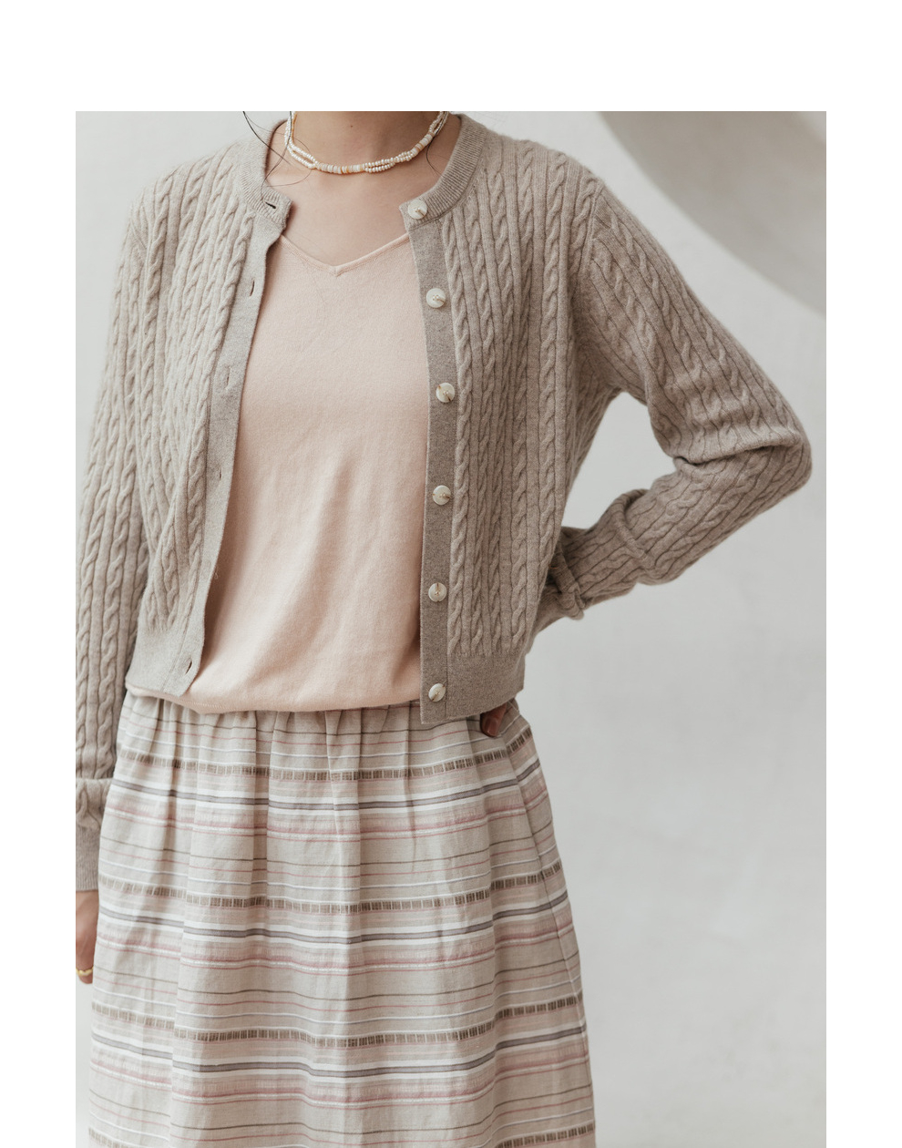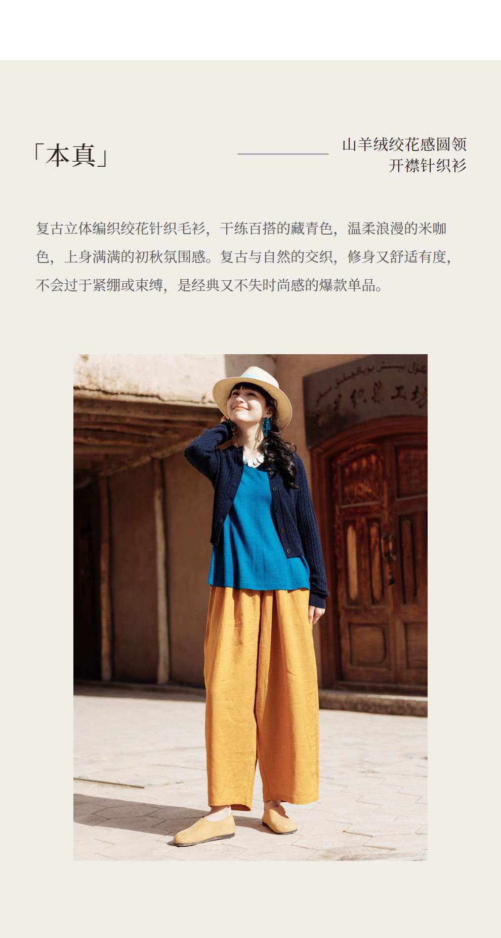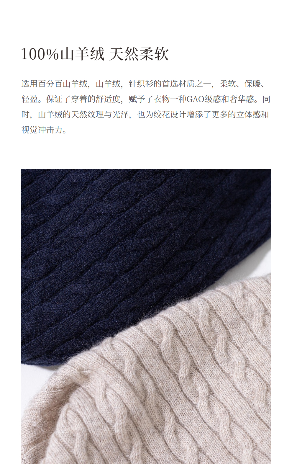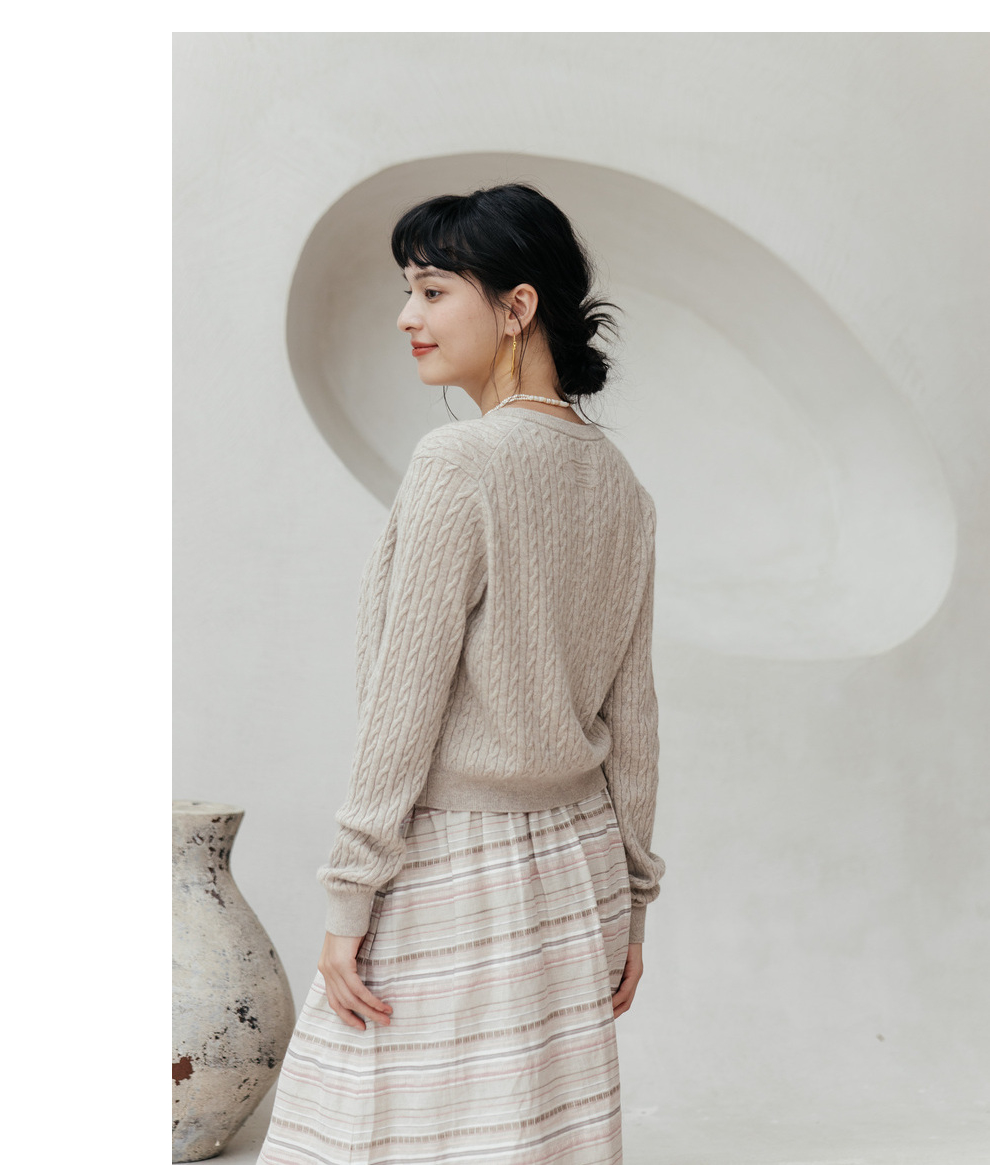 绽放旅行女装598朵/100%山羊绒绞花感正肩长袖圆领显瘦开襟针织衫