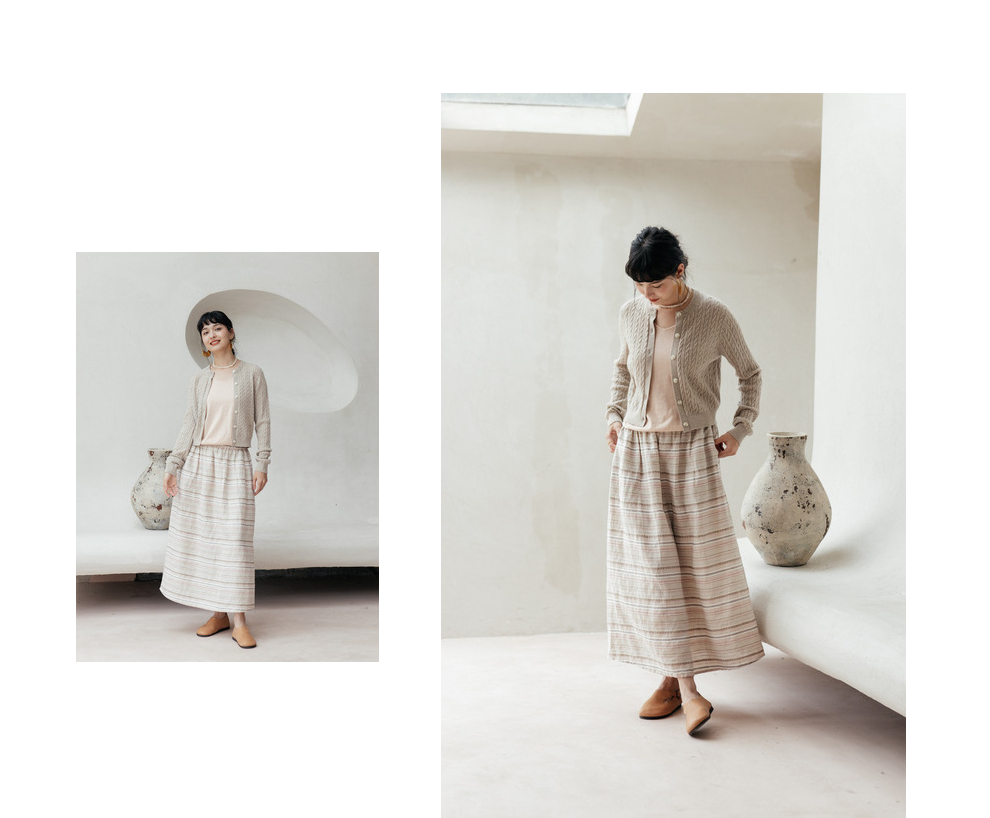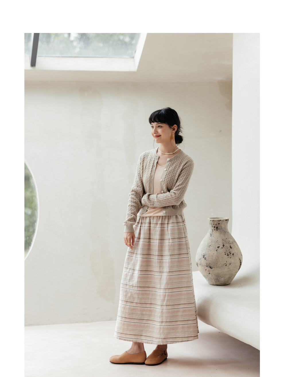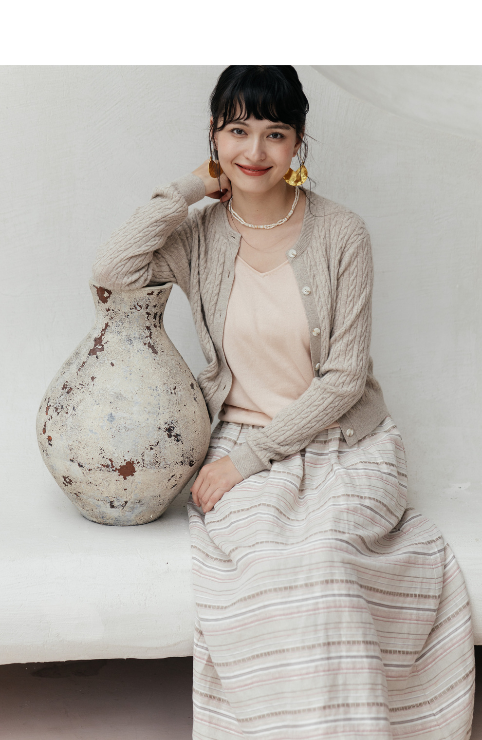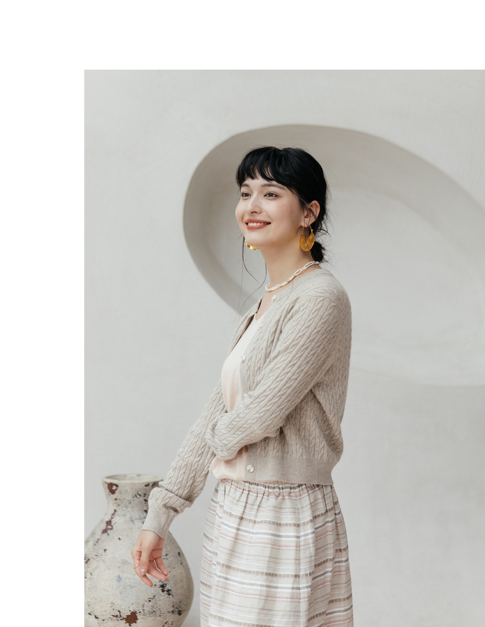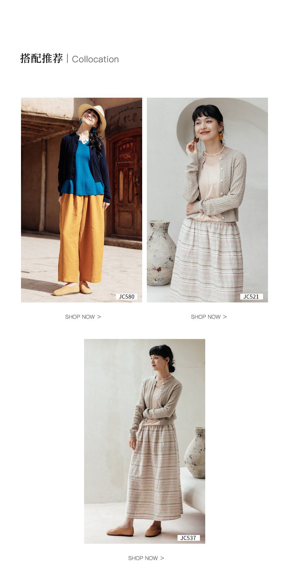 绽放旅行女装598朵/100%山羊绒绞花感正肩长袖圆领显瘦开襟针织衫