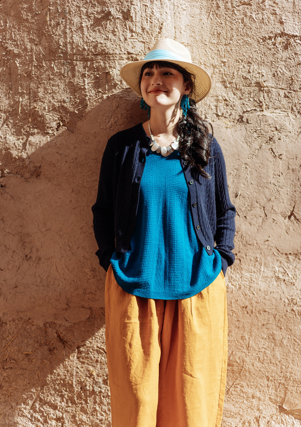 以天然亚麻为载体,融合热烈色彩与自在剪裁为身在城市、心怀远方的女性提供兼具美学与舒适的旅行着装