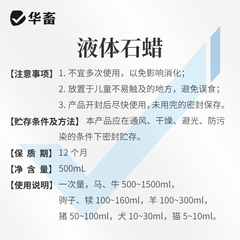 华畜液体石蜡500ml瘤胃积食