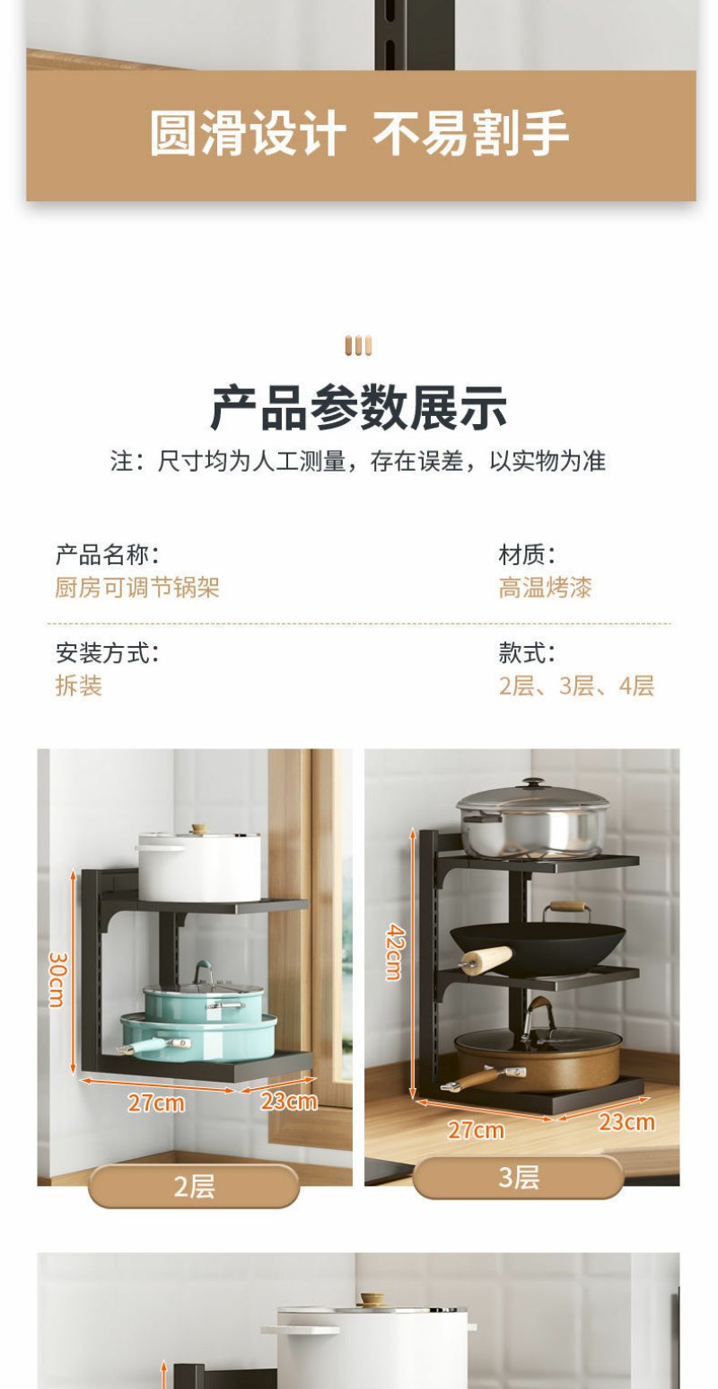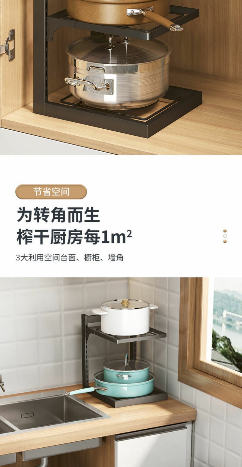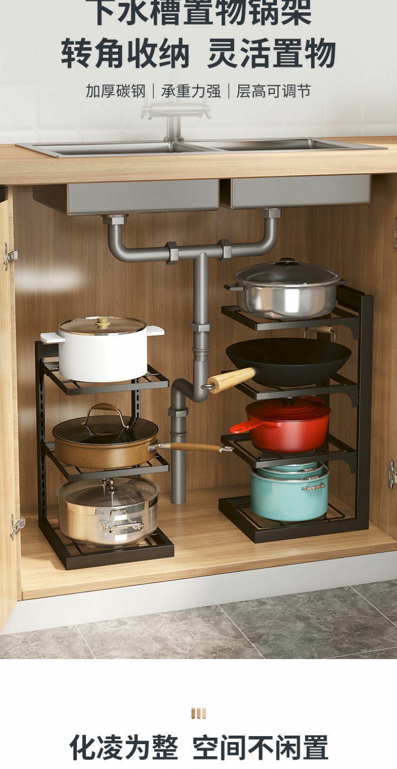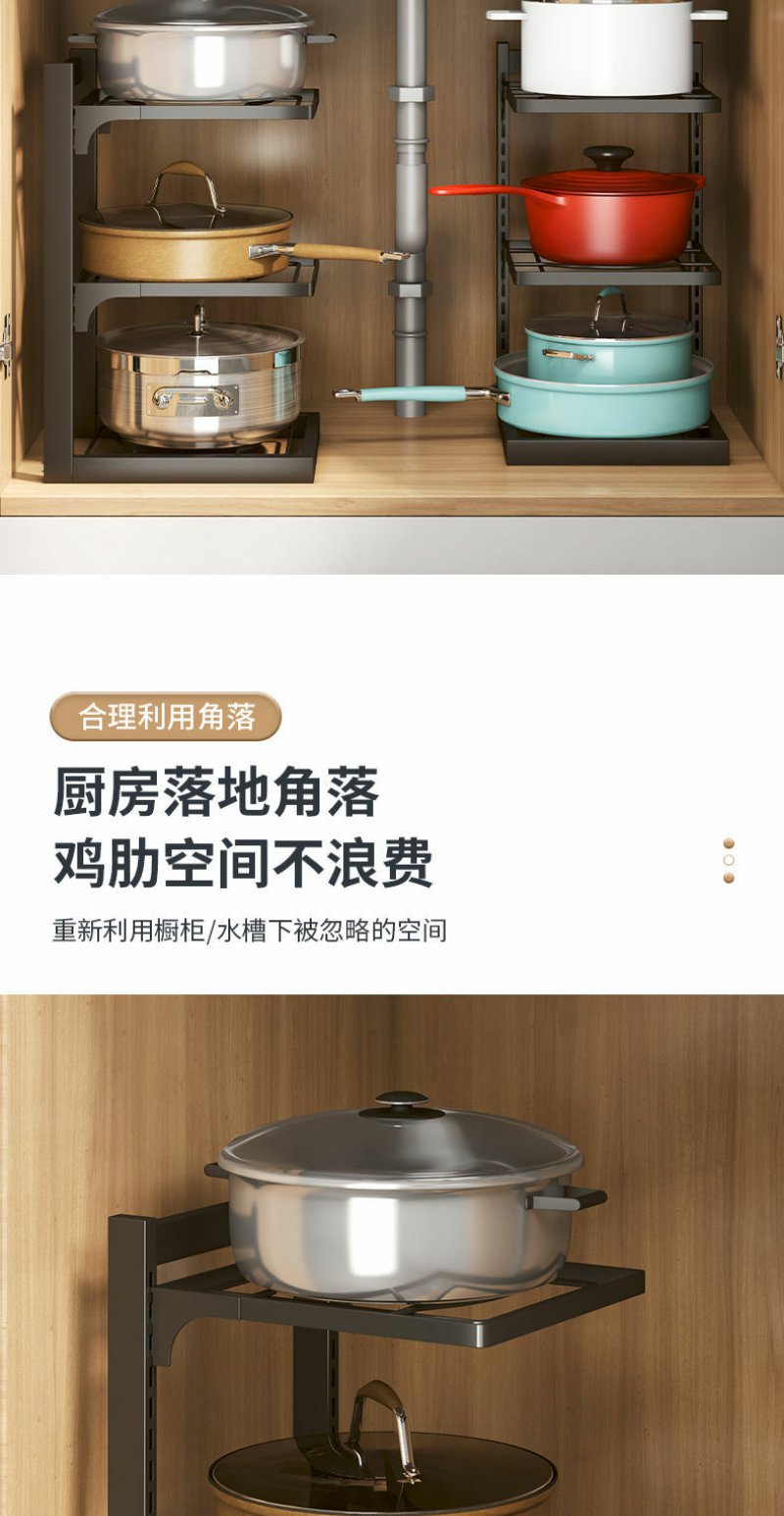 厨房置物架锅架新款多层可调节放下水槽橱柜内墙角夹缝窄收纳架子
