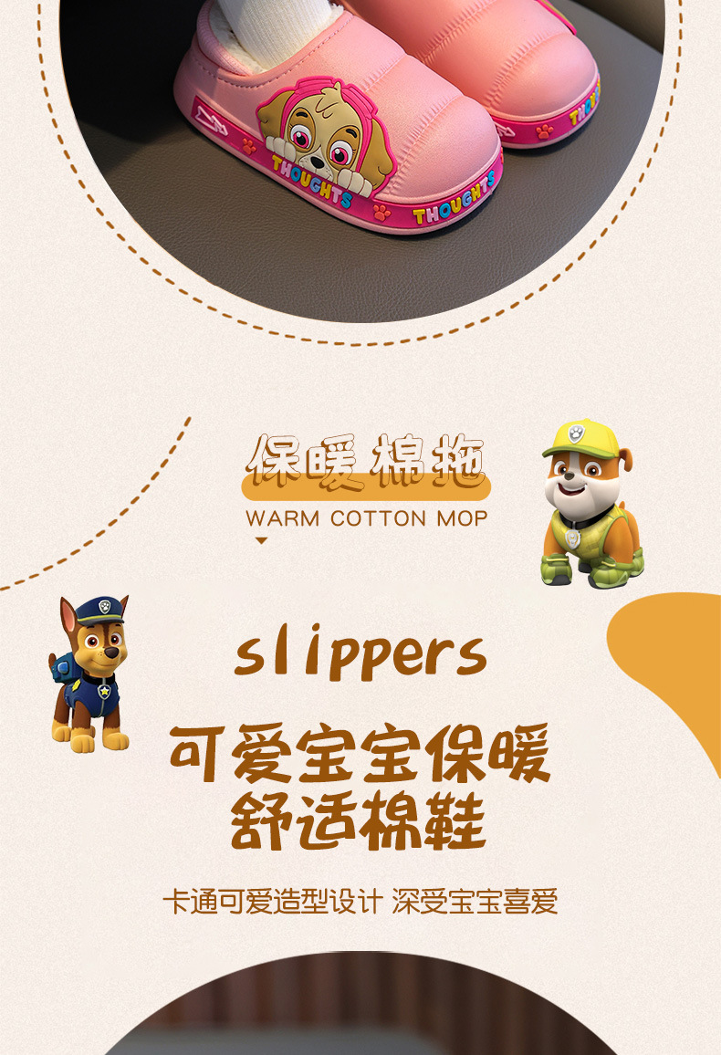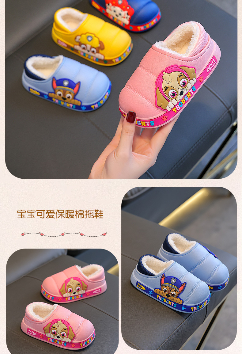 【汪汪队保暖加绒儿童棉拖鞋】秋冬季包跟中小童宝宝防水毛毛宝宝棉鞋