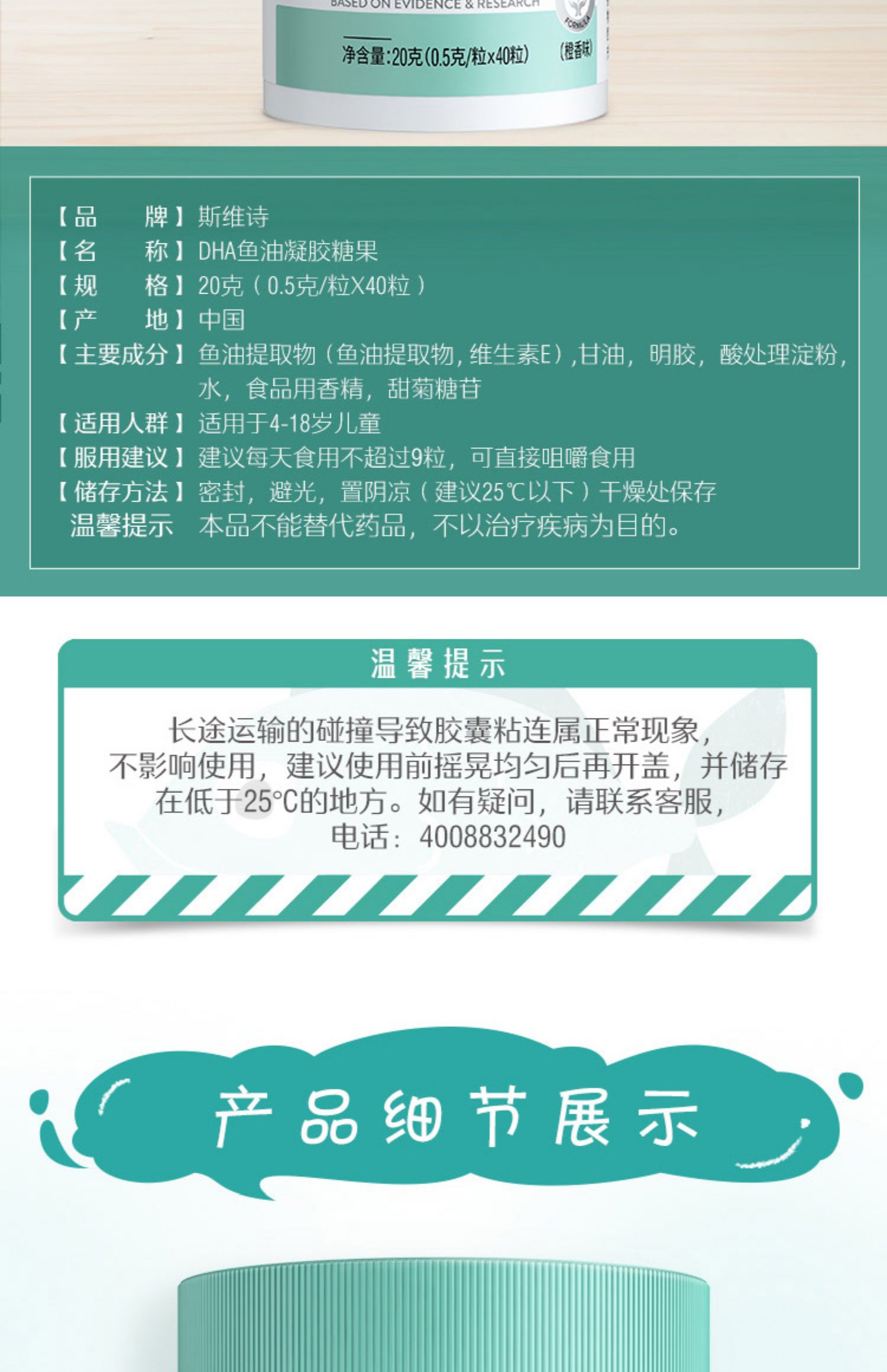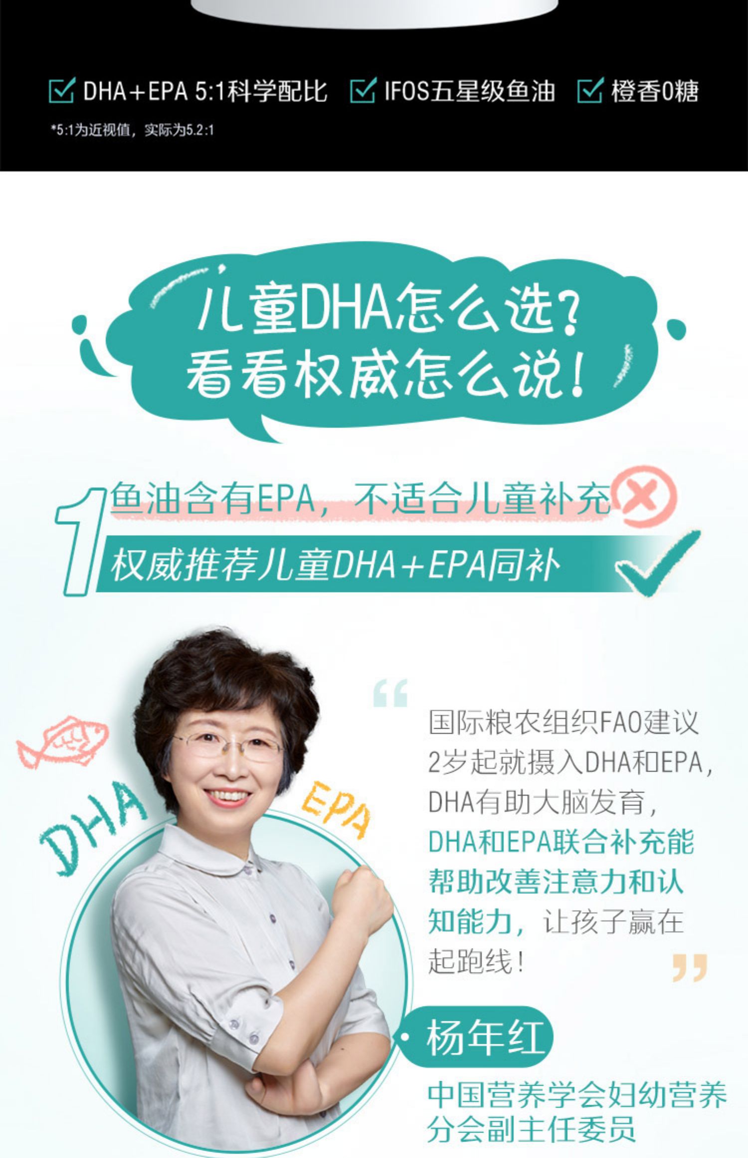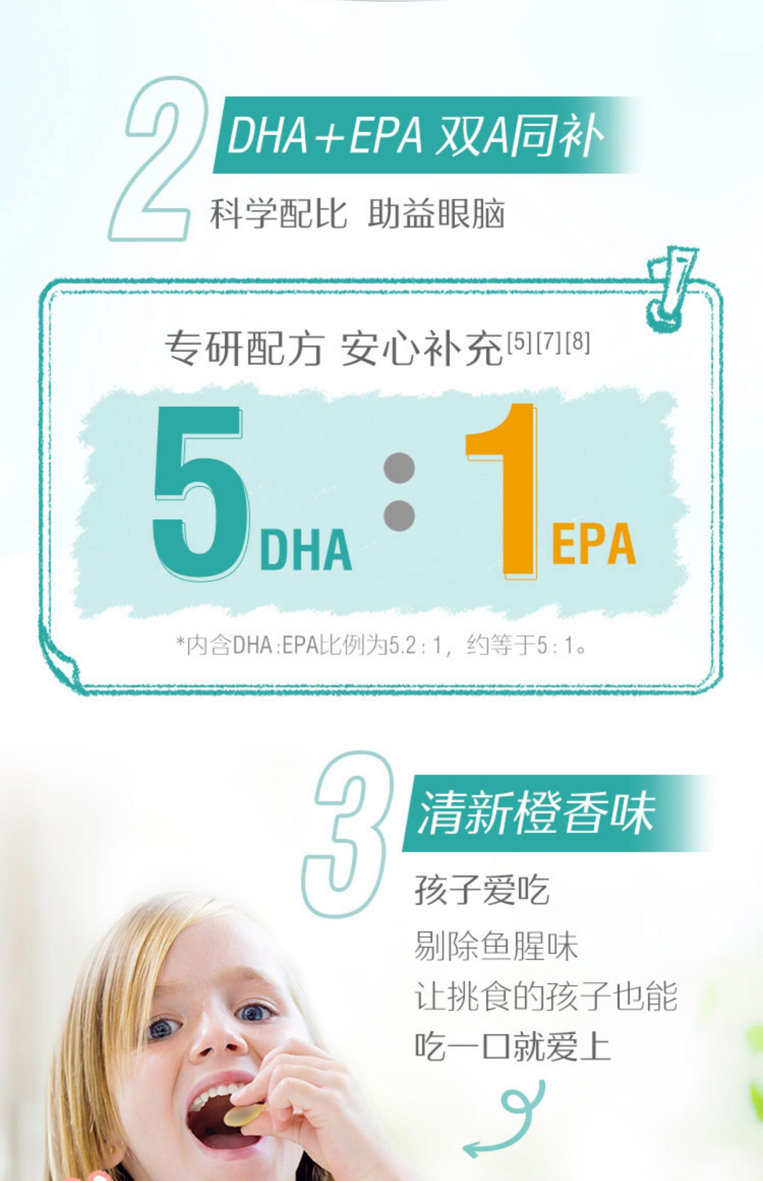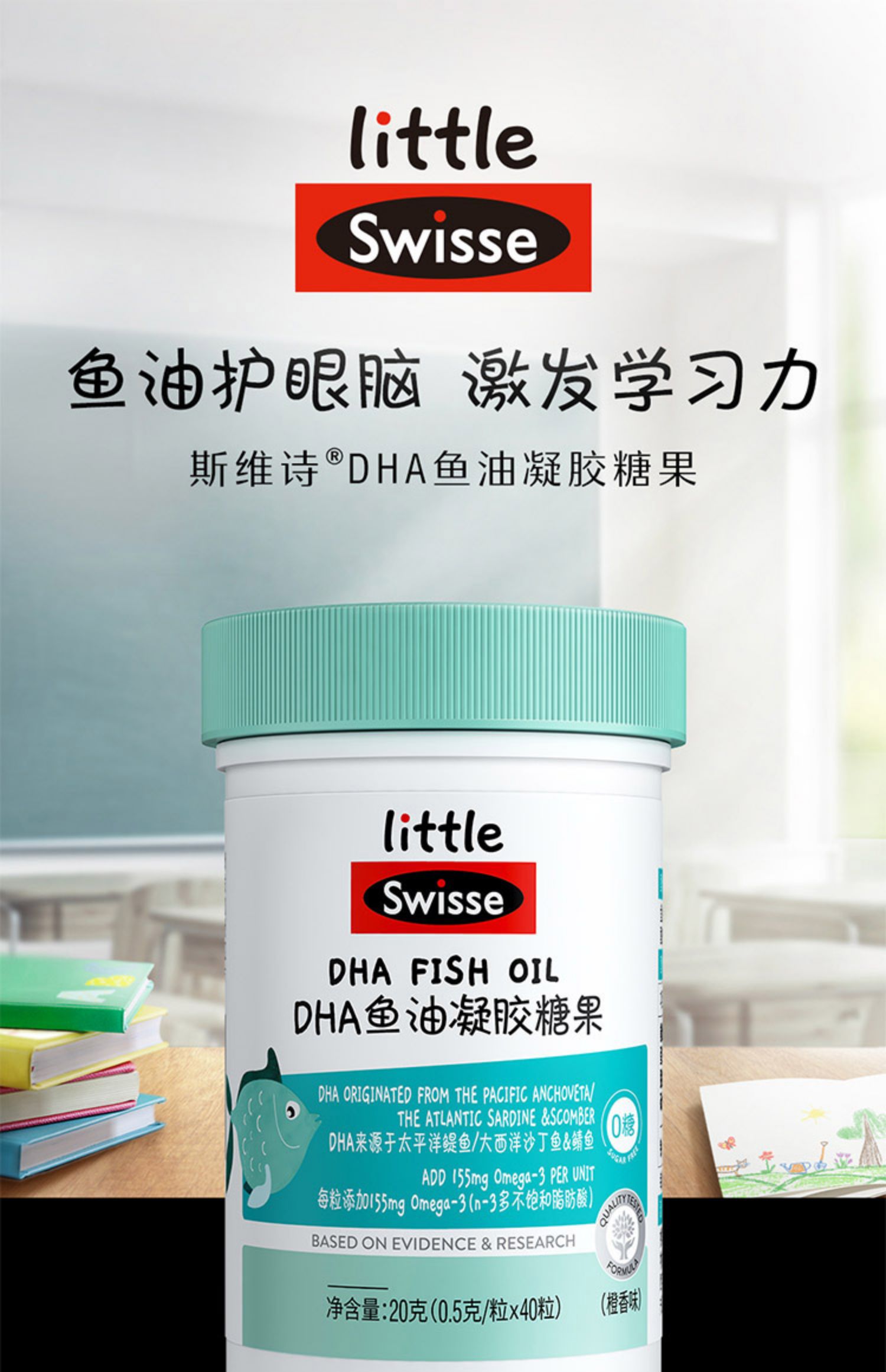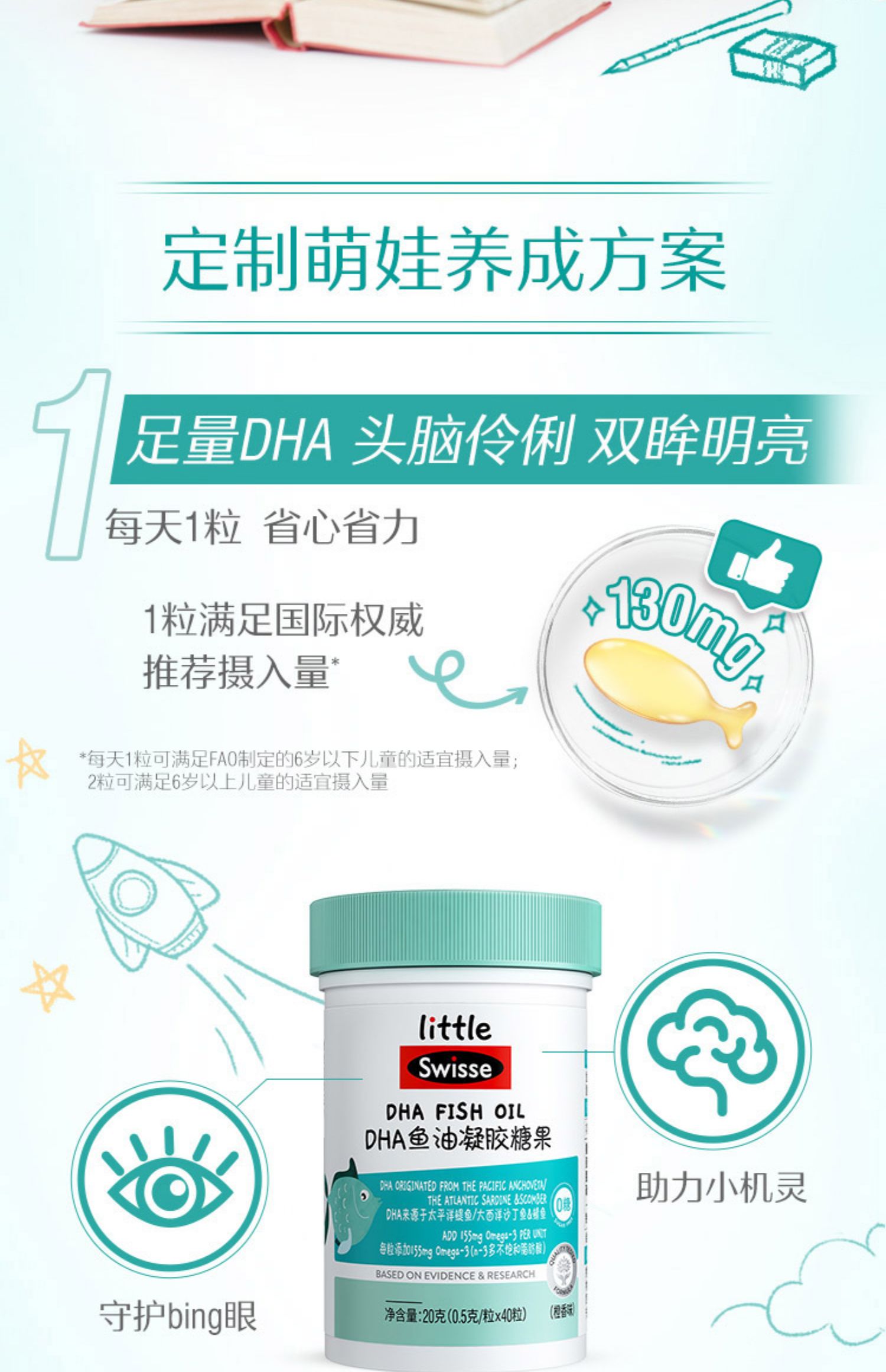 Swisse小小斯维诗DHA鱼油凝胶糖果橙香味40粒 儿童增强记忆力非鱼肝油