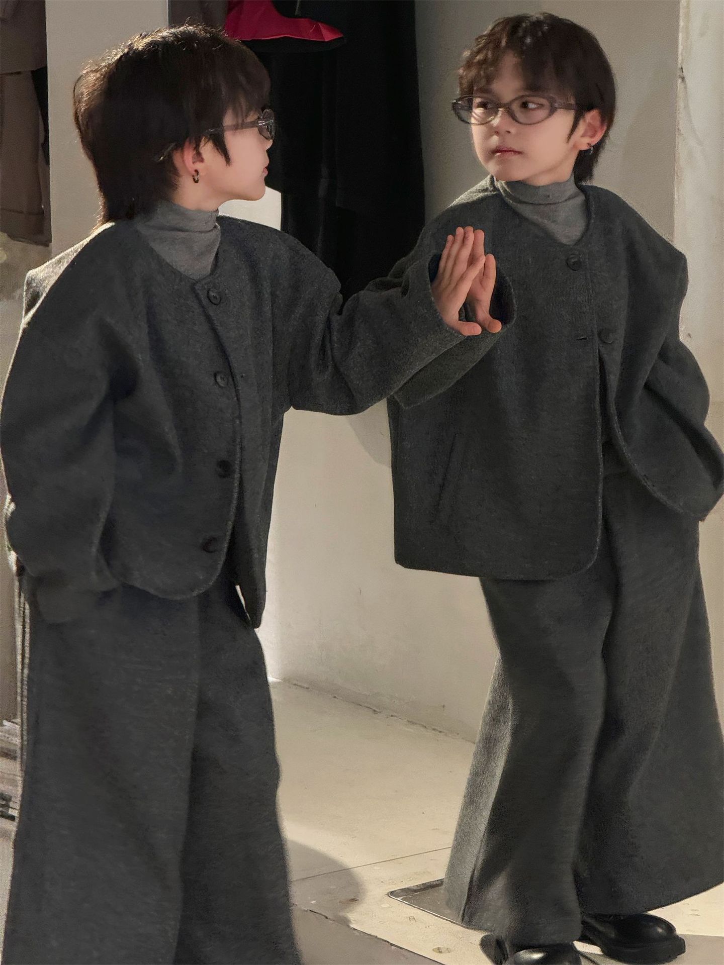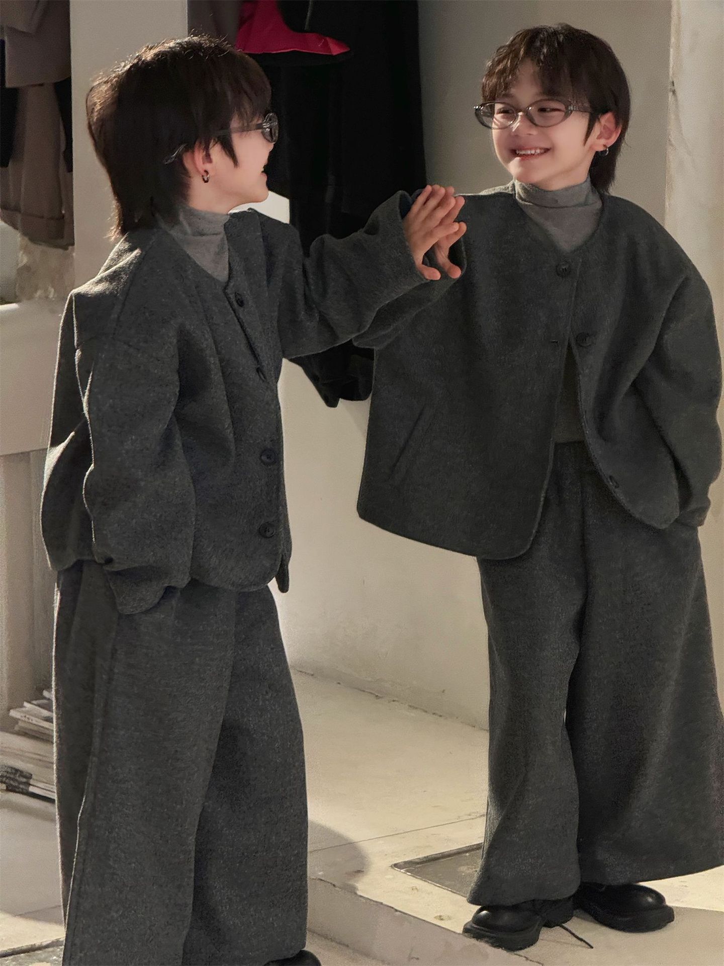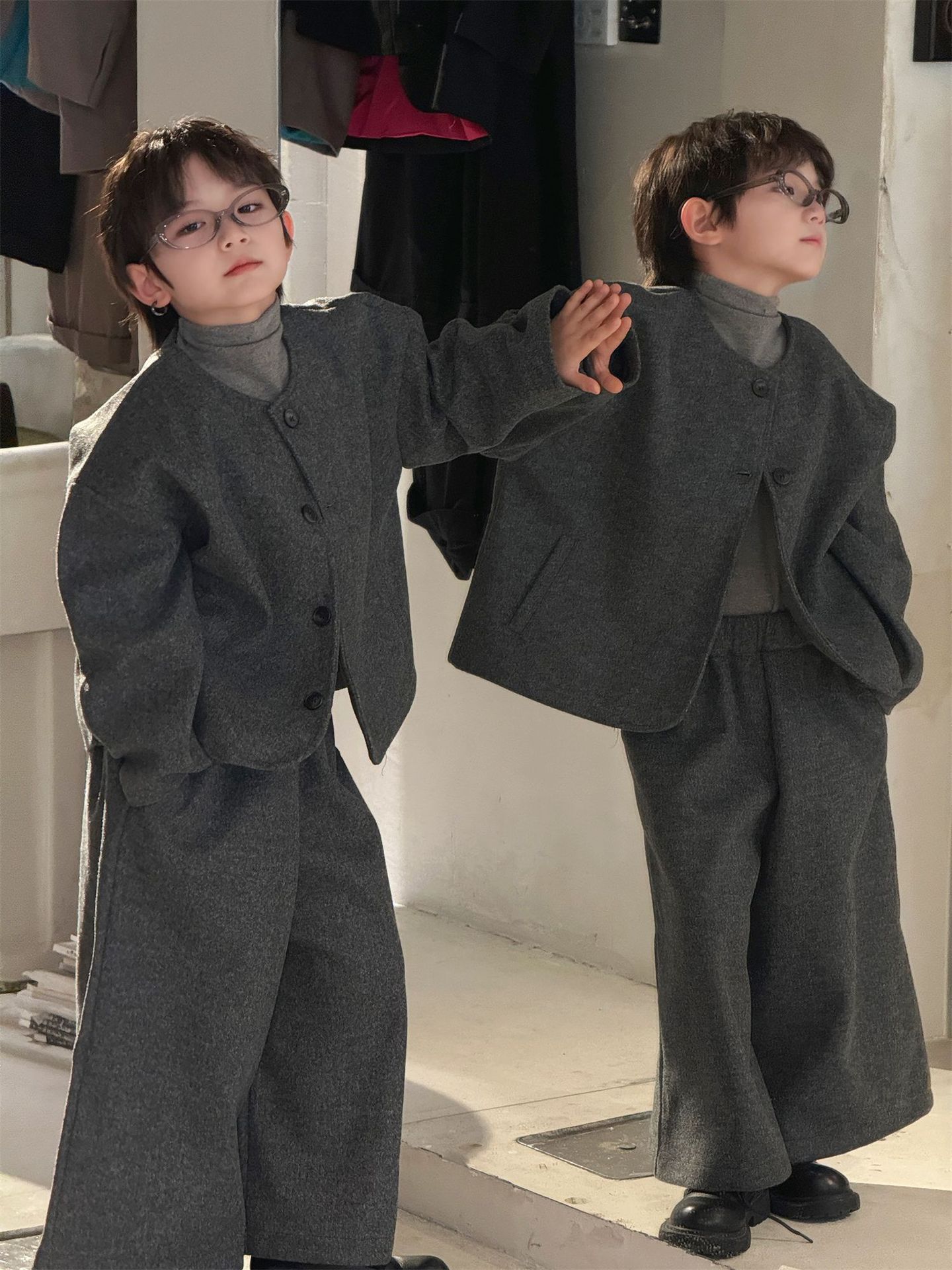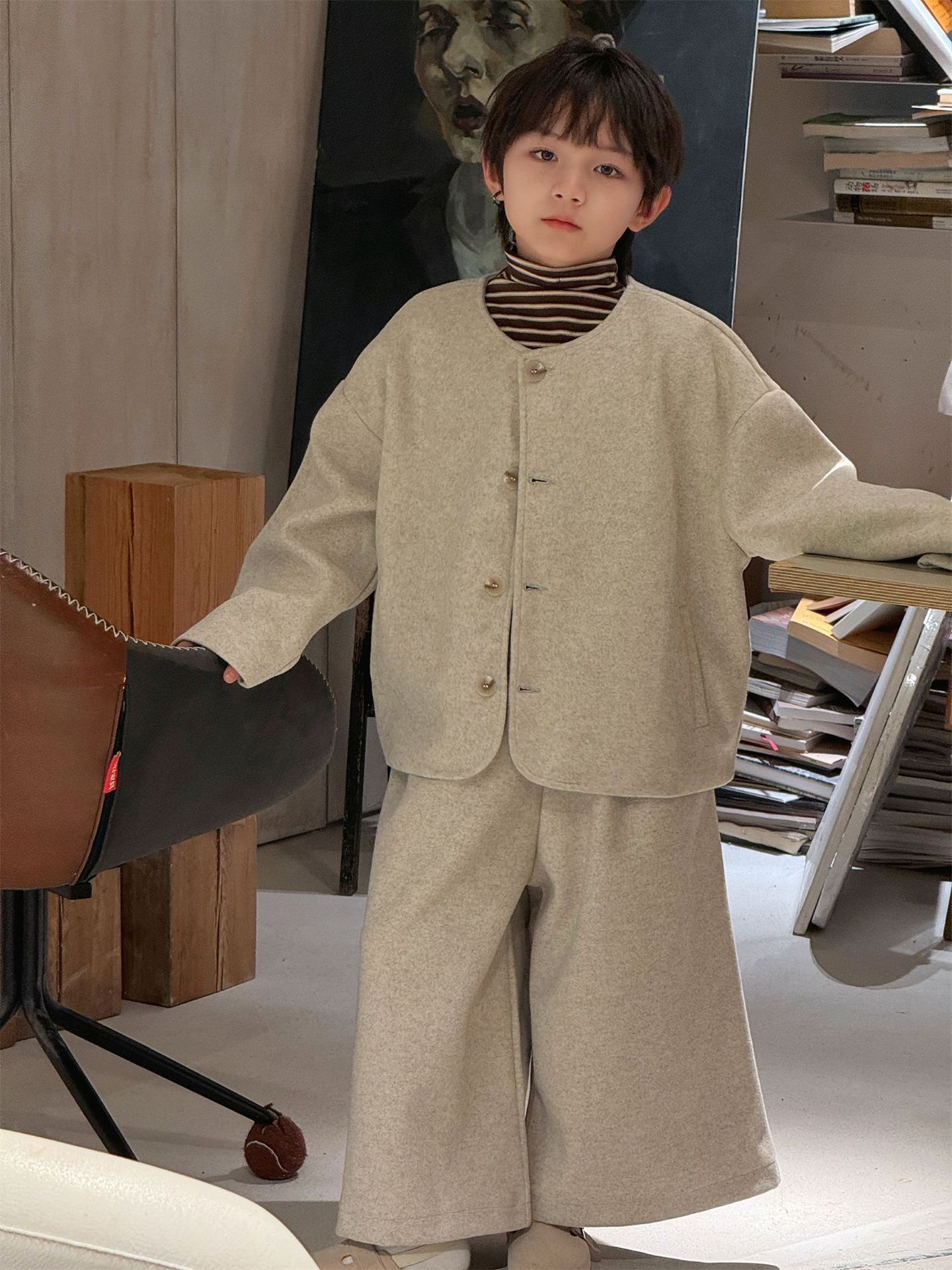 奶酪与喵高级感呢子两件套男童2024秋季韩版新款毛呢套装中大童