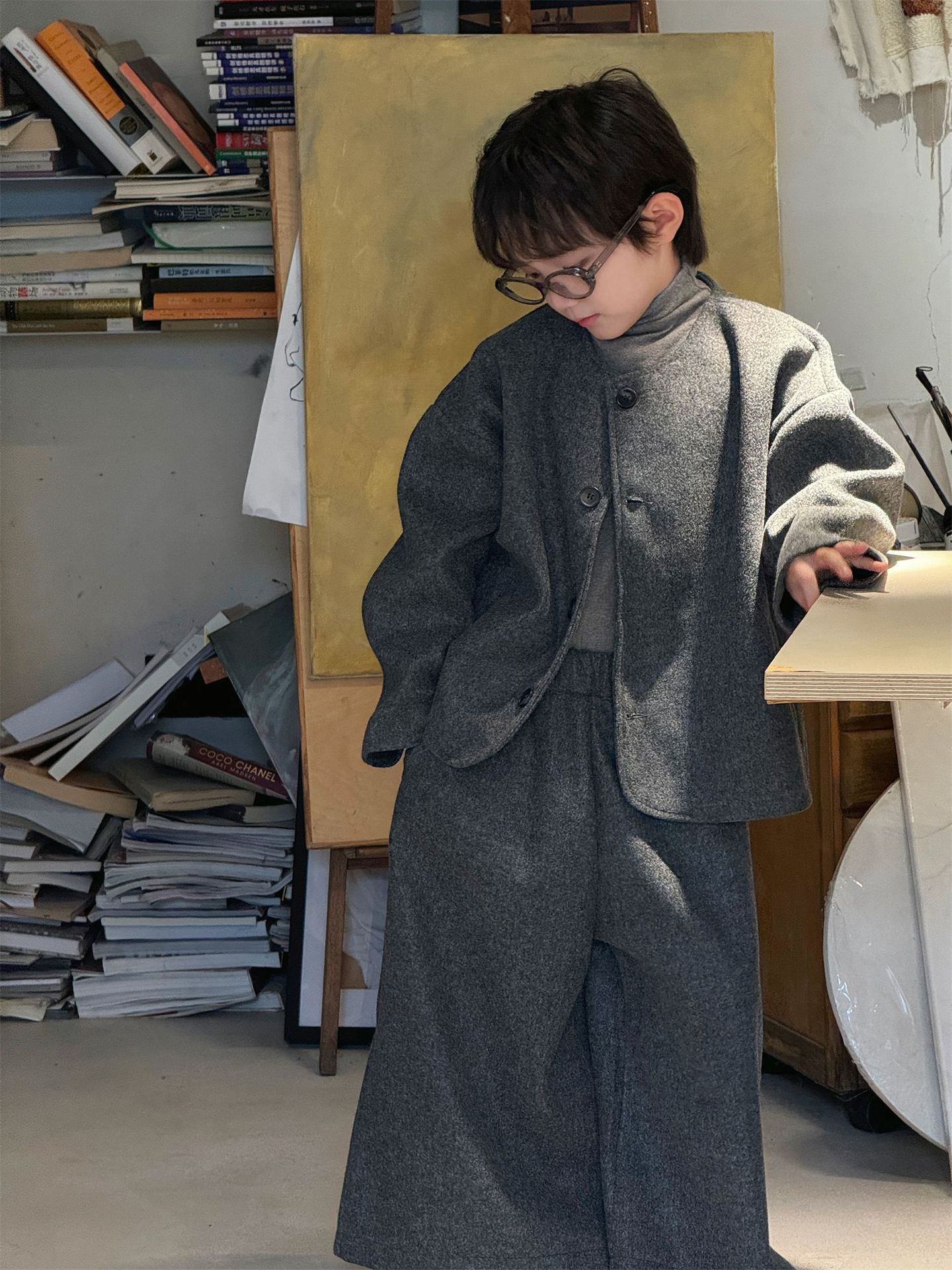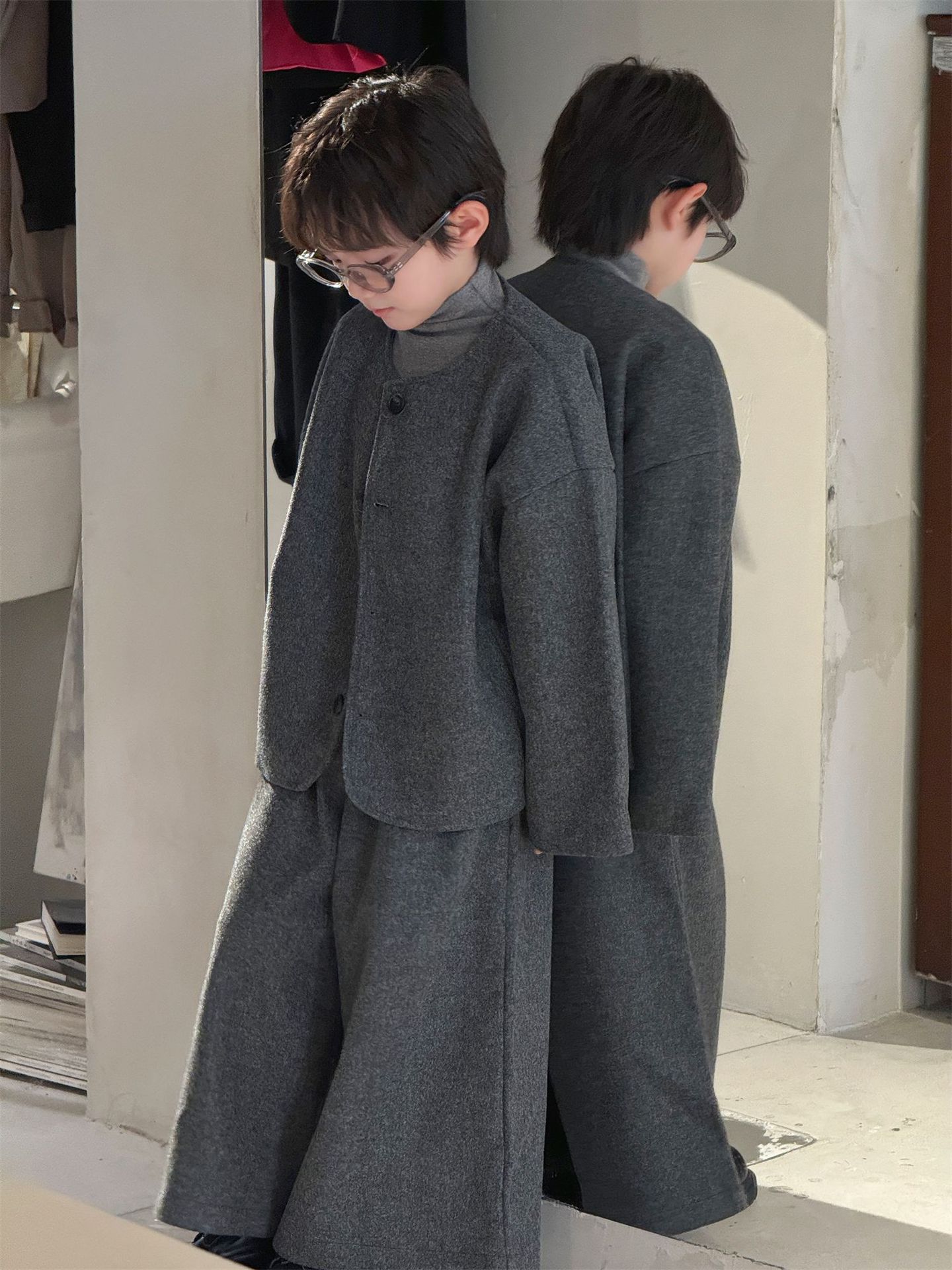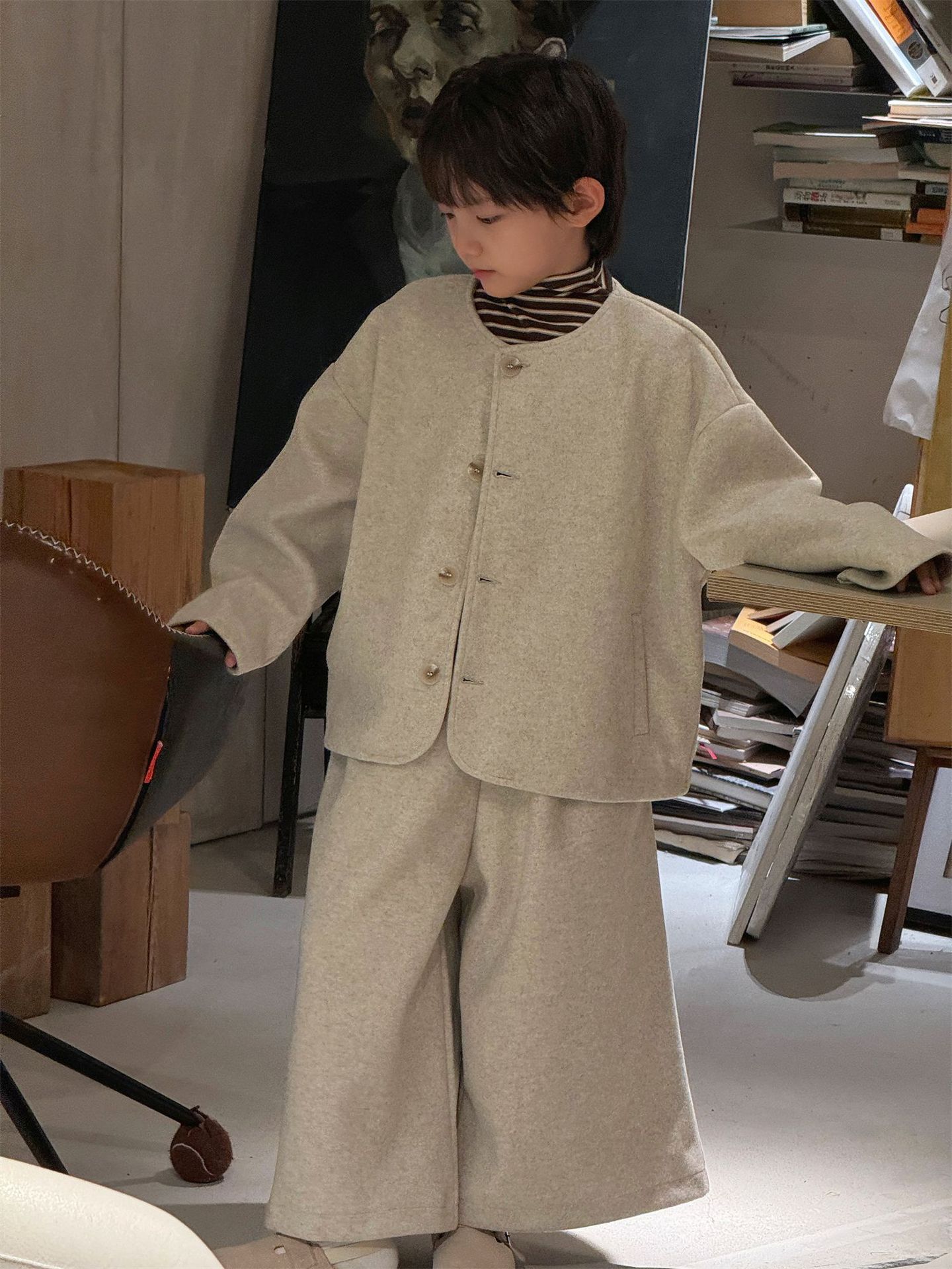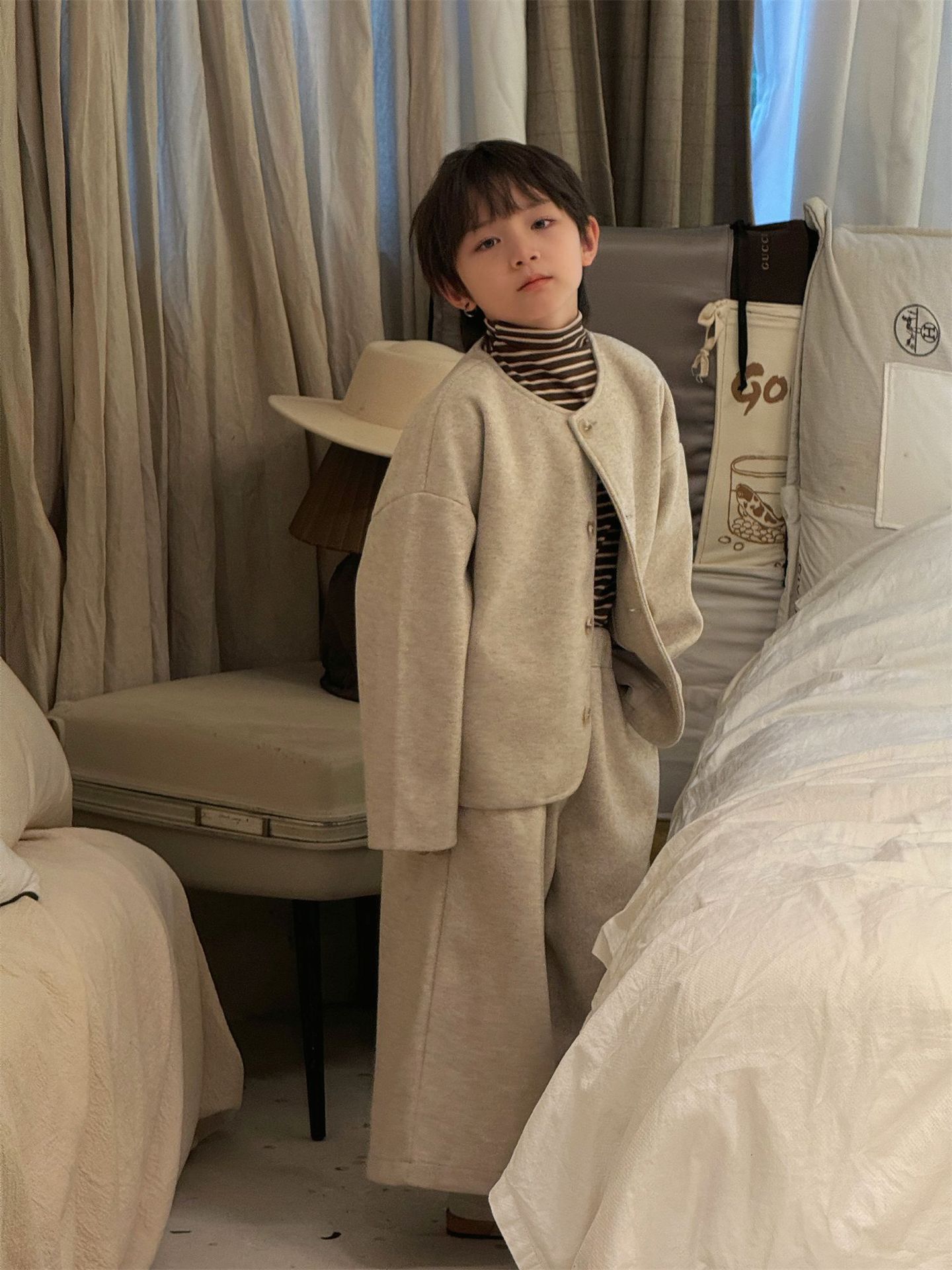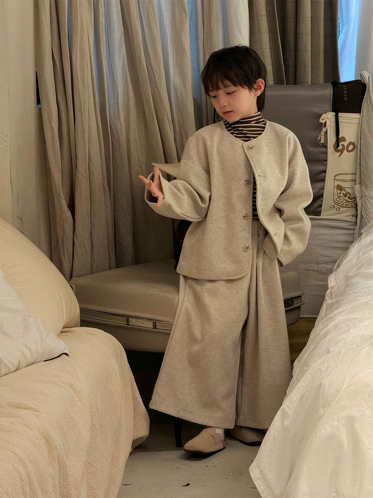 奶酪与喵高级感呢子两件套男童2024秋季韩版新款毛呢套装中大童