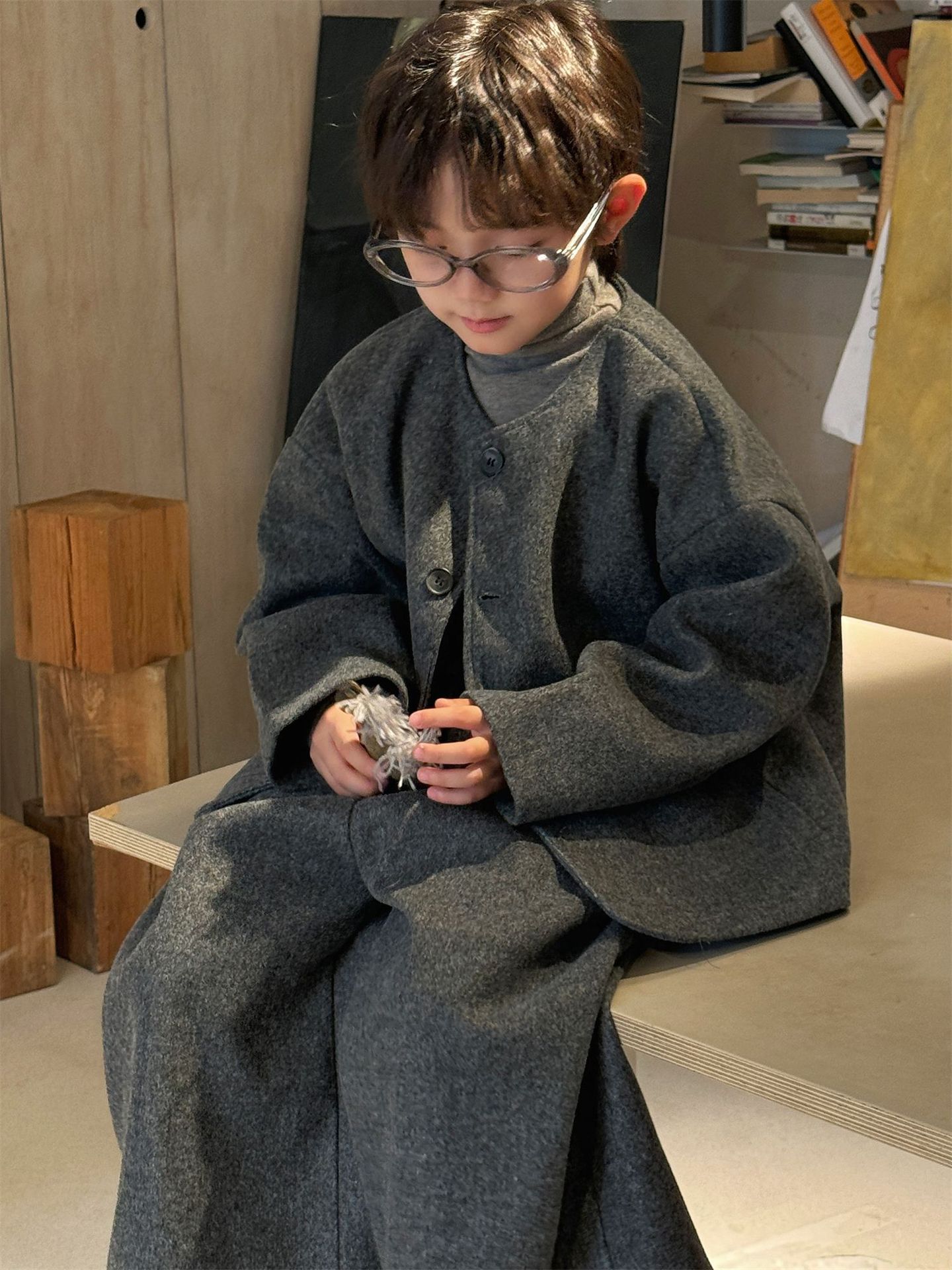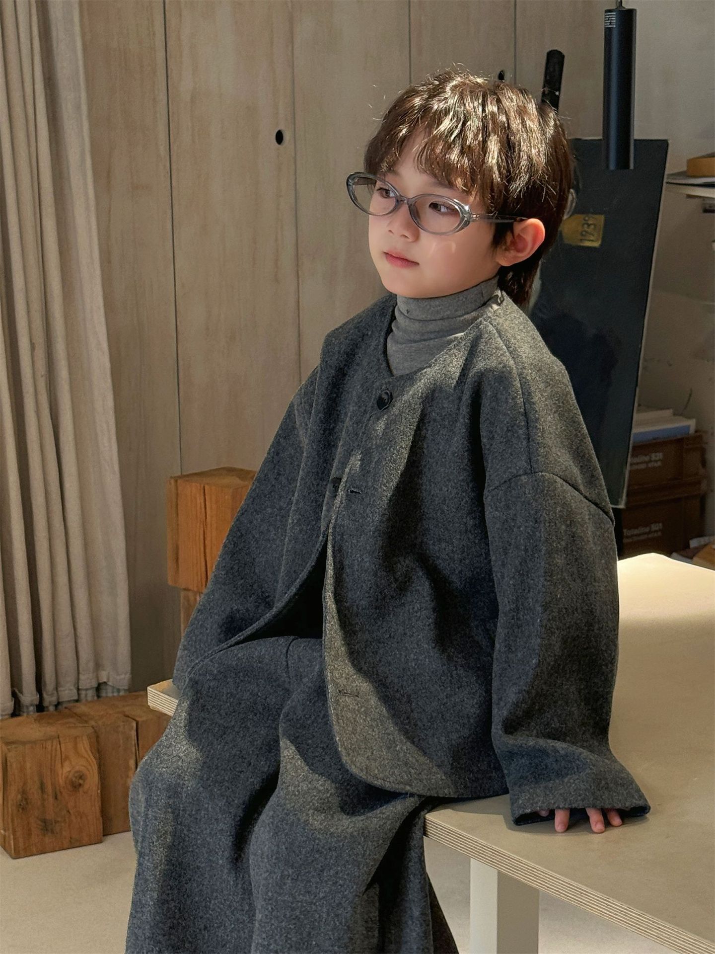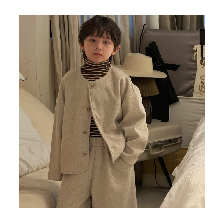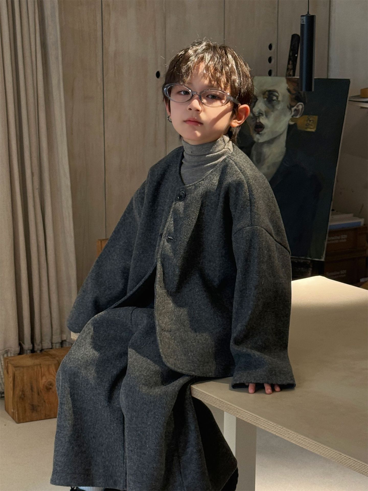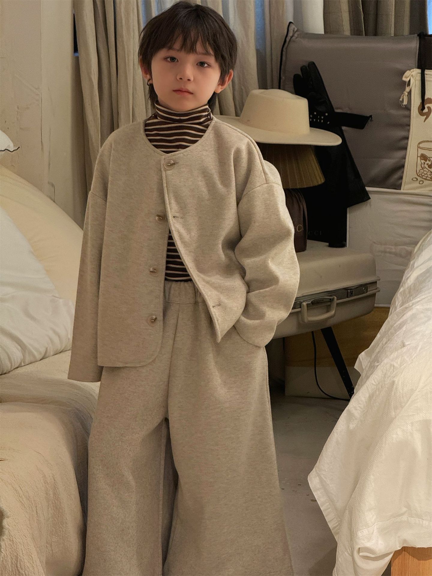 奶酪与喵高级感呢子两件套男童2024秋季韩版新款毛呢套装中大童