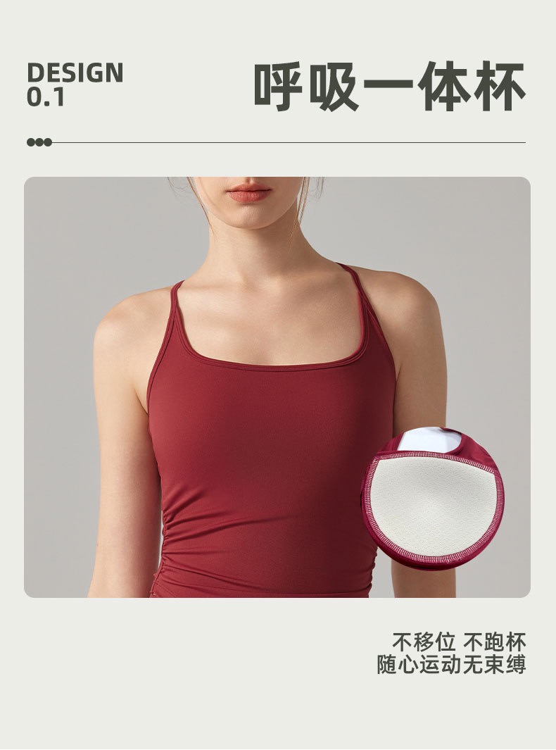 新款双交叉围裹美背瑜伽内衣女带胸垫亲肤裸感运动文胸外穿健身背心 000WX62017AD