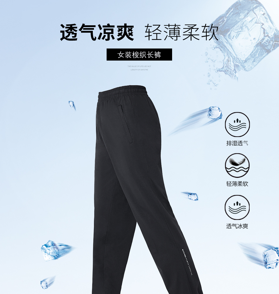 3232巴特侬(butnon)运动裤女子春夏休闲裤子梭织跑步长裤凉爽透气黑色基础款