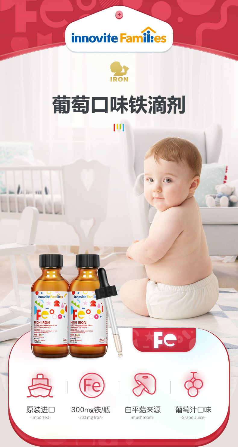 英珞维铁滴剂儿童铁剂婴儿婴幼儿铁宝宝孕妇进口营养辅食童年液体铁葡萄口味铁滴剂 60ml