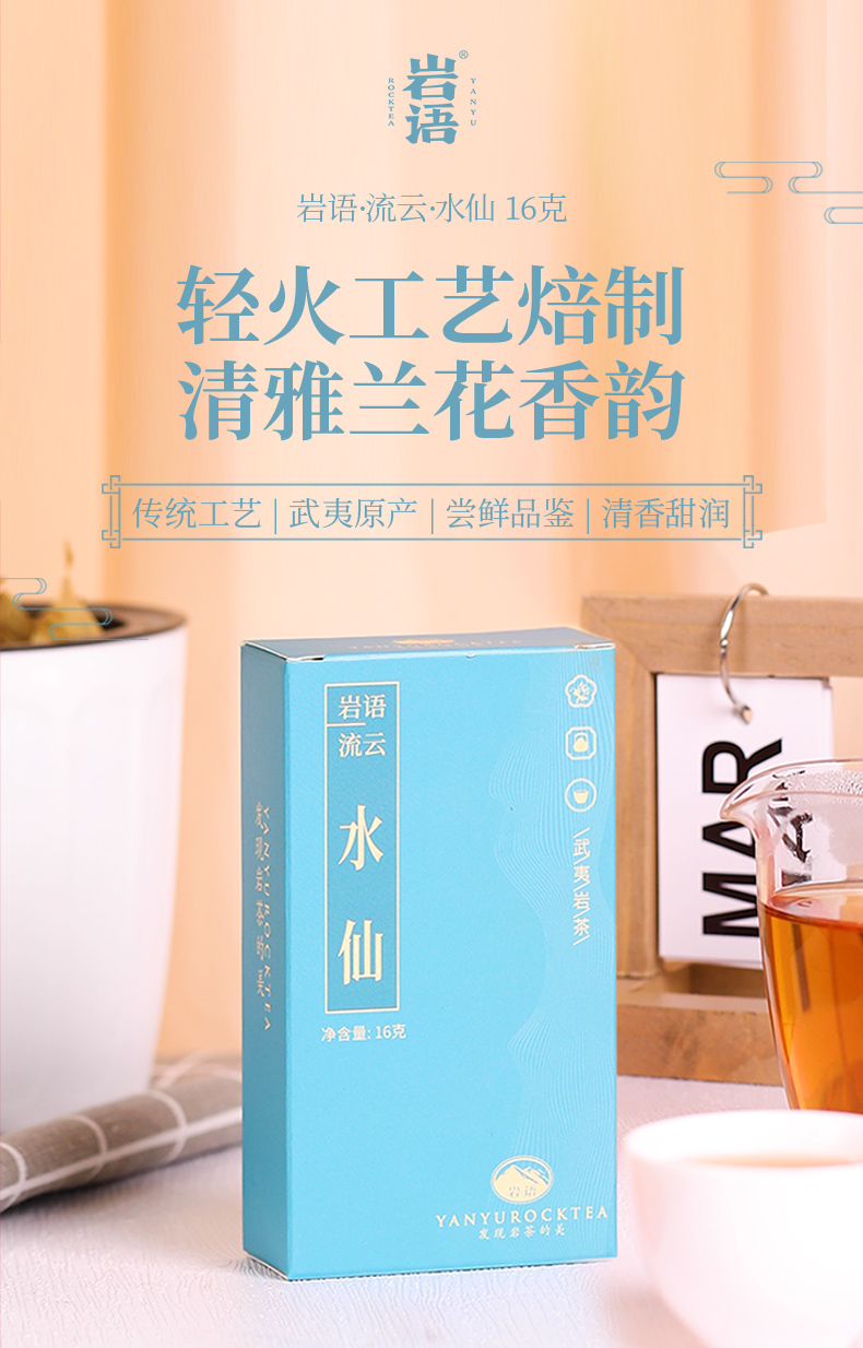 岩语 流云水仙 轻火岩茶试饮装特级武夷岩茶乌龙茶叶盒装16g