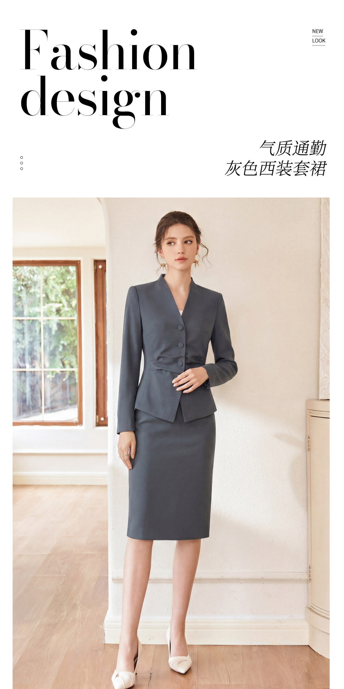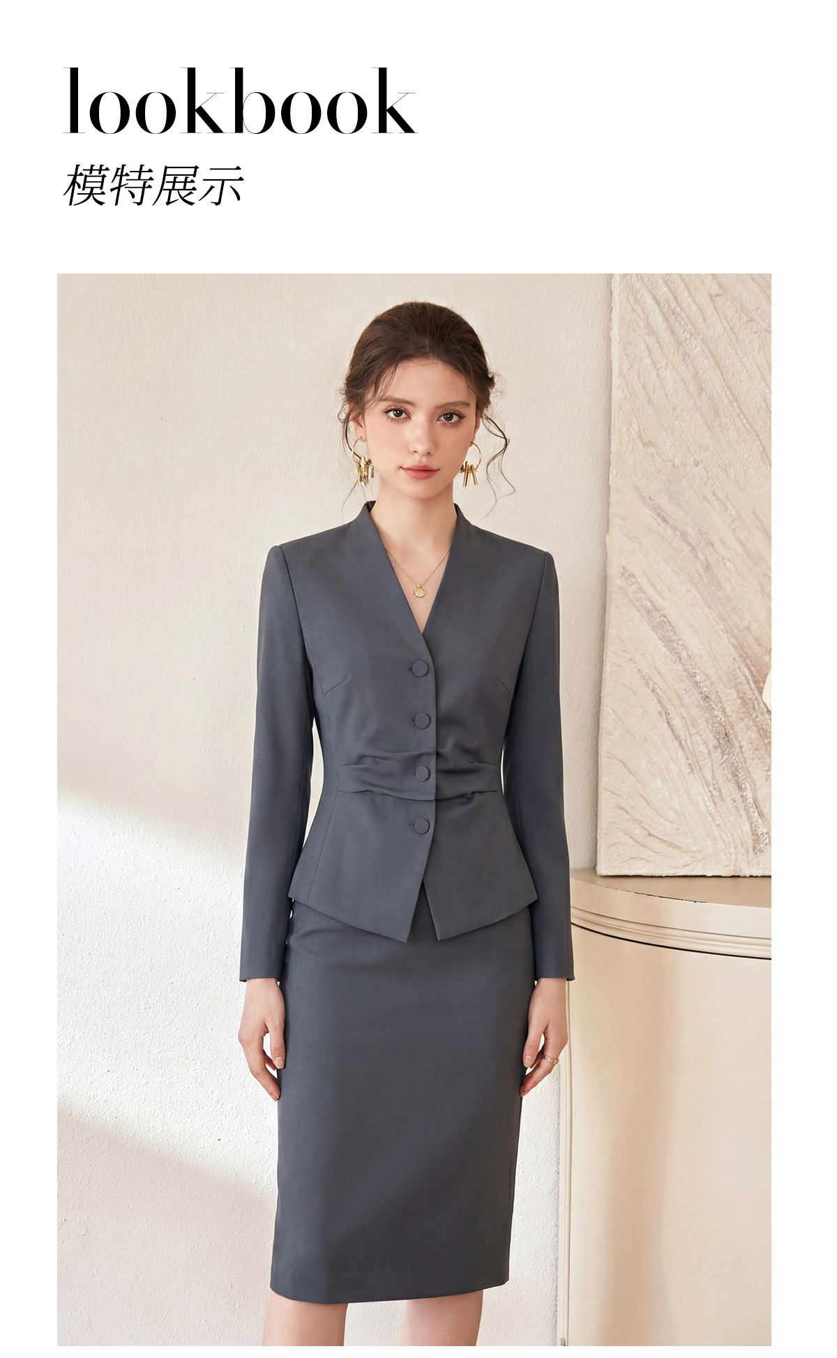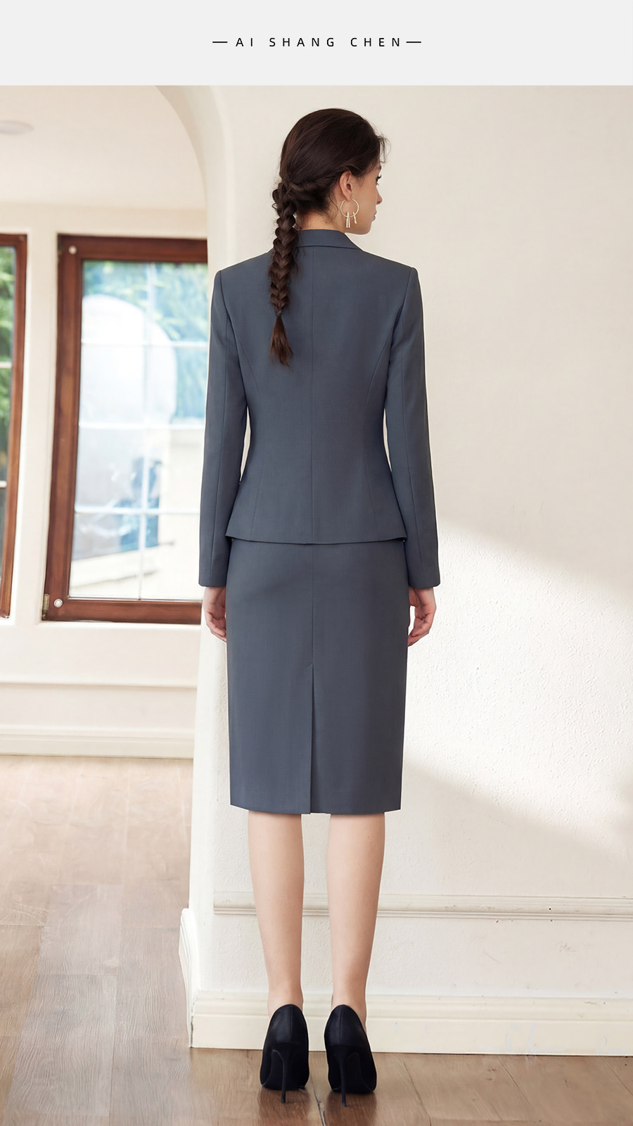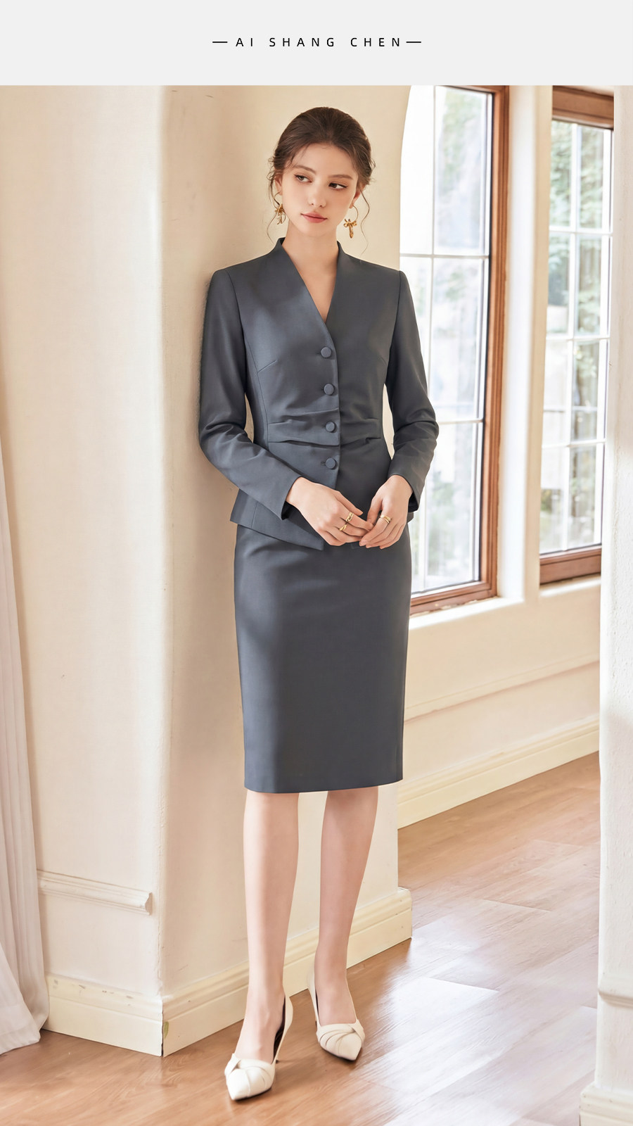 艾尚臣灰色西装套装女长袖职业装显瘦两件套OL通勤职场商务穿搭春
