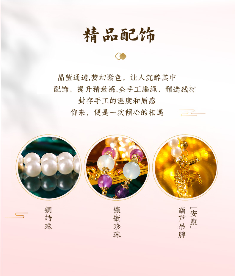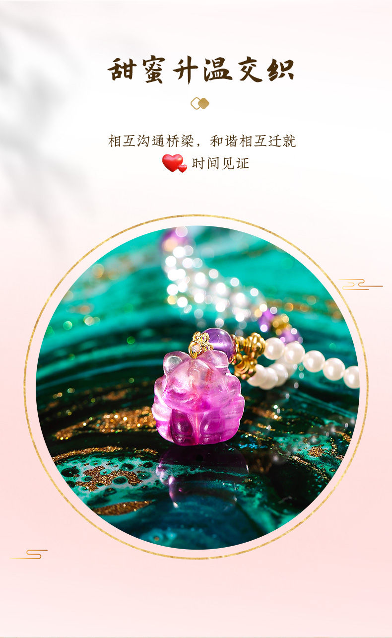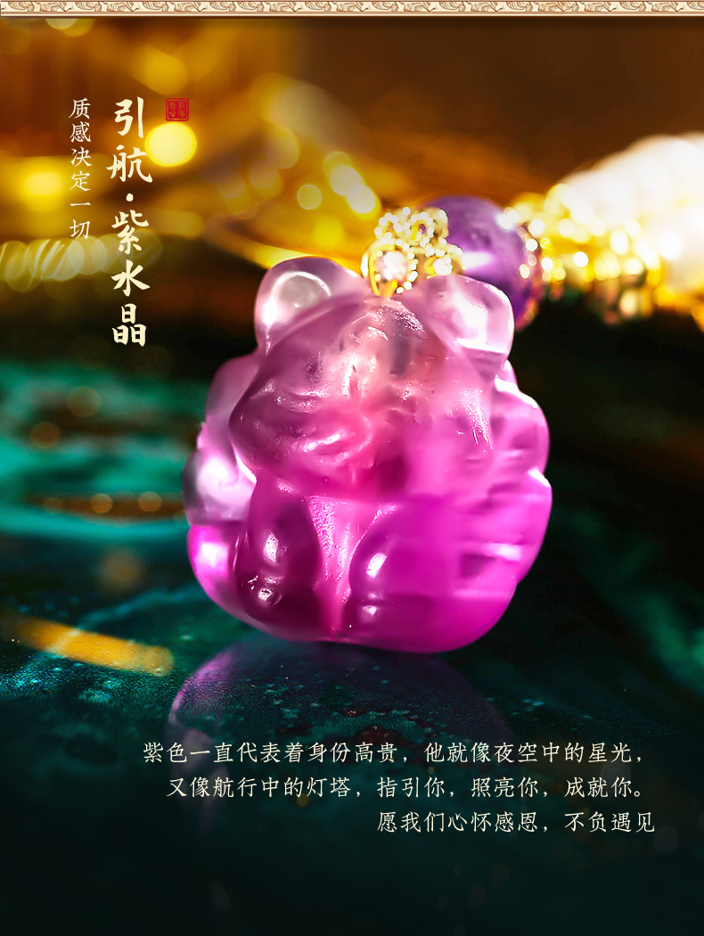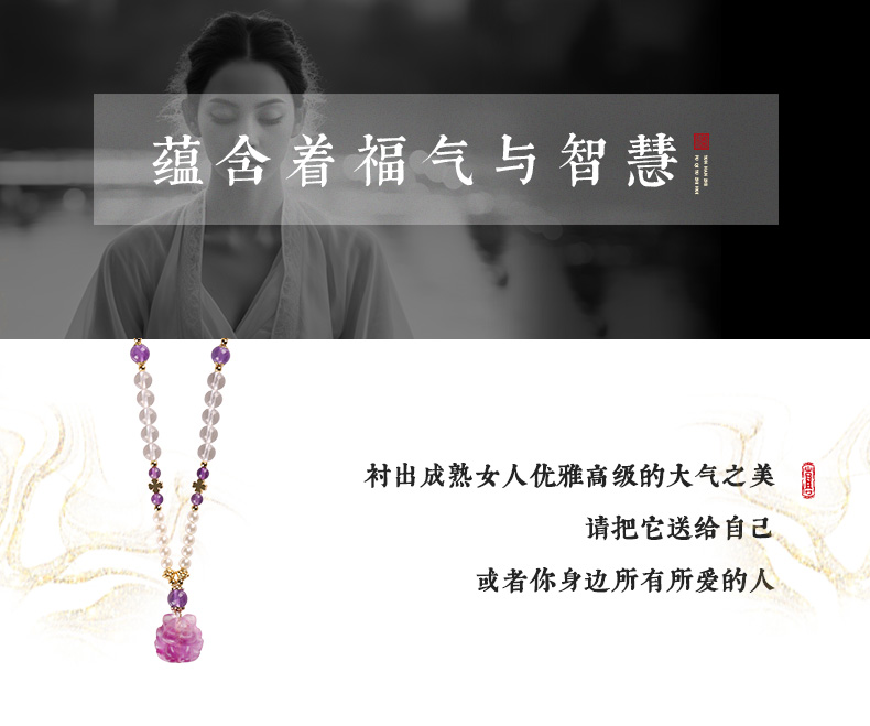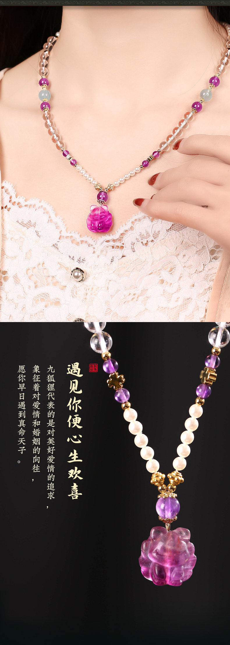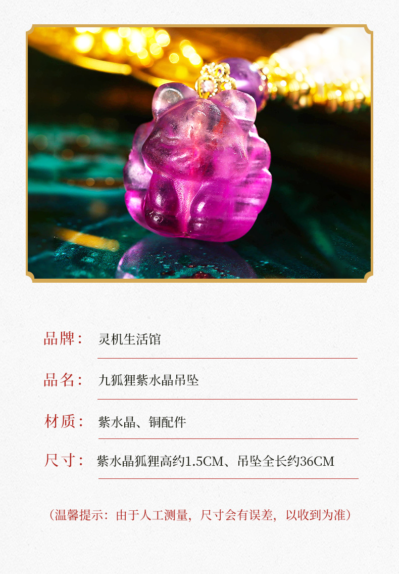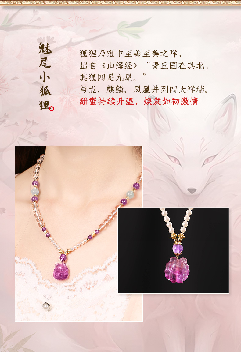 【一生相伴】紫水晶九狐狸吊坠 白水晶紫水晶珍珠手串