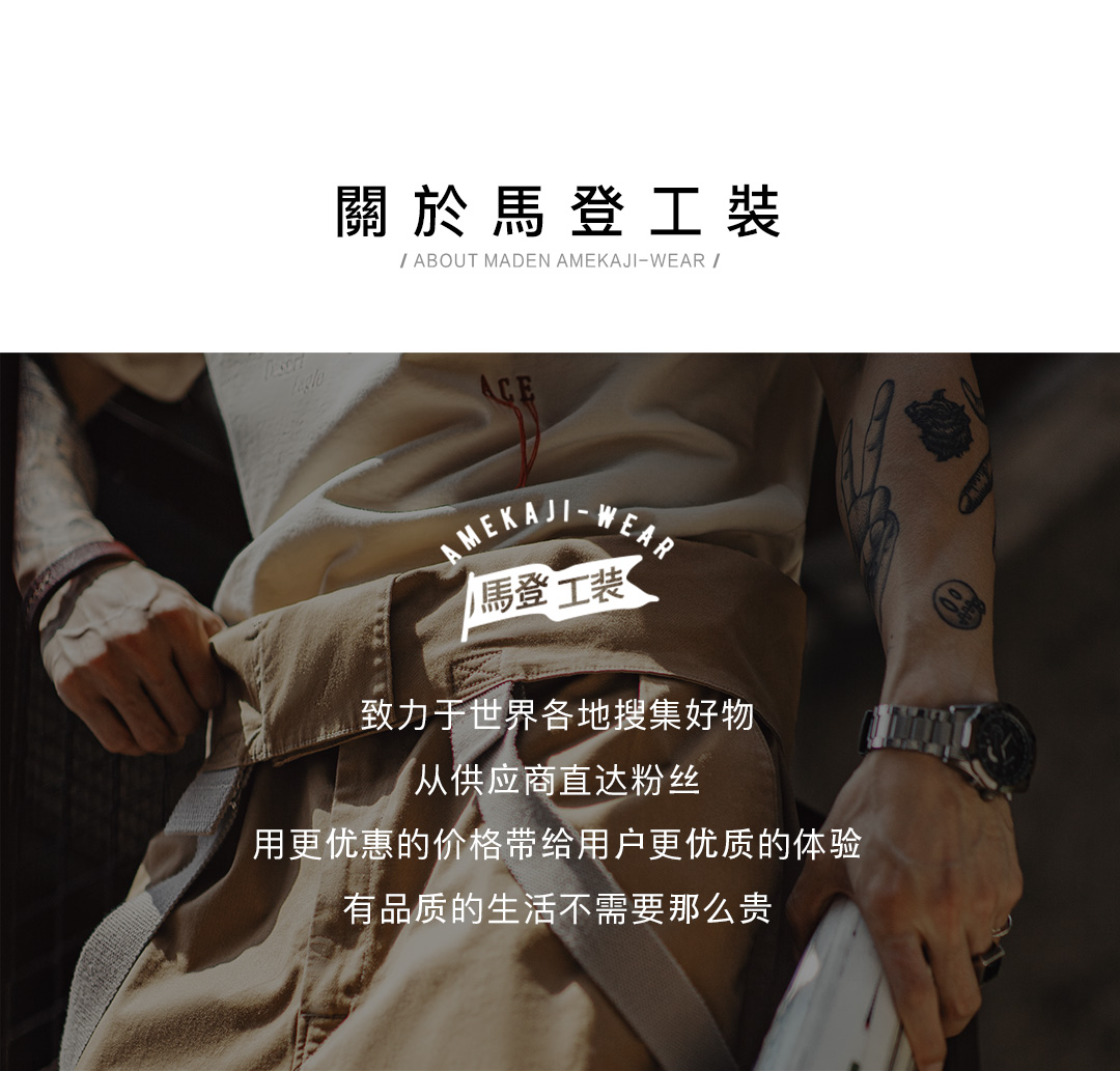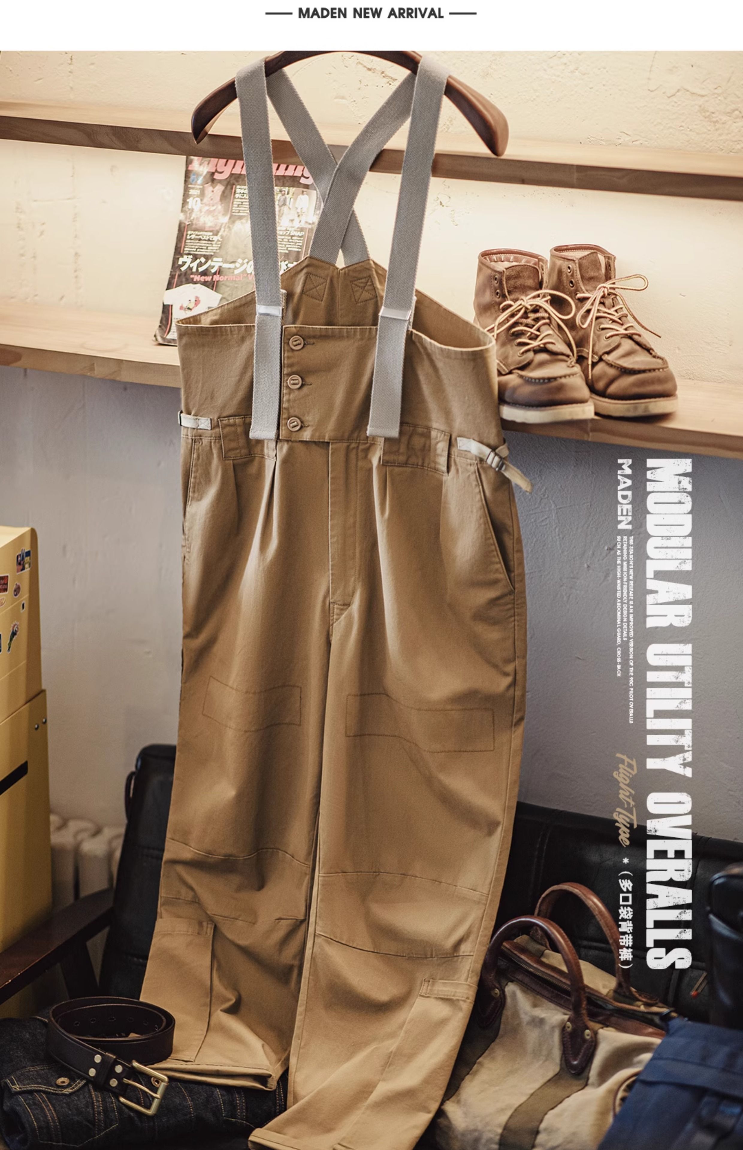 马登工装美式复古卡其重磅背带裤阿美咔叽休闲阔腿直筒吊带裤男秋