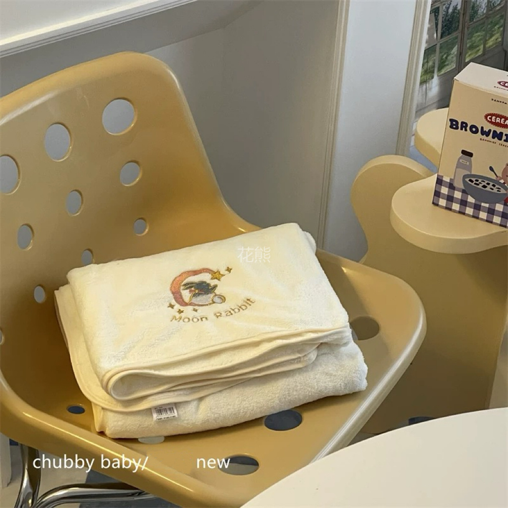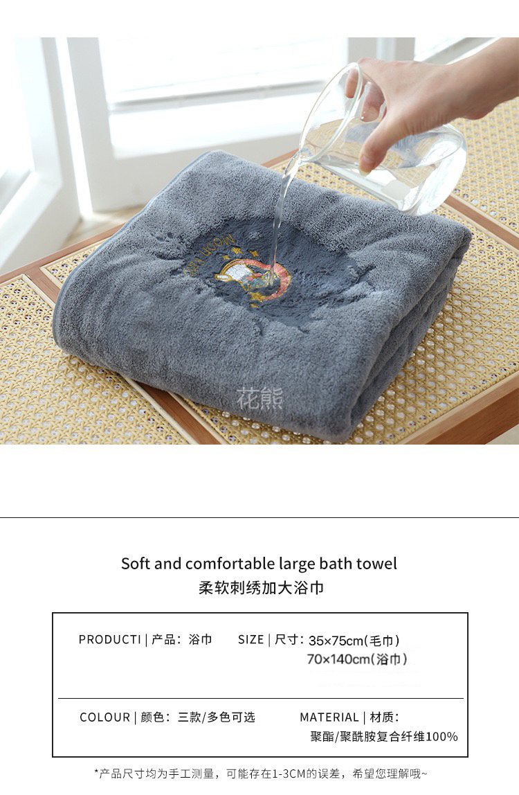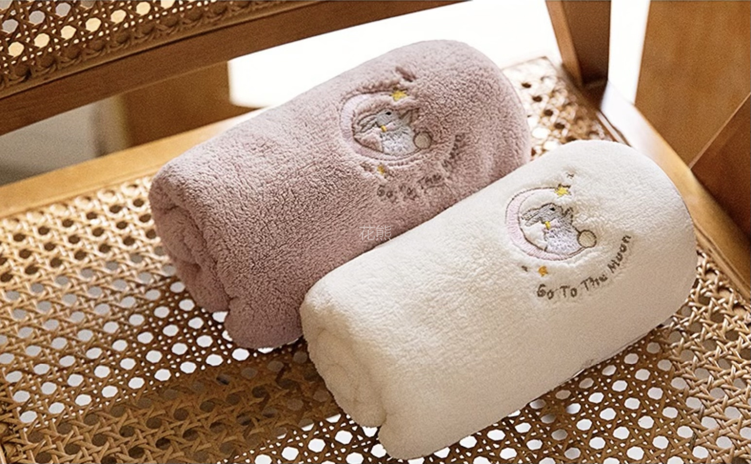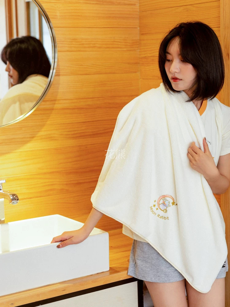 下单立送同款毛巾【月亮兔刺绣浴巾+毛巾套装】加大加宽,吸水性强,柔软蓬松,舒适度高,三个颜色,送同款毛巾,亲肤柔软,吸湿速干