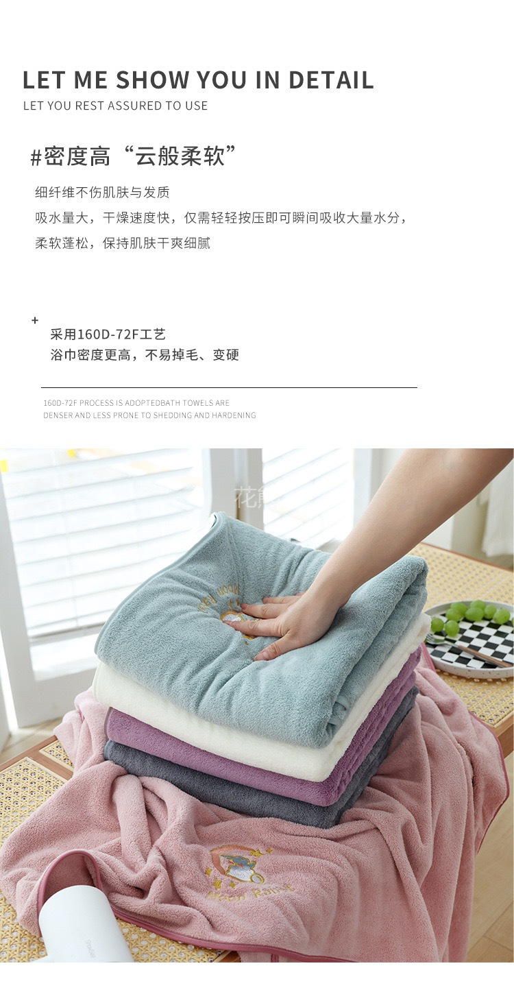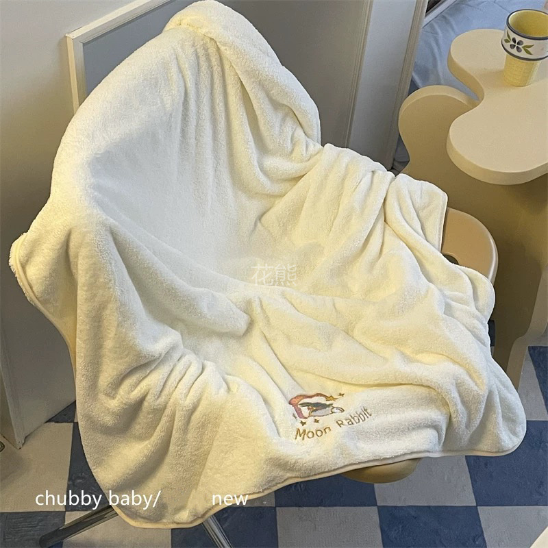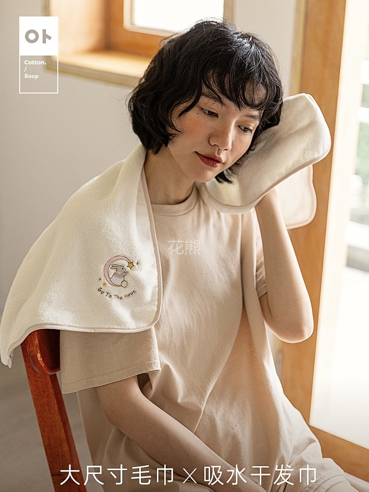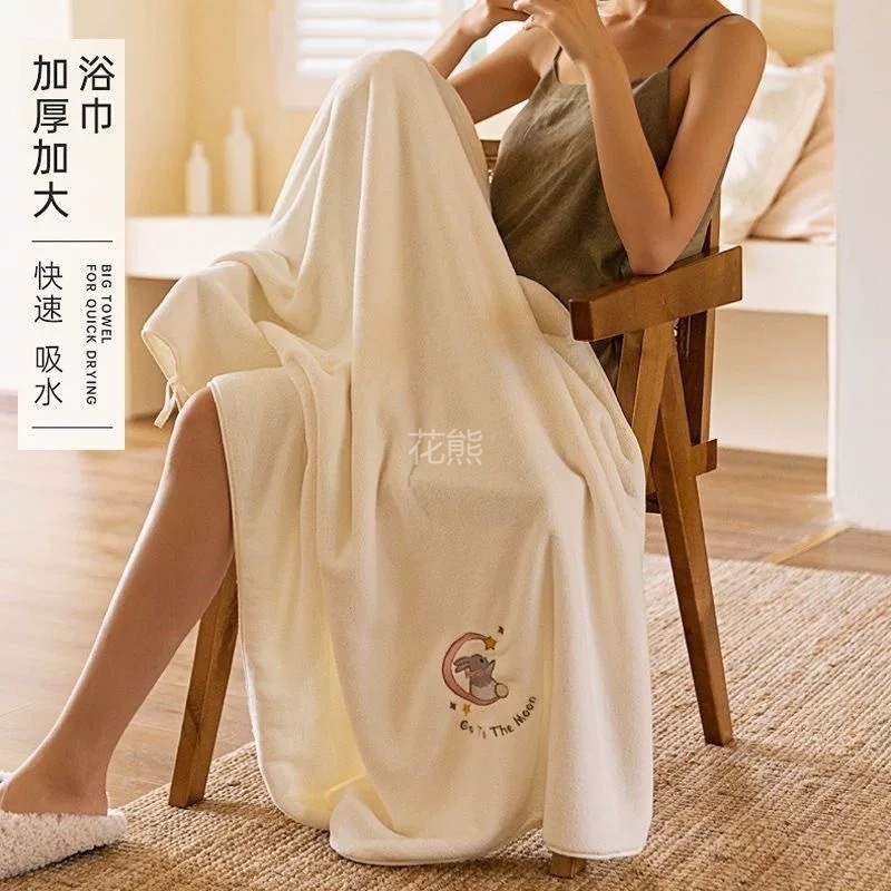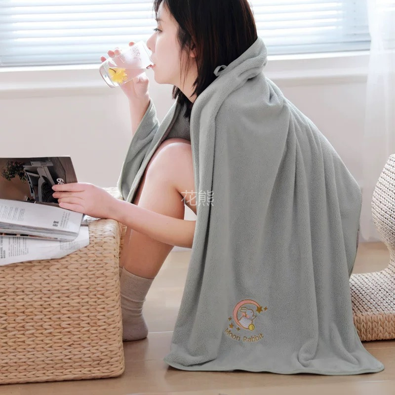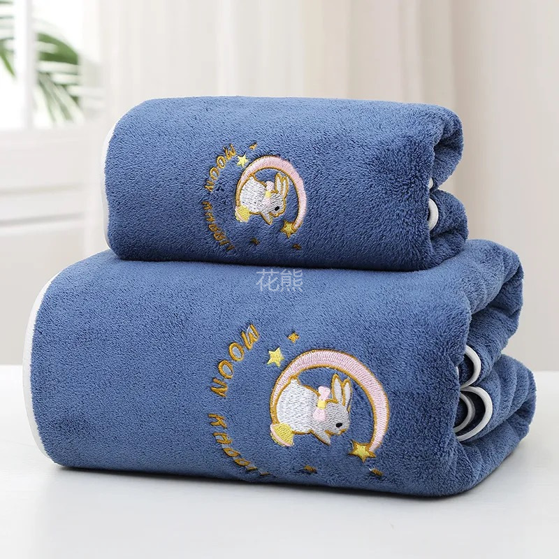 下单立送同款毛巾【月亮兔刺绣浴巾+毛巾套装】加大加宽,吸水性强,柔软蓬松,舒适度高,三个颜色,送同款毛巾,亲肤柔软,吸湿速干