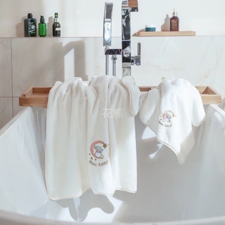【产品名称】:月月亮兔刺绣浴巾+毛巾两件套