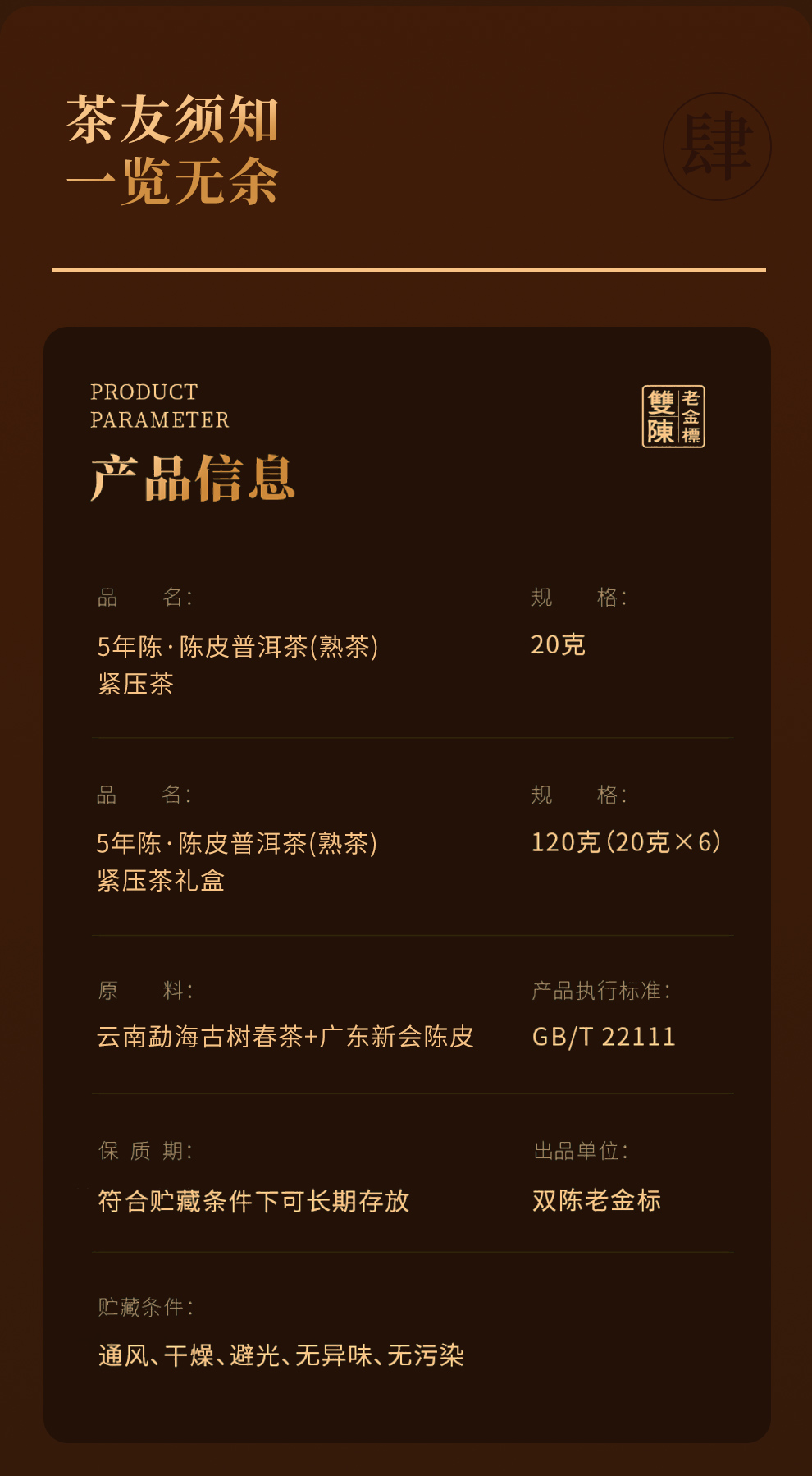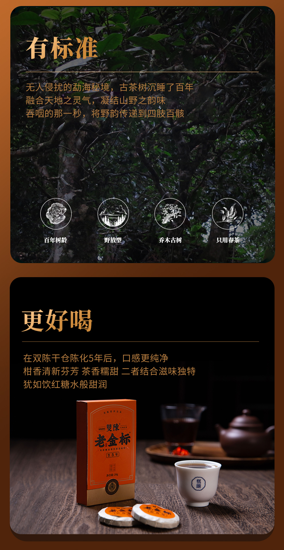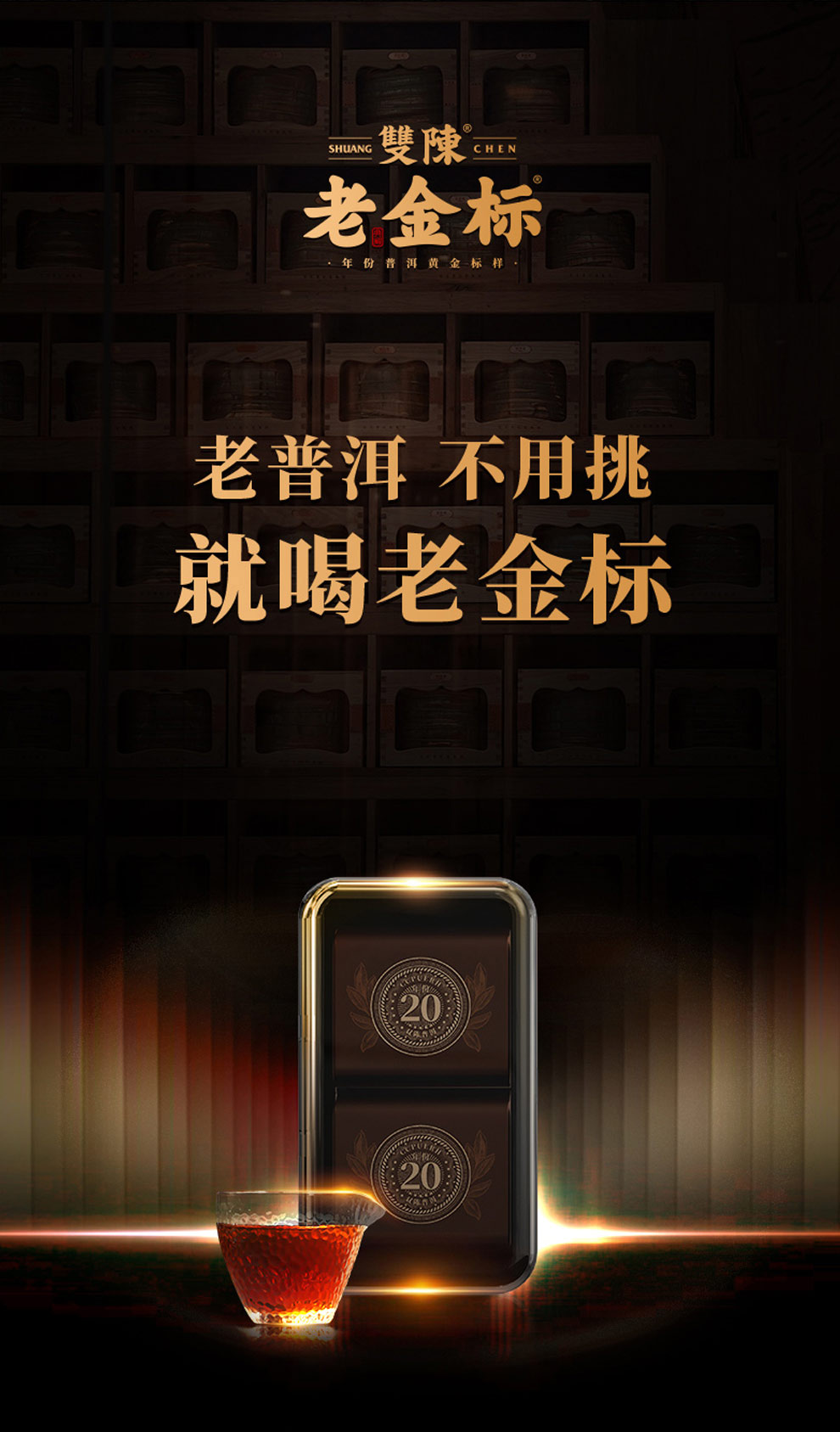 双陈老金标20年陈20g/盒年份普洱生茶入口如桃胶燕窝羹般细腻顺滑生活的健康饮品120g/盒送礼心意足