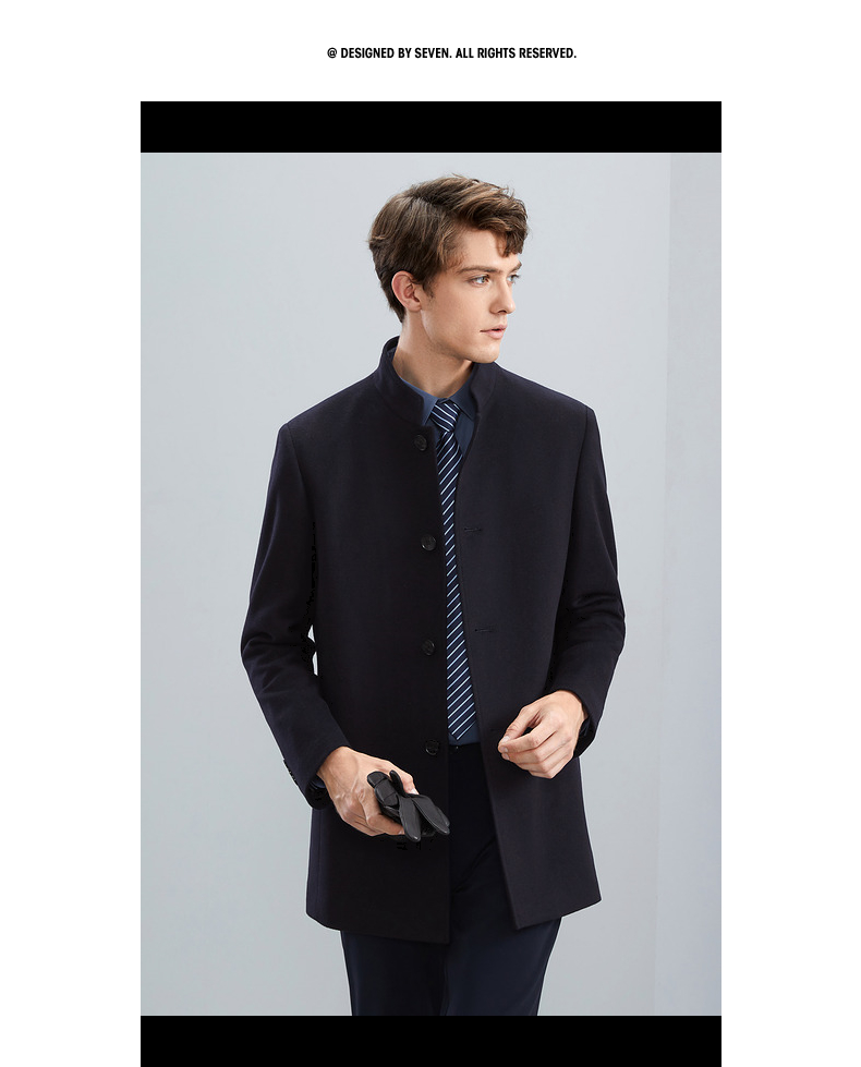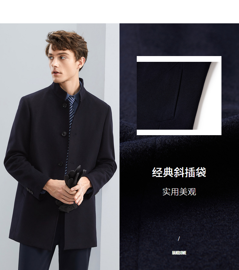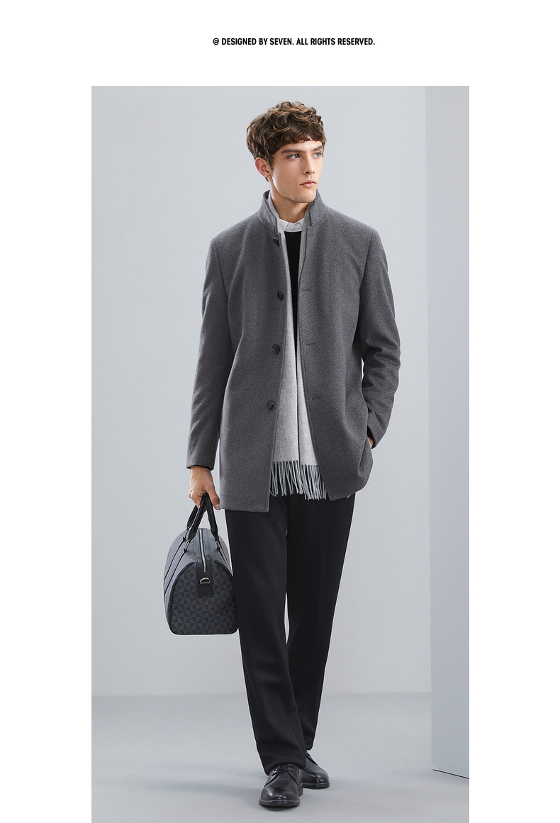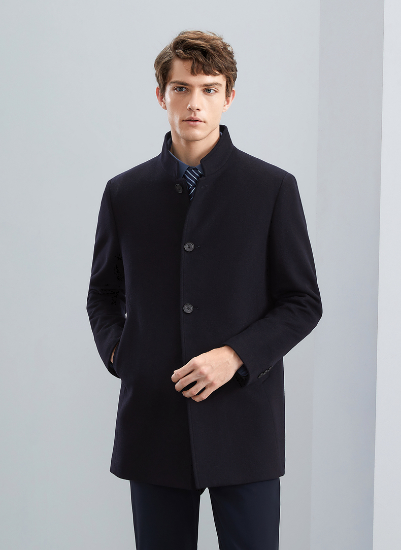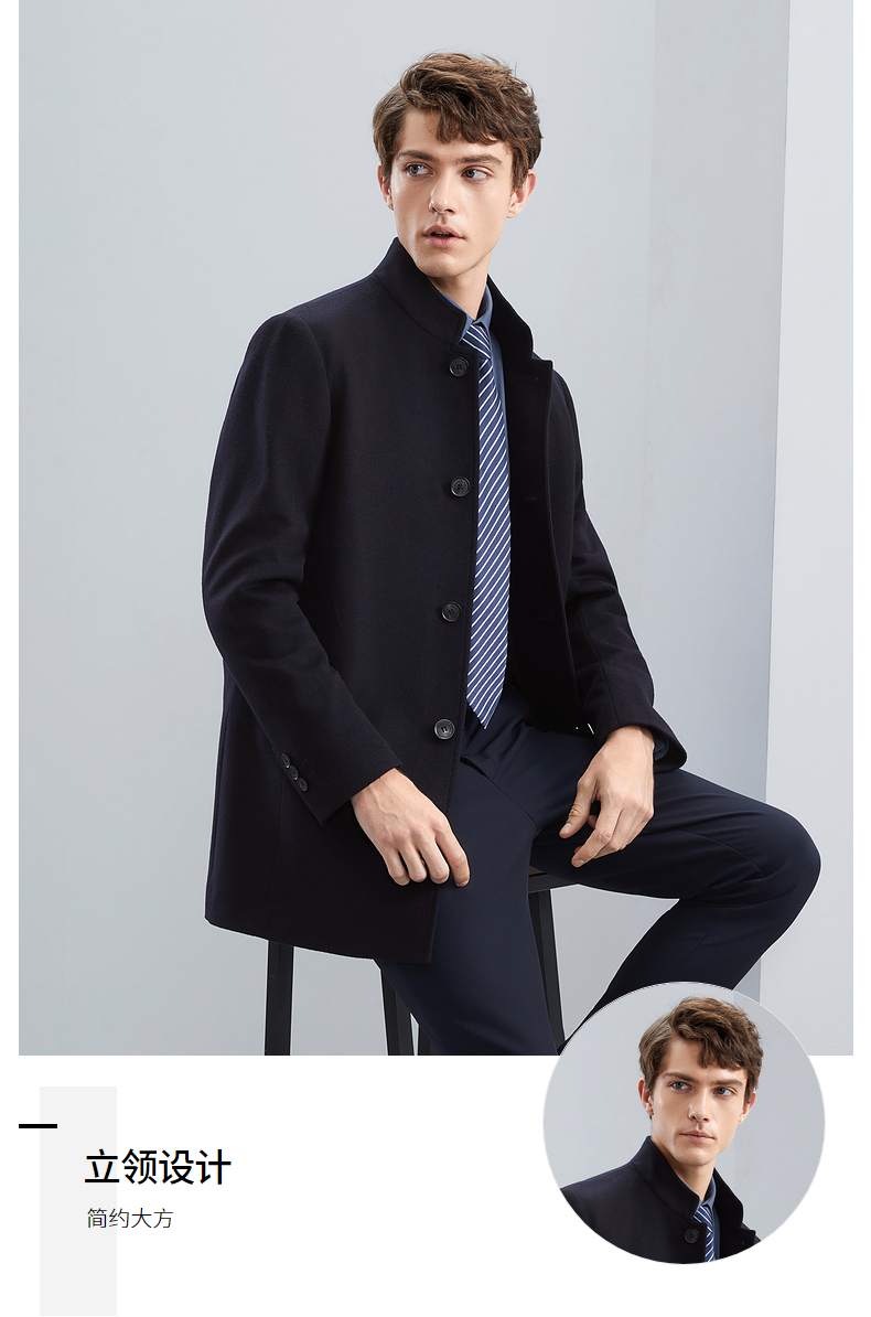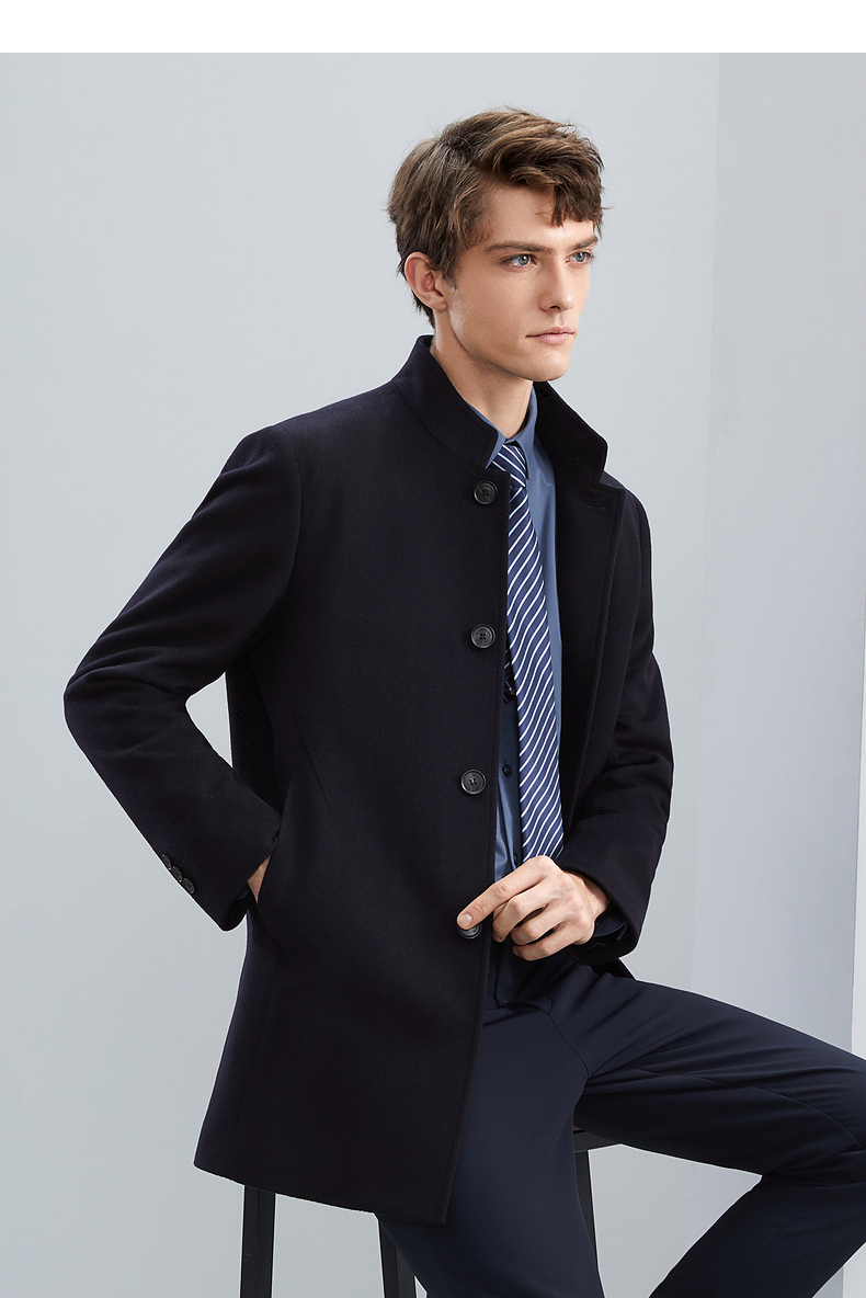 【含羊毛】柒牌男士毛呢大衣秋冬新款商务休闲中长款保暖立领外套 125D70230