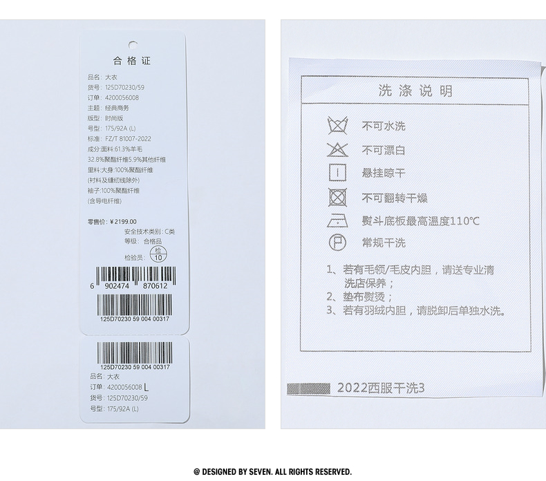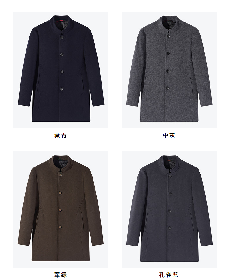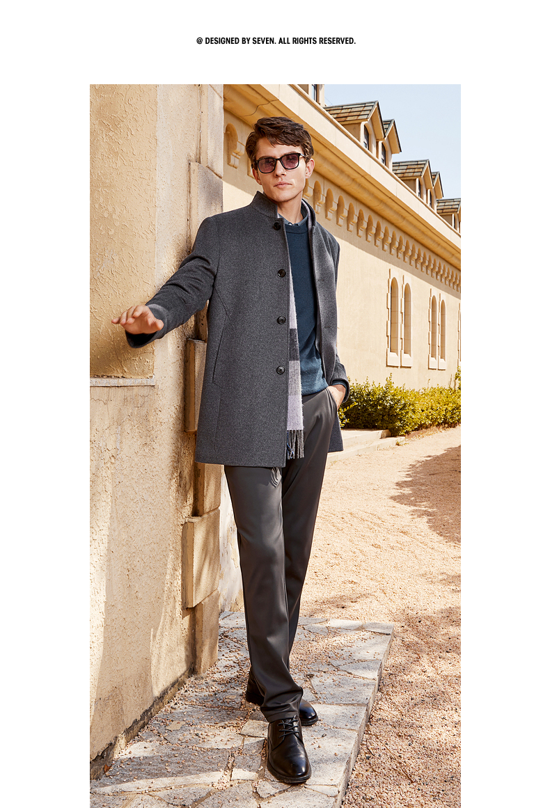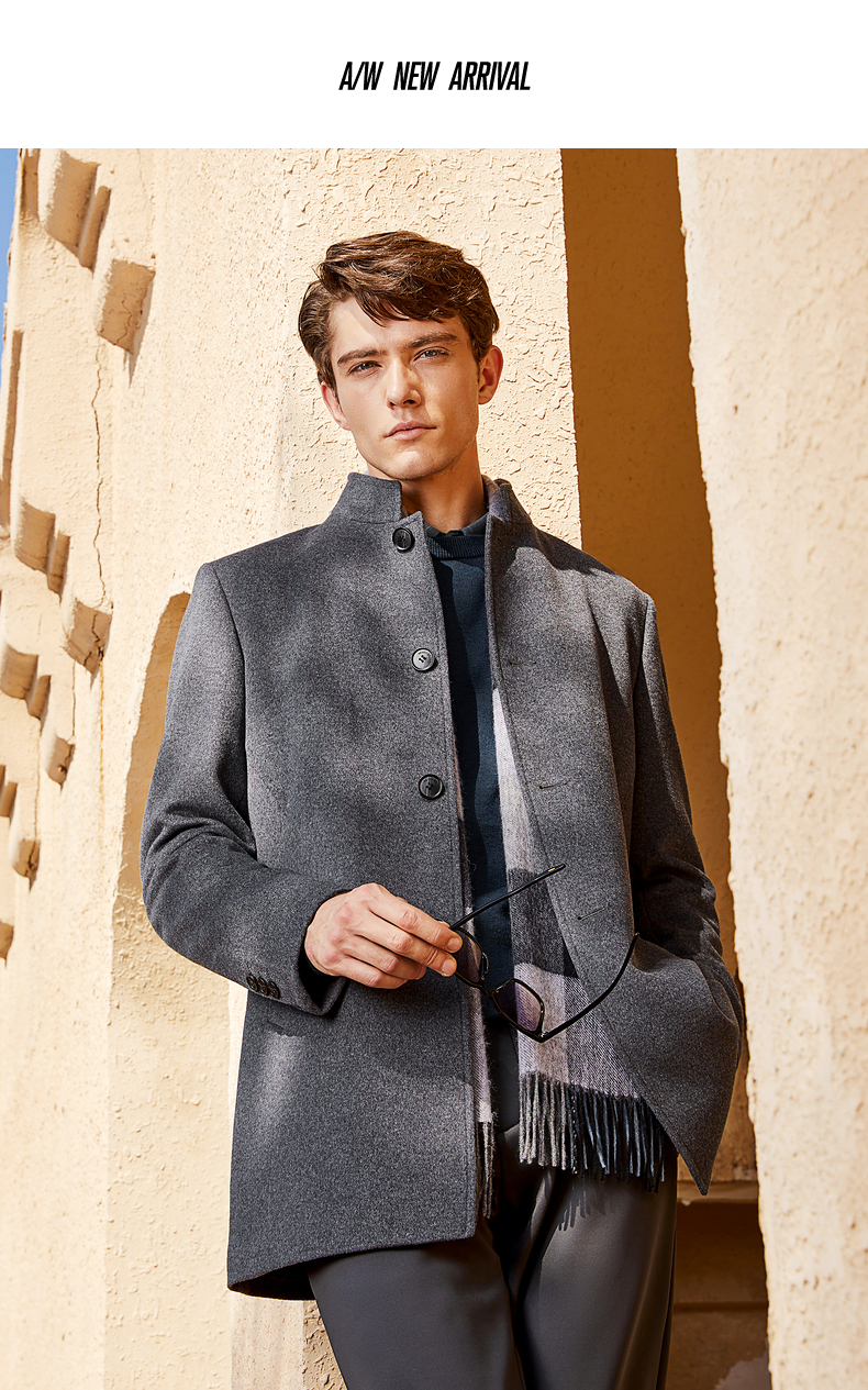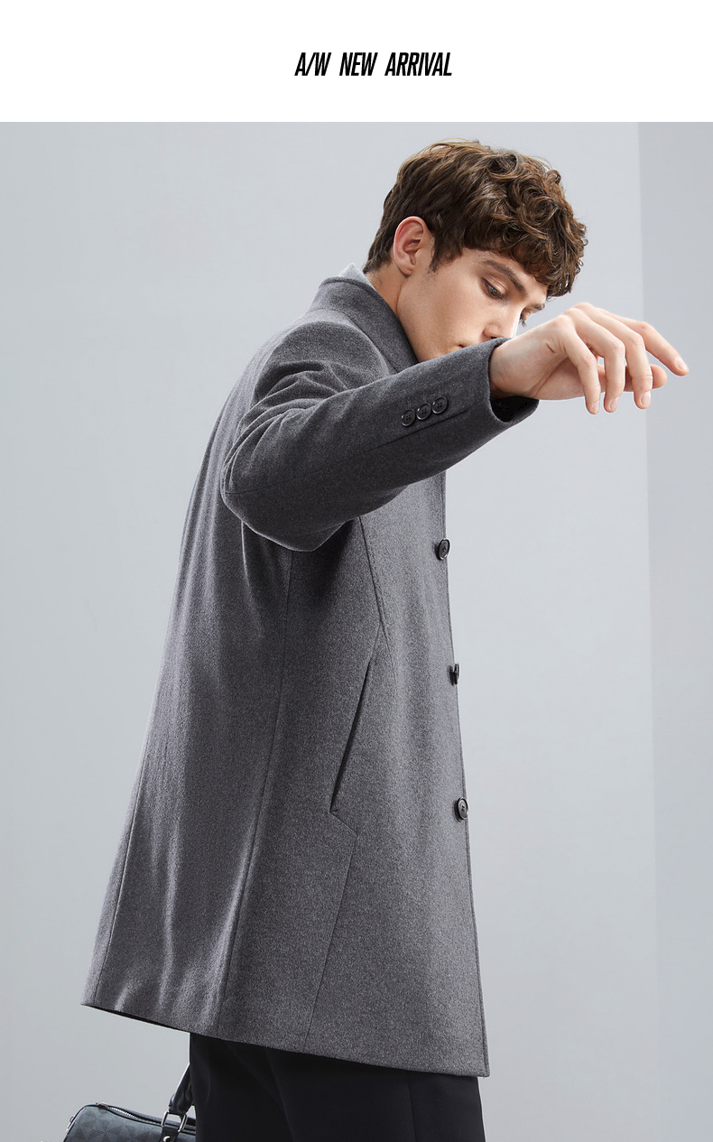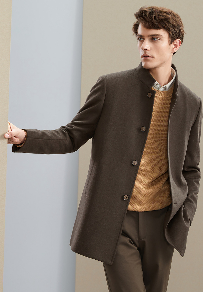 【含羊毛】柒牌男士毛呢大衣秋冬新款商务休闲中长款保暖立领外套 125D70230