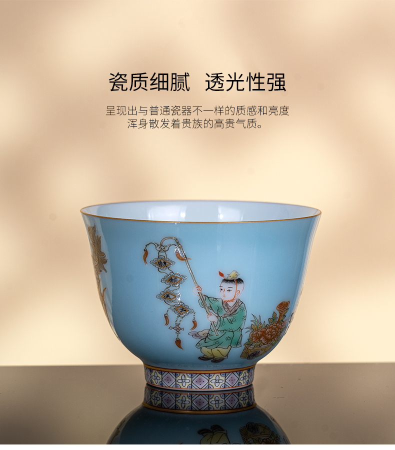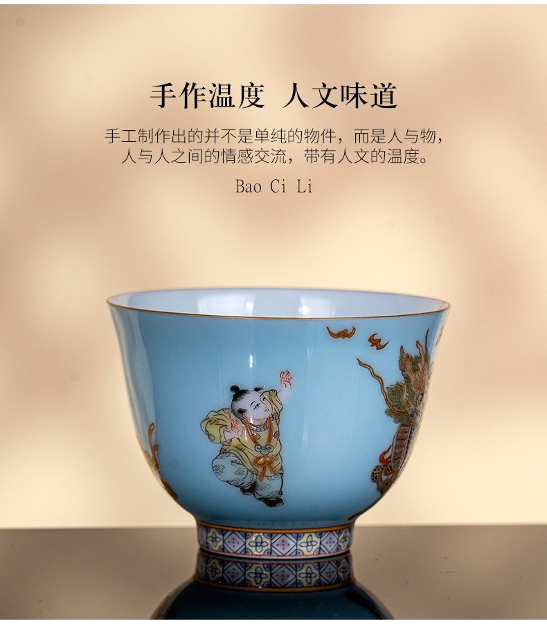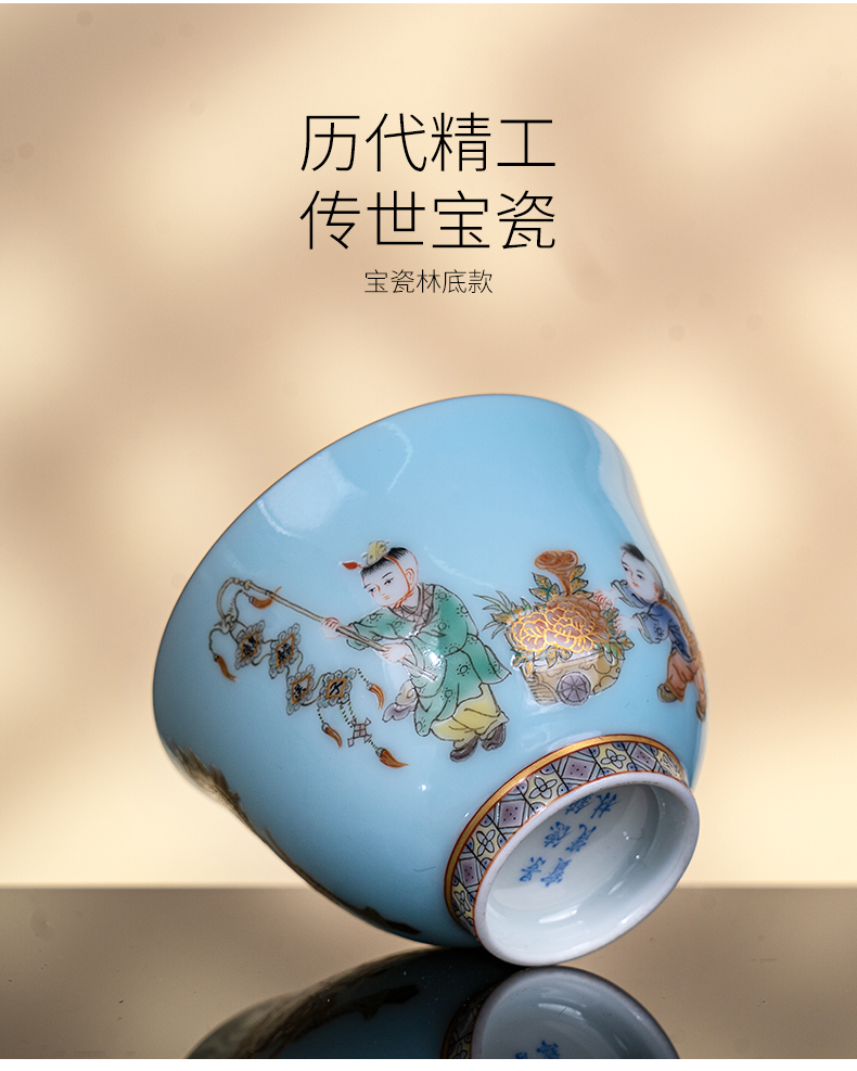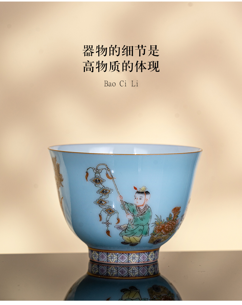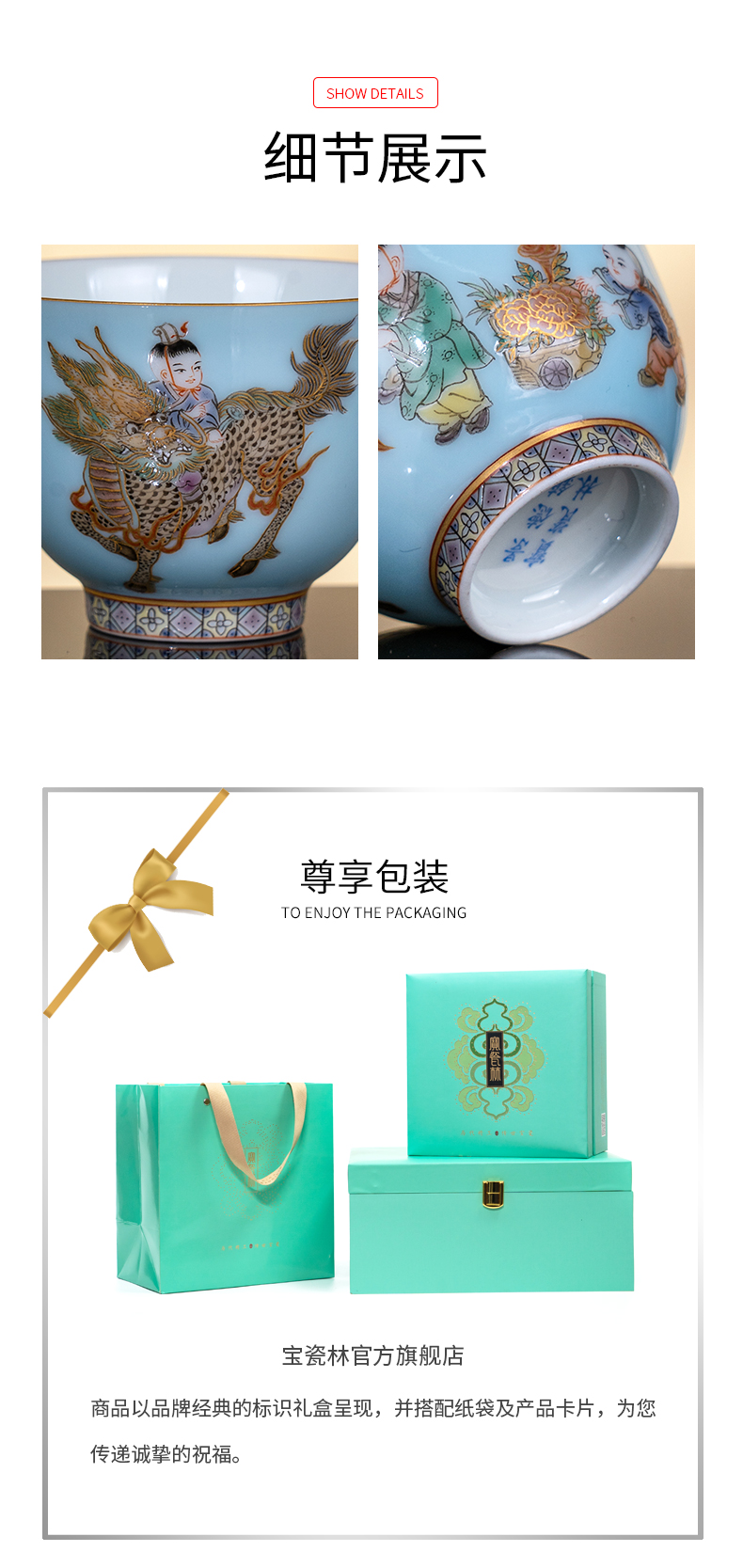 湖水蓝地古彩描金麒麟送子杯 商品图4