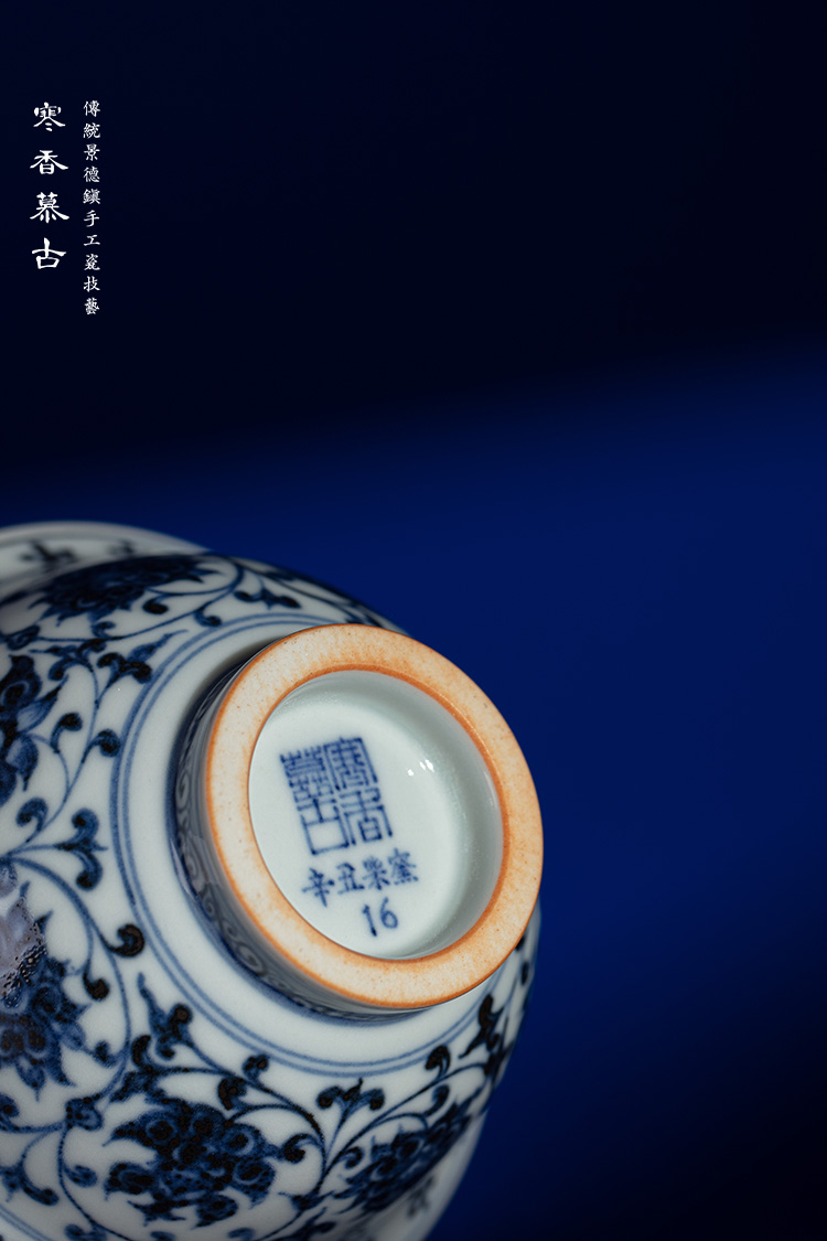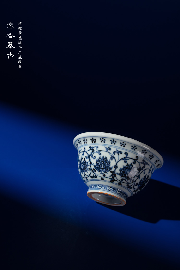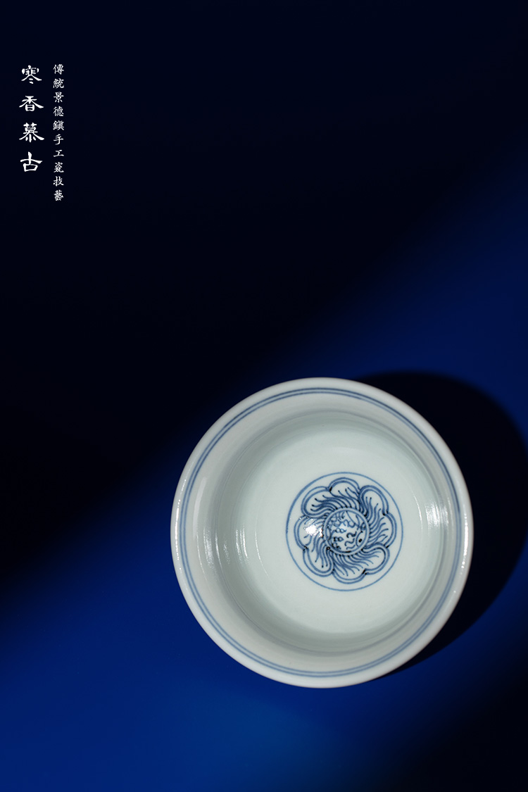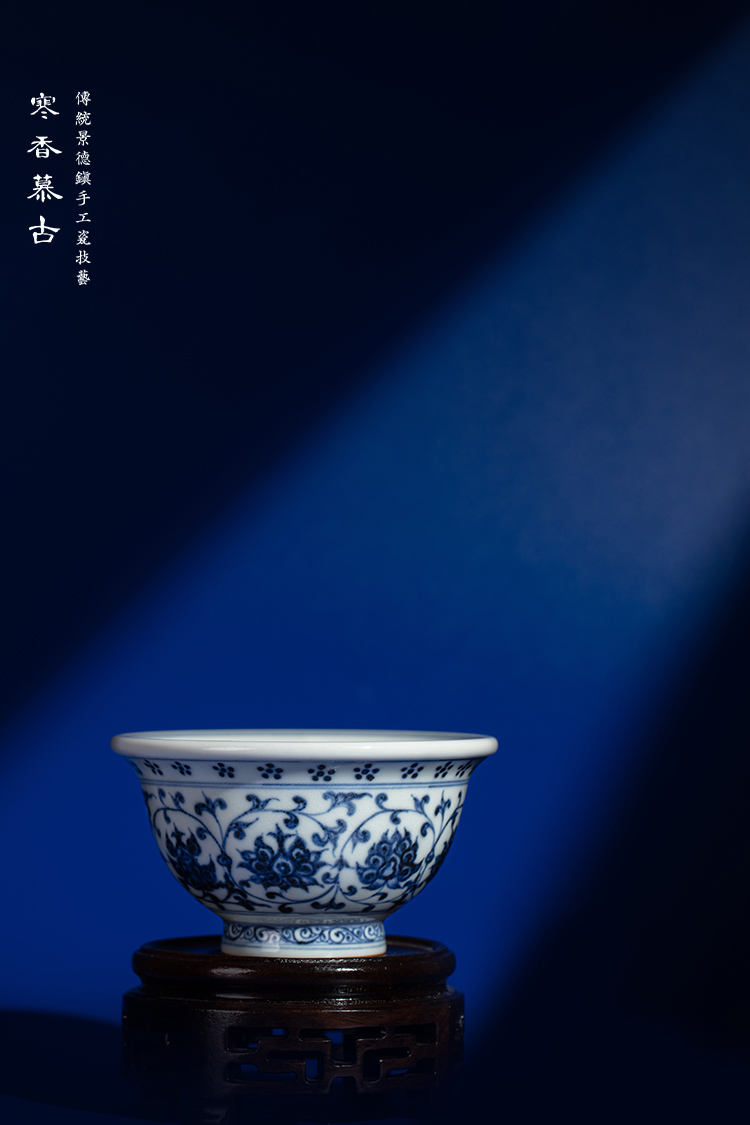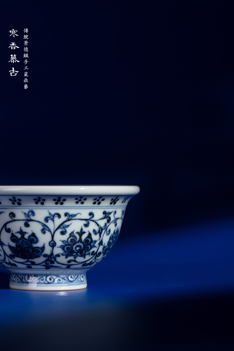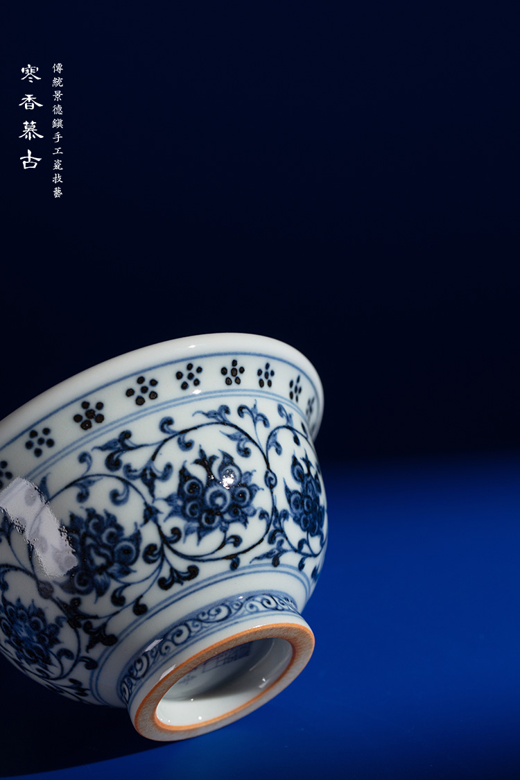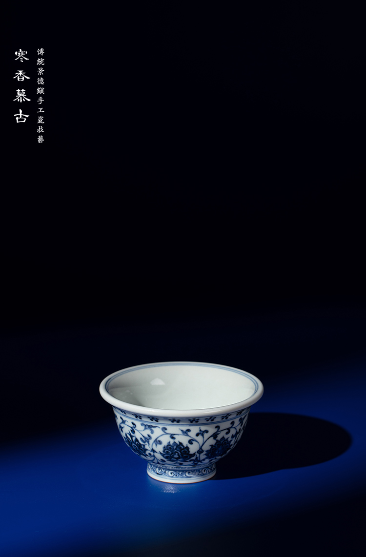 寒香慕古永乐明青花压手杯(花心)对杯