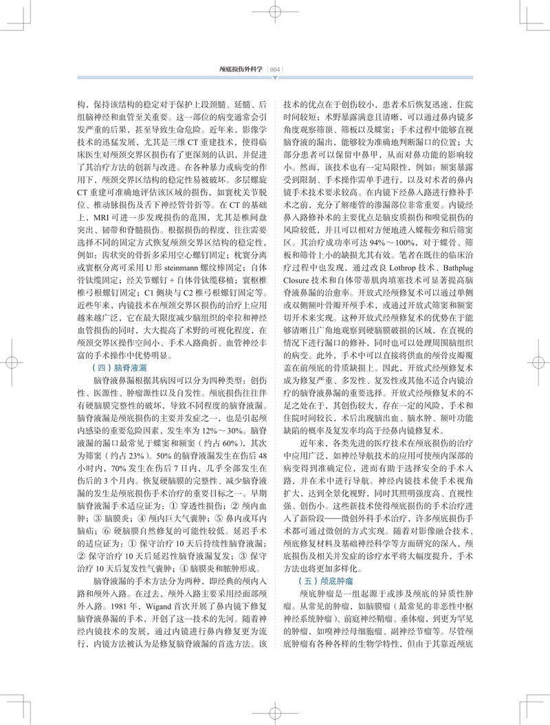 随着颅底损伤外科救治理念和救治技术的不断发展,颅底损伤外科的诊治范围不再局限于创伤性损伤,而是涵盖了更广泛的颅底病变形式,包括颅底肿瘤、医源性损伤等。
