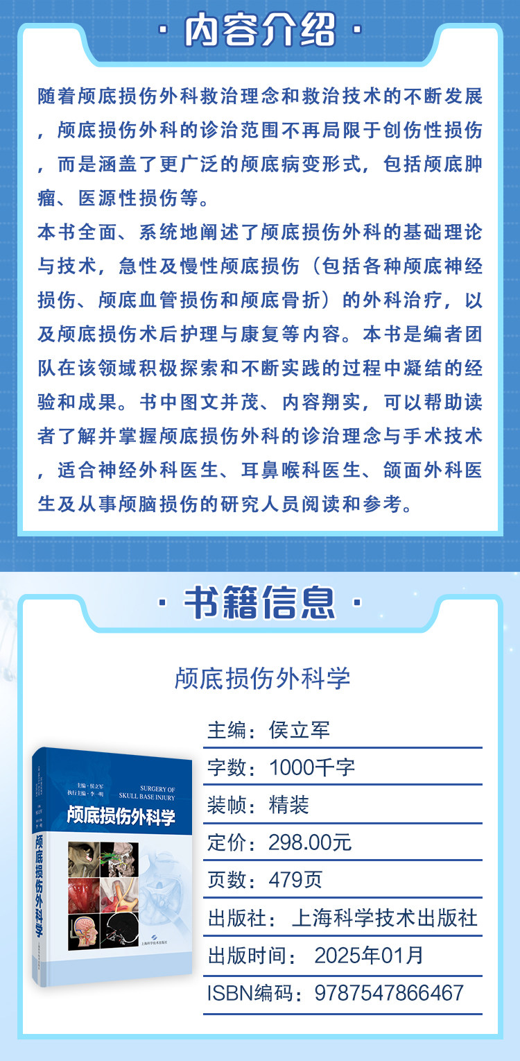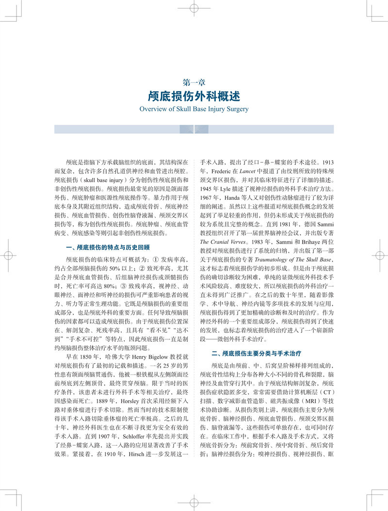 本书全面、系统地阐述了颅底损伤外科的基础理论与技术,急性及慢性颅底损伤(包括各种颅底神经损伤、颅底血管损伤和颅底骨折)的外科治疗,以及颅底损伤术后护理与康复等内容。本书是编者团队在该领域积极探索和不断实践的过程中凝结的经验和成果。书中图文并茂、内容翔实,可以帮助读者了解并掌握颅底损伤外科的诊治理念与手术技术,适合神经外科医生、耳鼻喉科医生、颌面外科医生及从事颅脑损伤的研究人员阅读和参考。