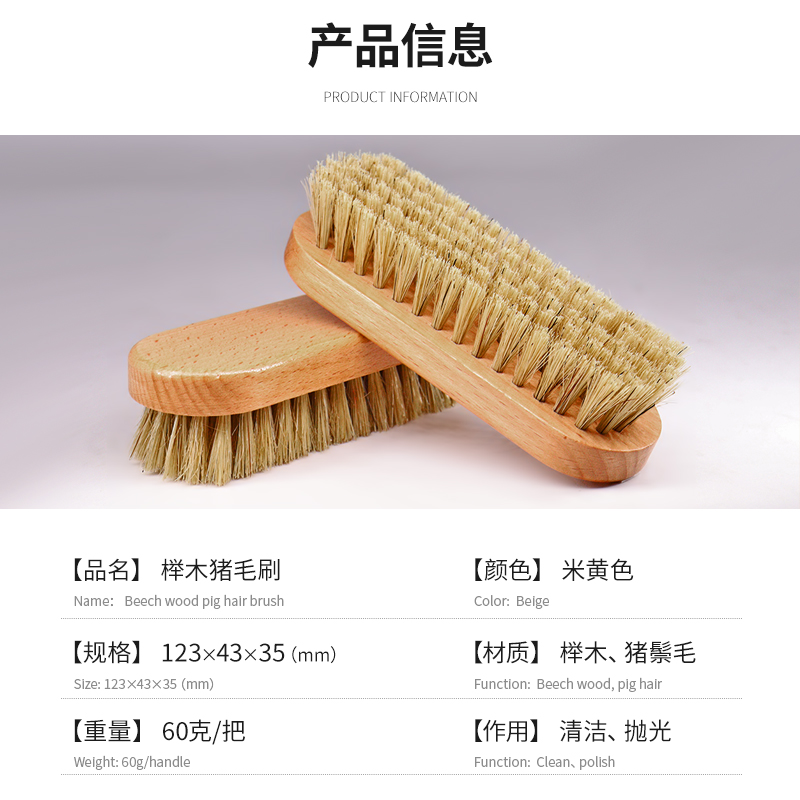 榉木猪毛刷清洁刷鞋刷抛光刷