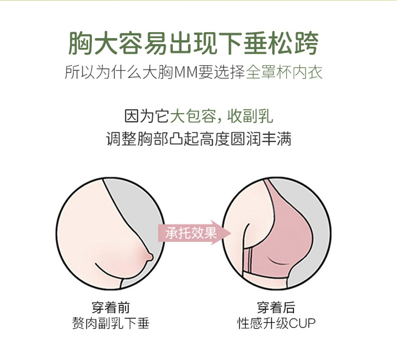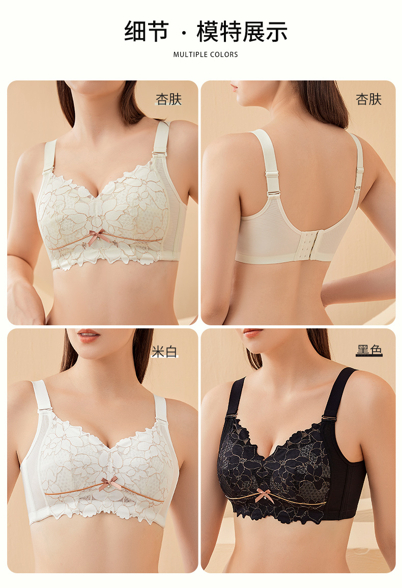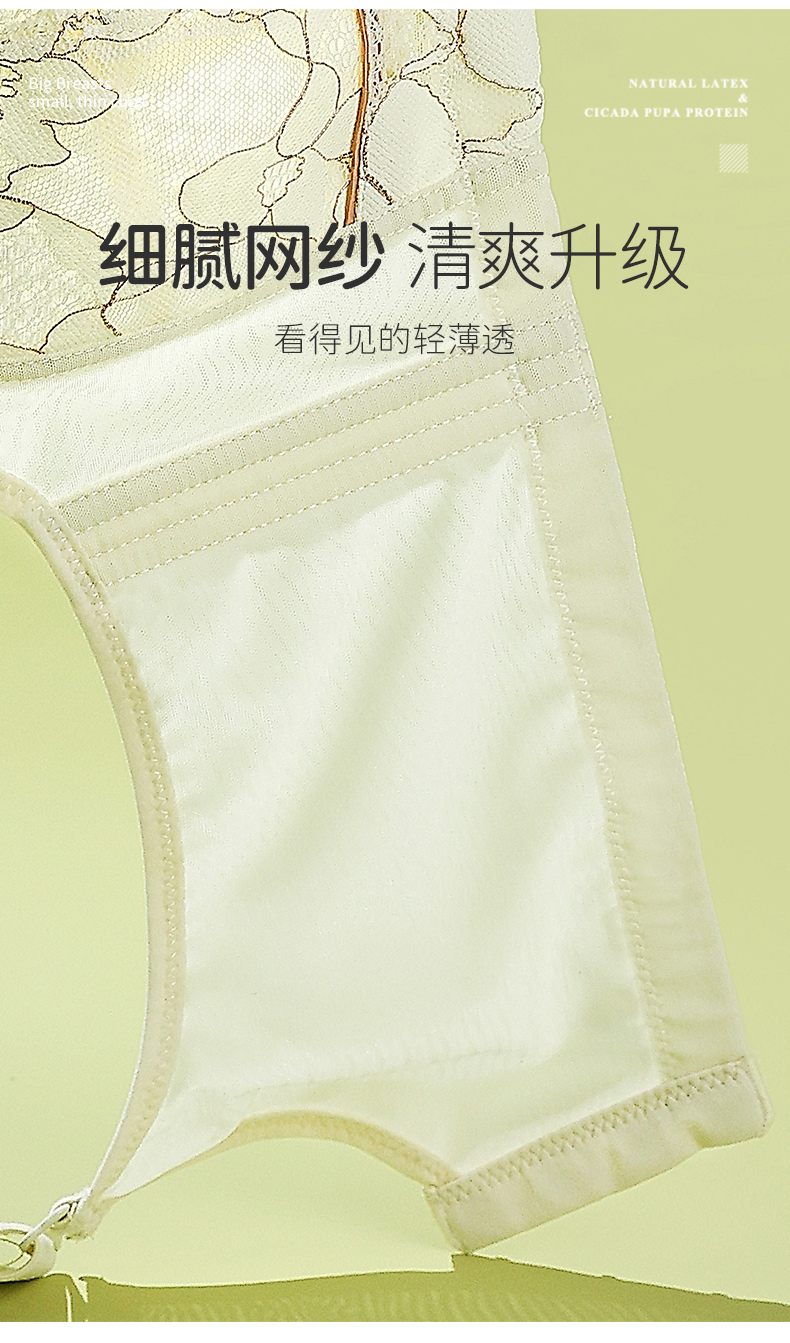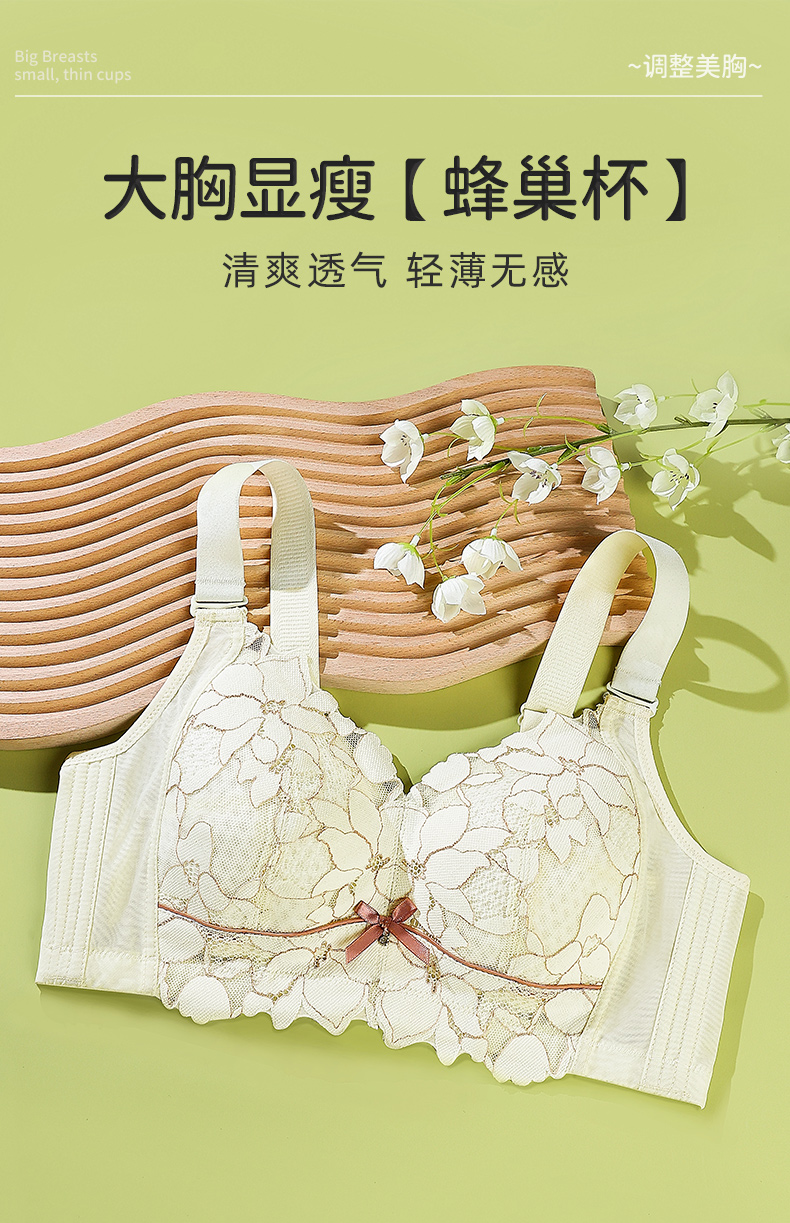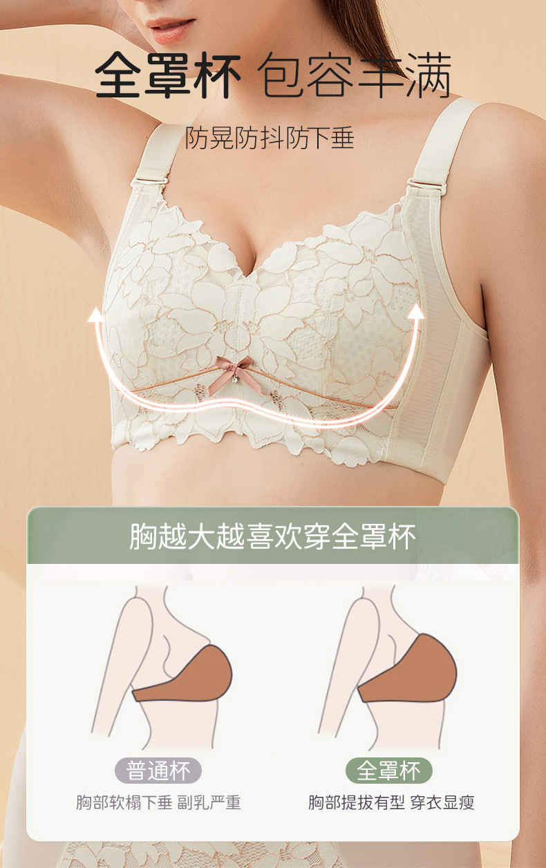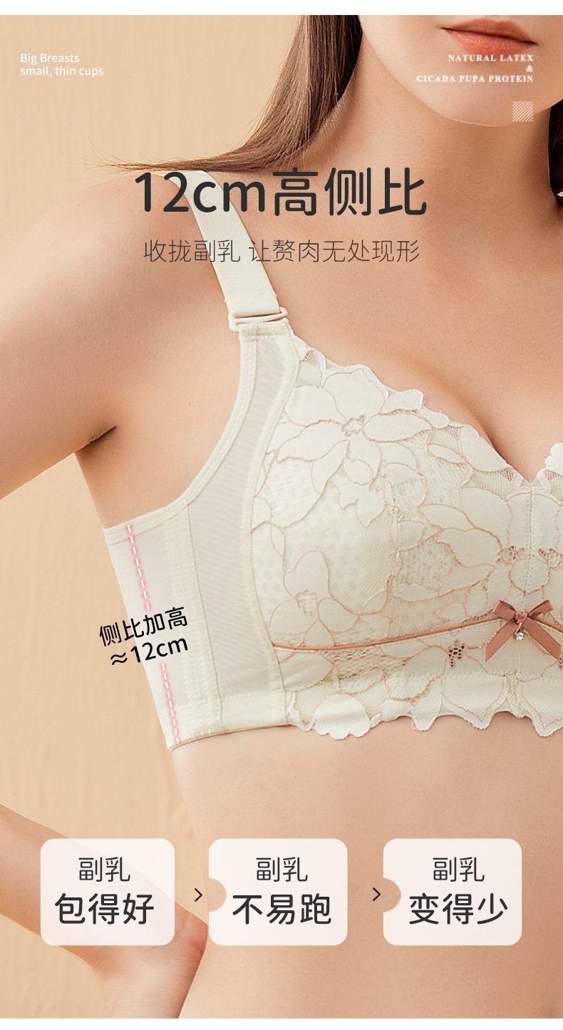 雅黛丽内衣大胸显小收副乳防下垂全罩杯蕾丝文胸无钢圈美背胸罩女
